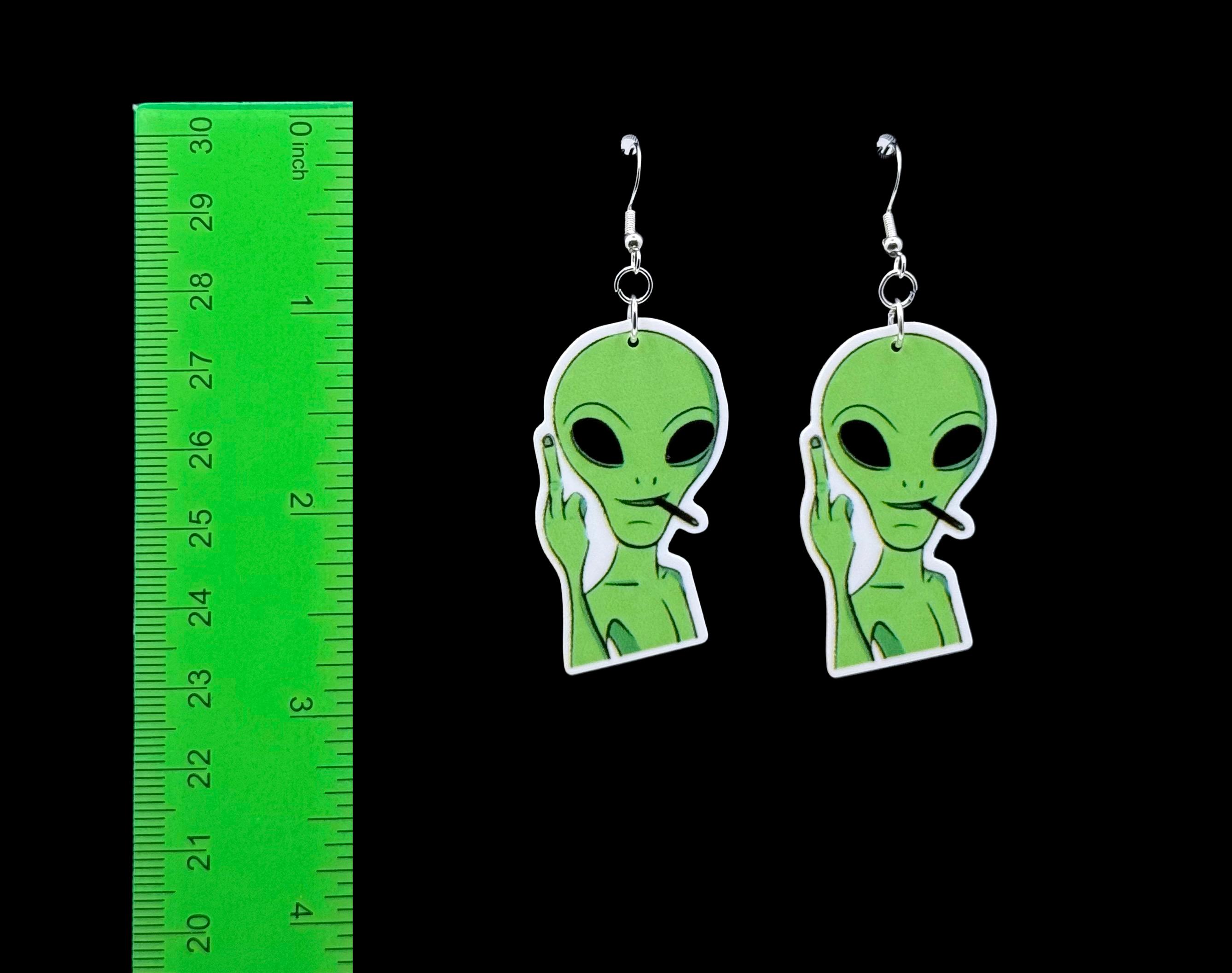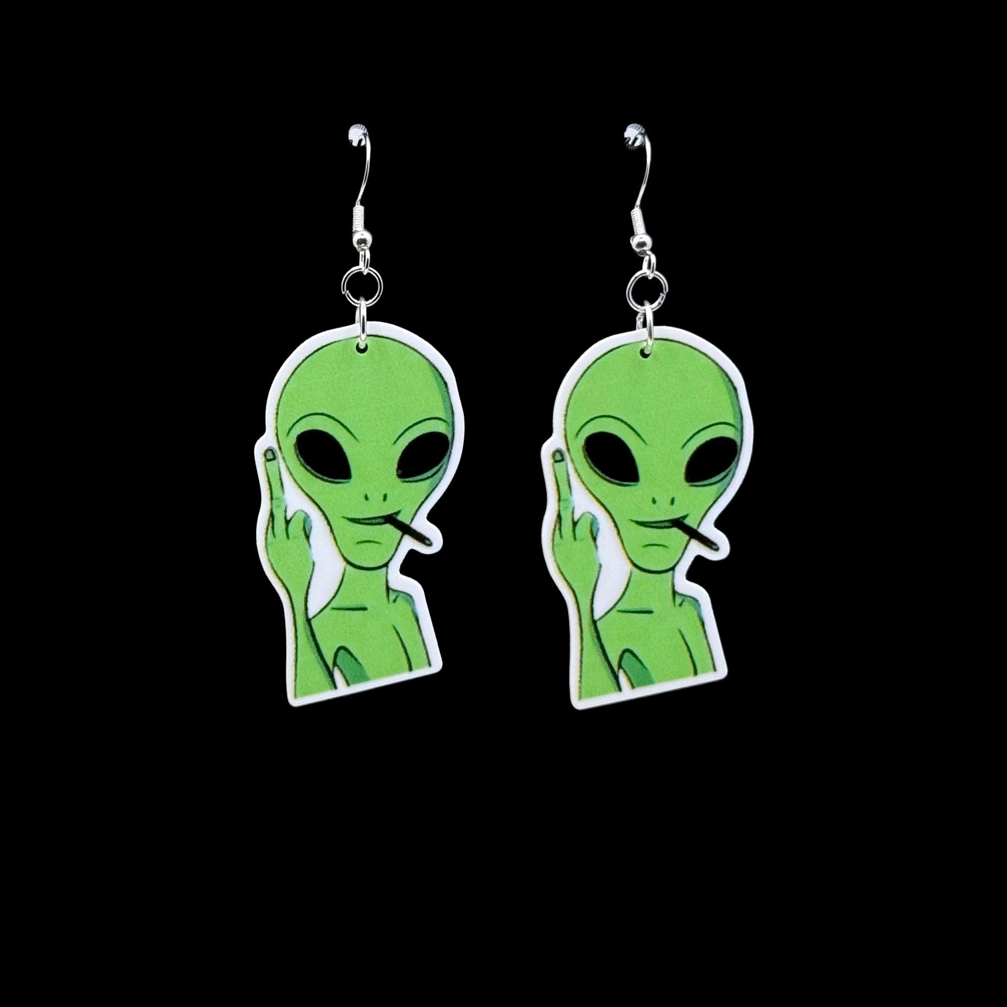 Handmade Stoner Alien Earrings: Grunge Space Jewelry