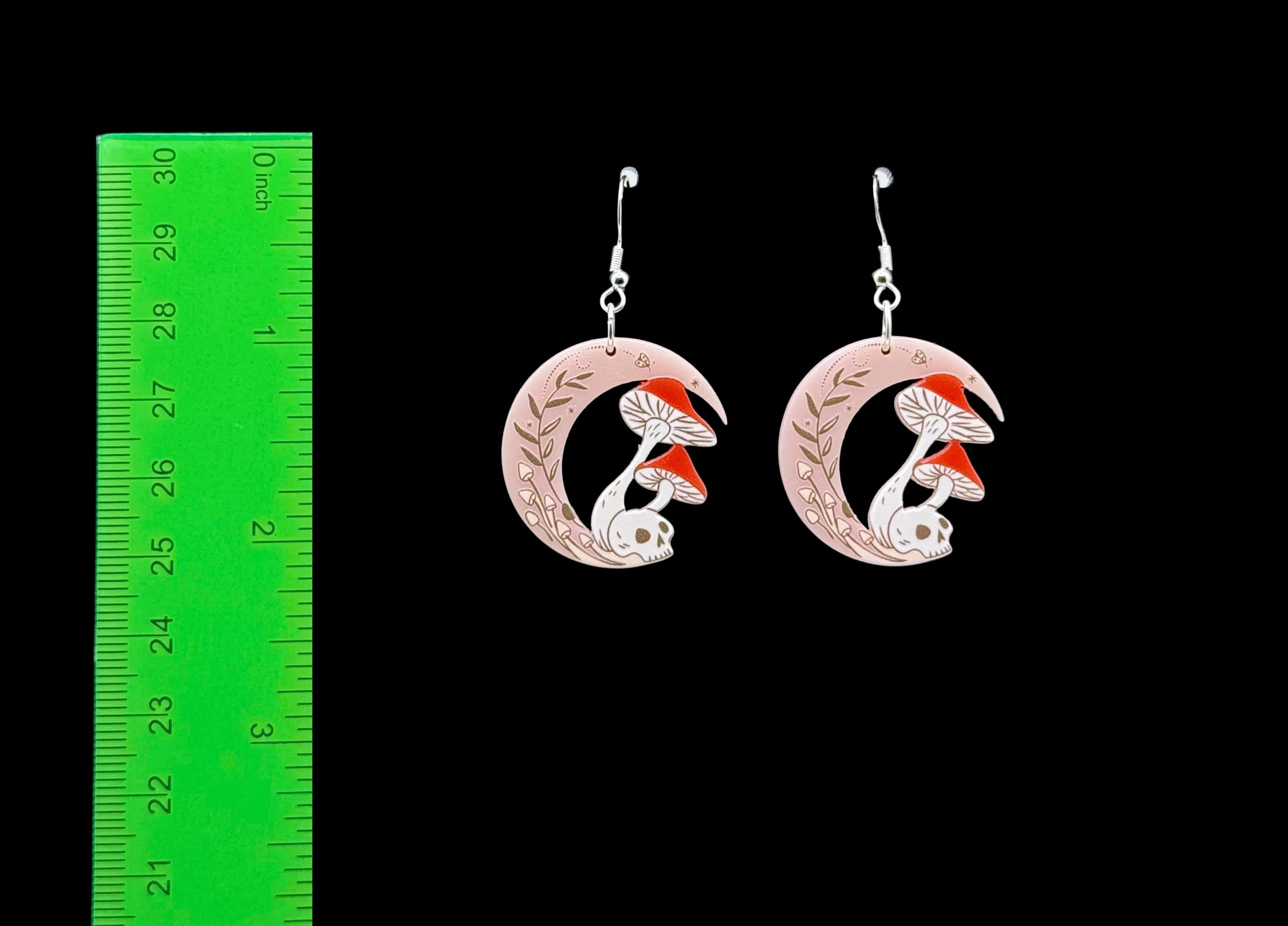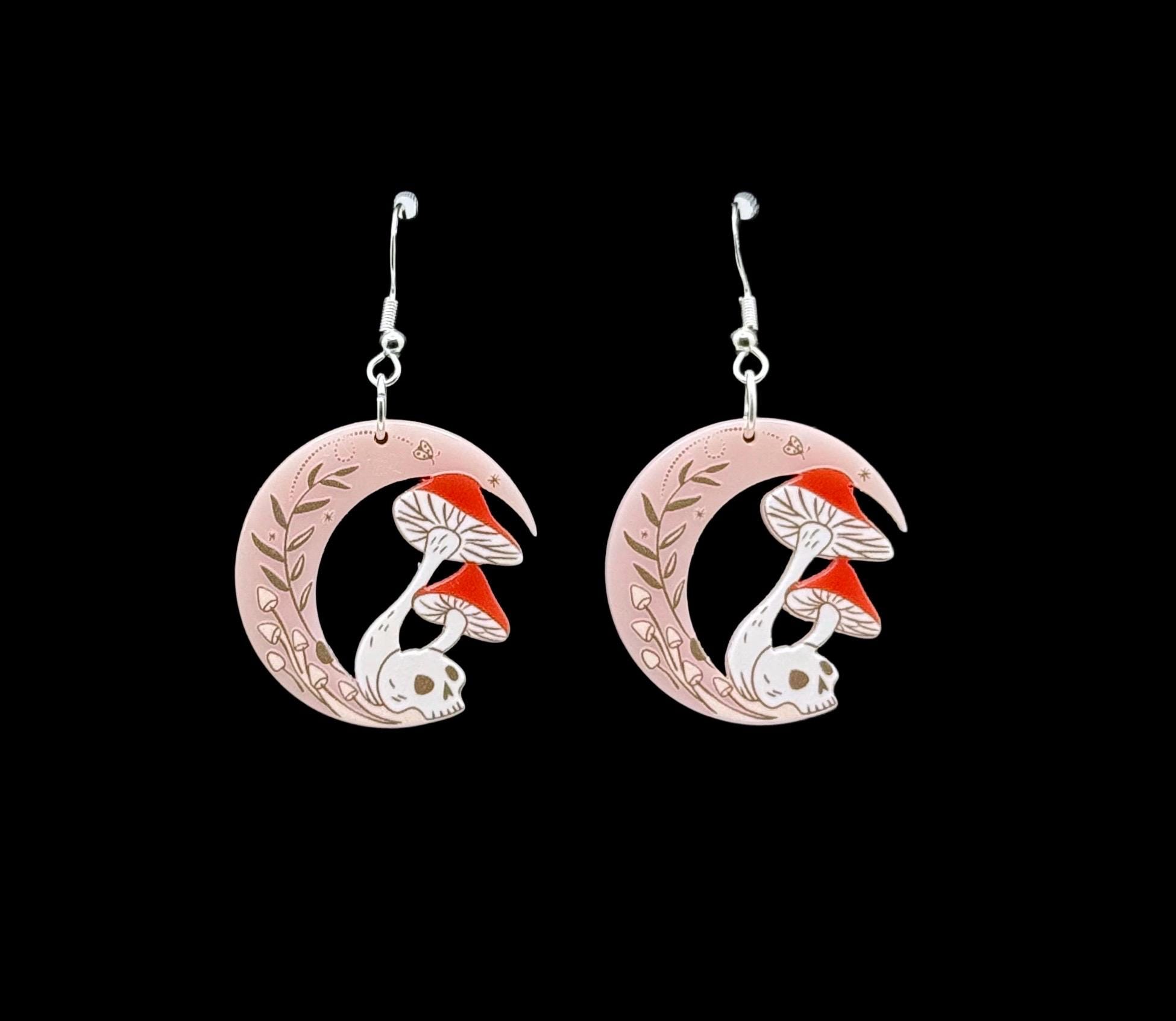 Pink Moon Mushroom Earrings, Cottagecore Trippy Jewelry