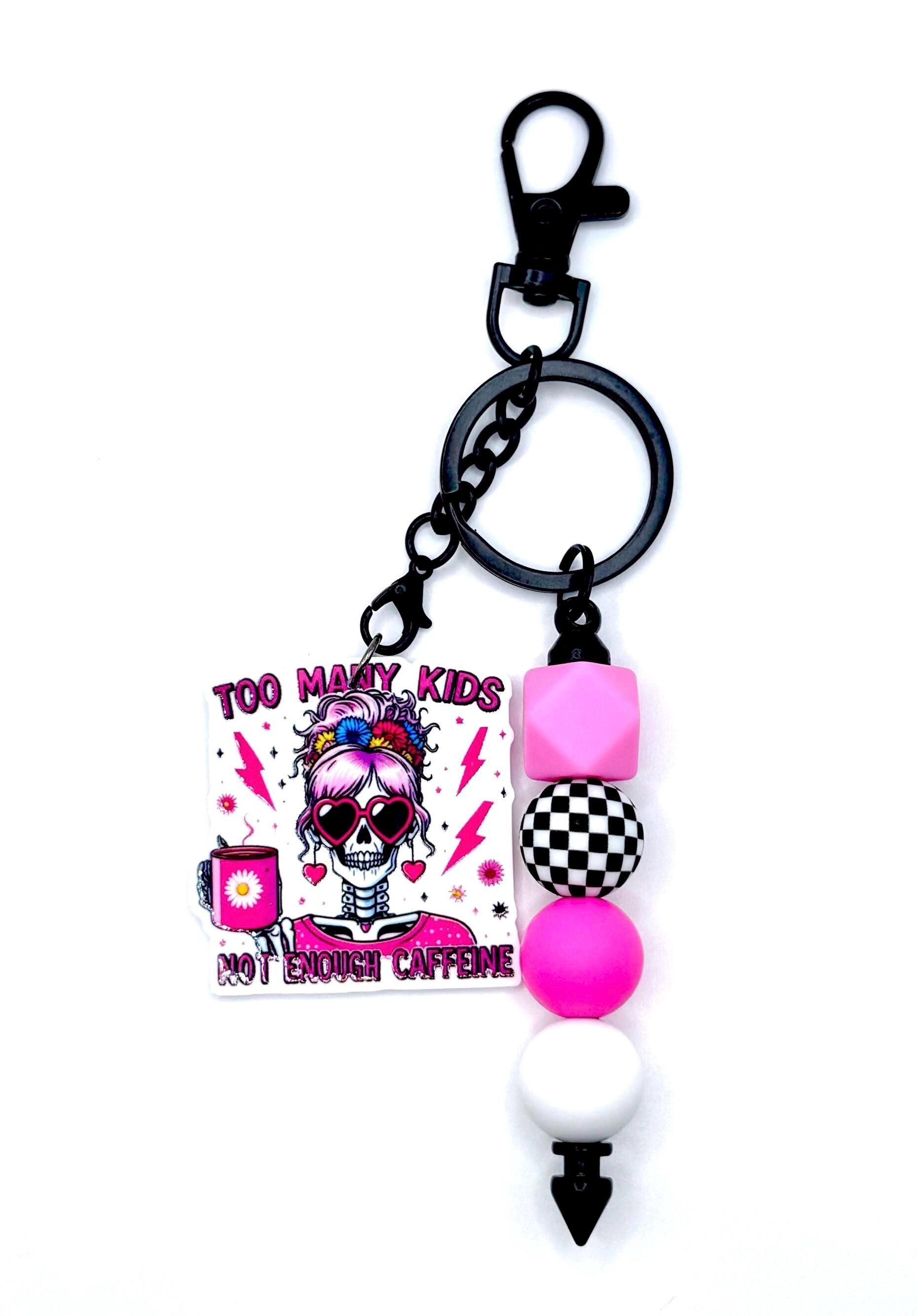 Beaded Keychain: "Too Many Kids" Bag Charm, Mom Gift