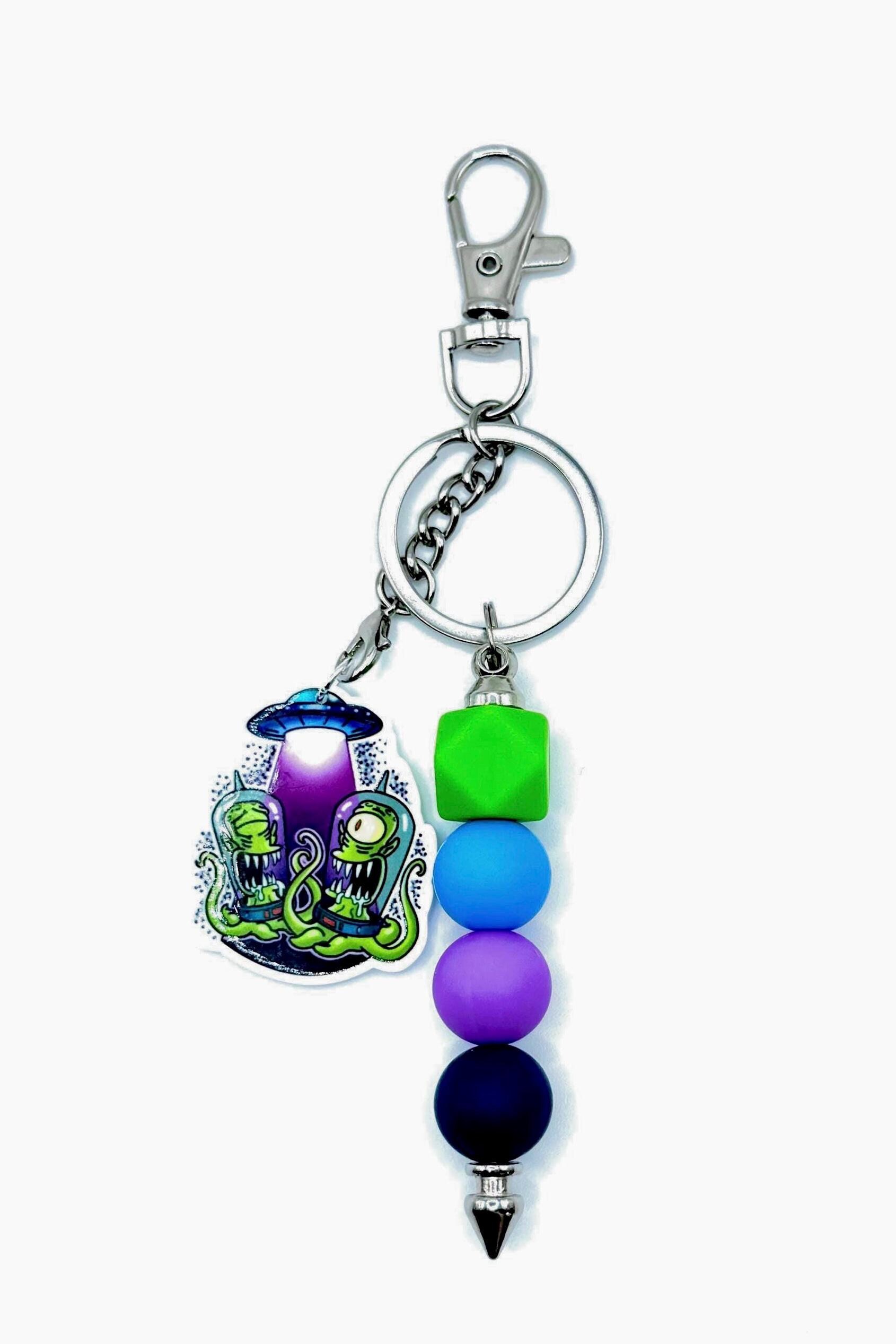 Cartoon Alien Beaded Keychain: Handmade Silicone Bag Charm