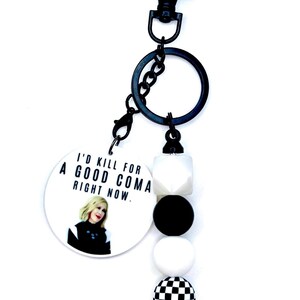 Exactly as the picture shows the keychain is adorable. Wish I would have had a warning on the little bit of confetti that popped out when I opened the package cuz I did have to do a little sweeping but it was not much LOL thank you!