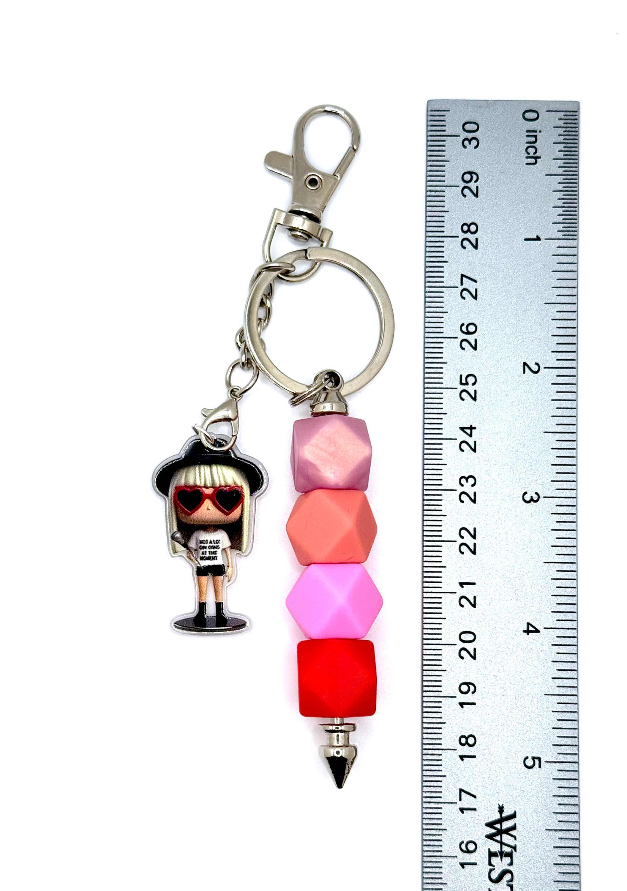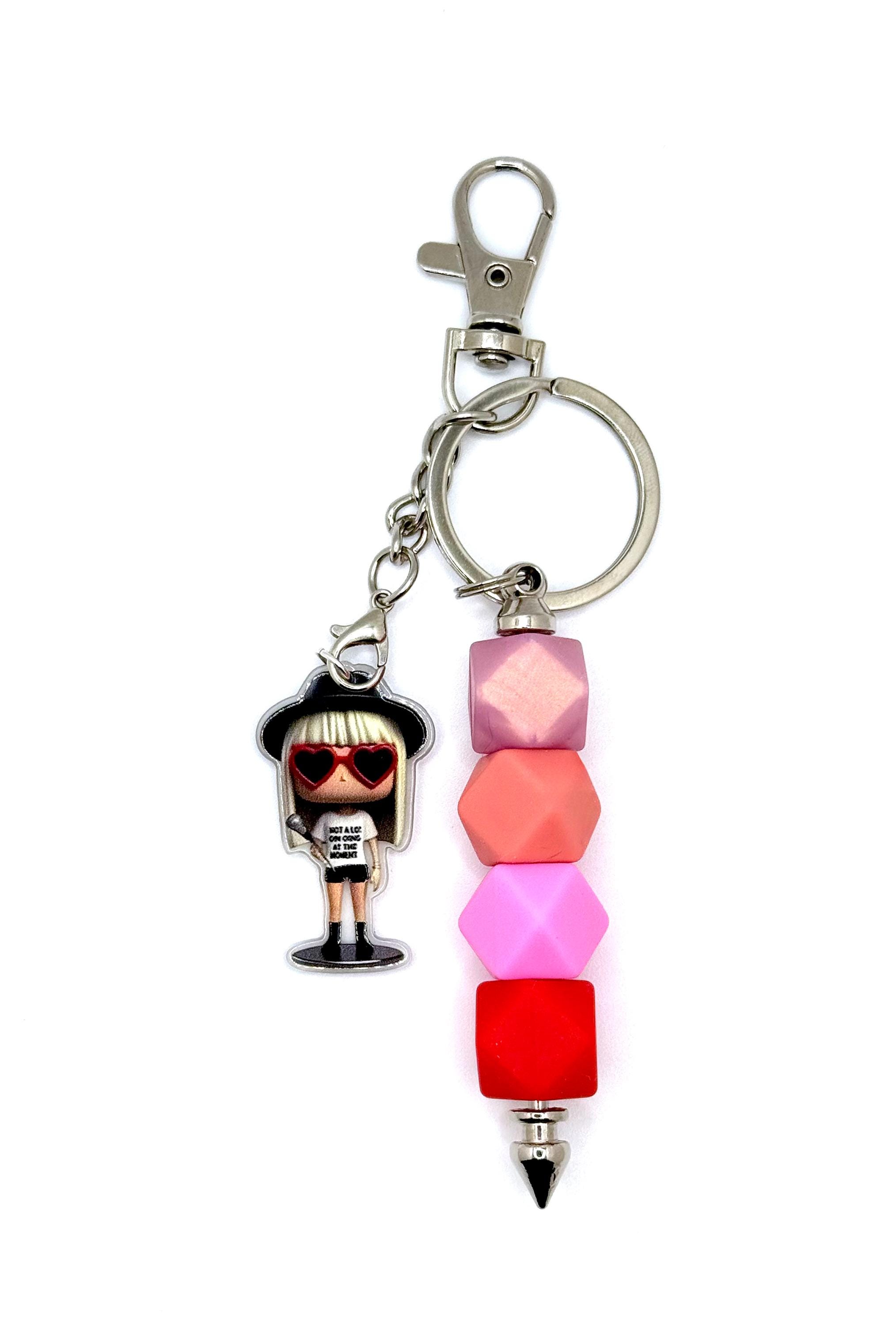 Add a touch of star style to your keys with this charming popstar keychain! π€π Rocking heart-shaped sunglasses and a chic black hat, this keychain is the perfect accessory for any fan who loves a little music and a lot of style. With silicone beads on the spiked post, it's a handmade, fun piece thatβs ready to brighten up your bag or keys!