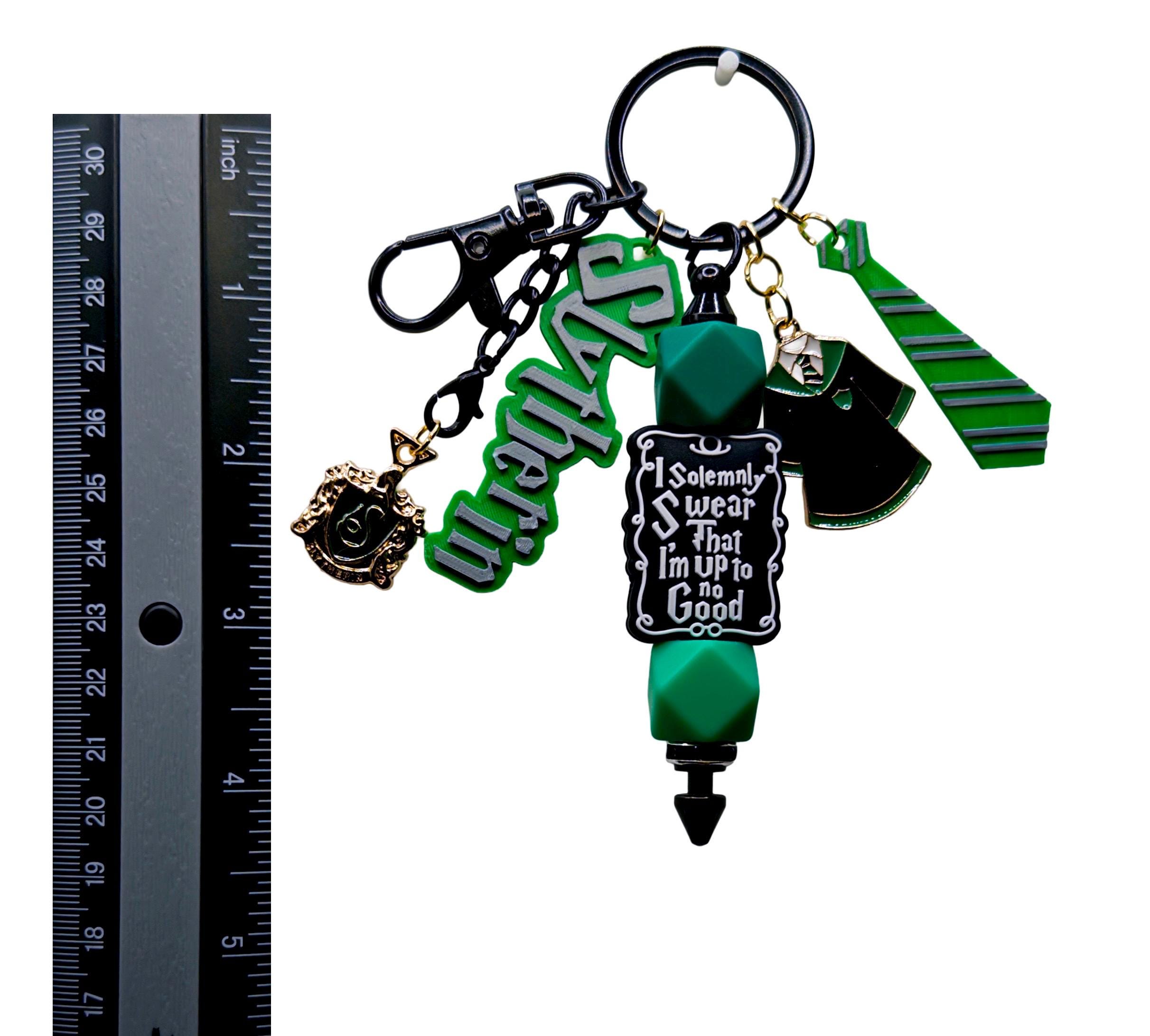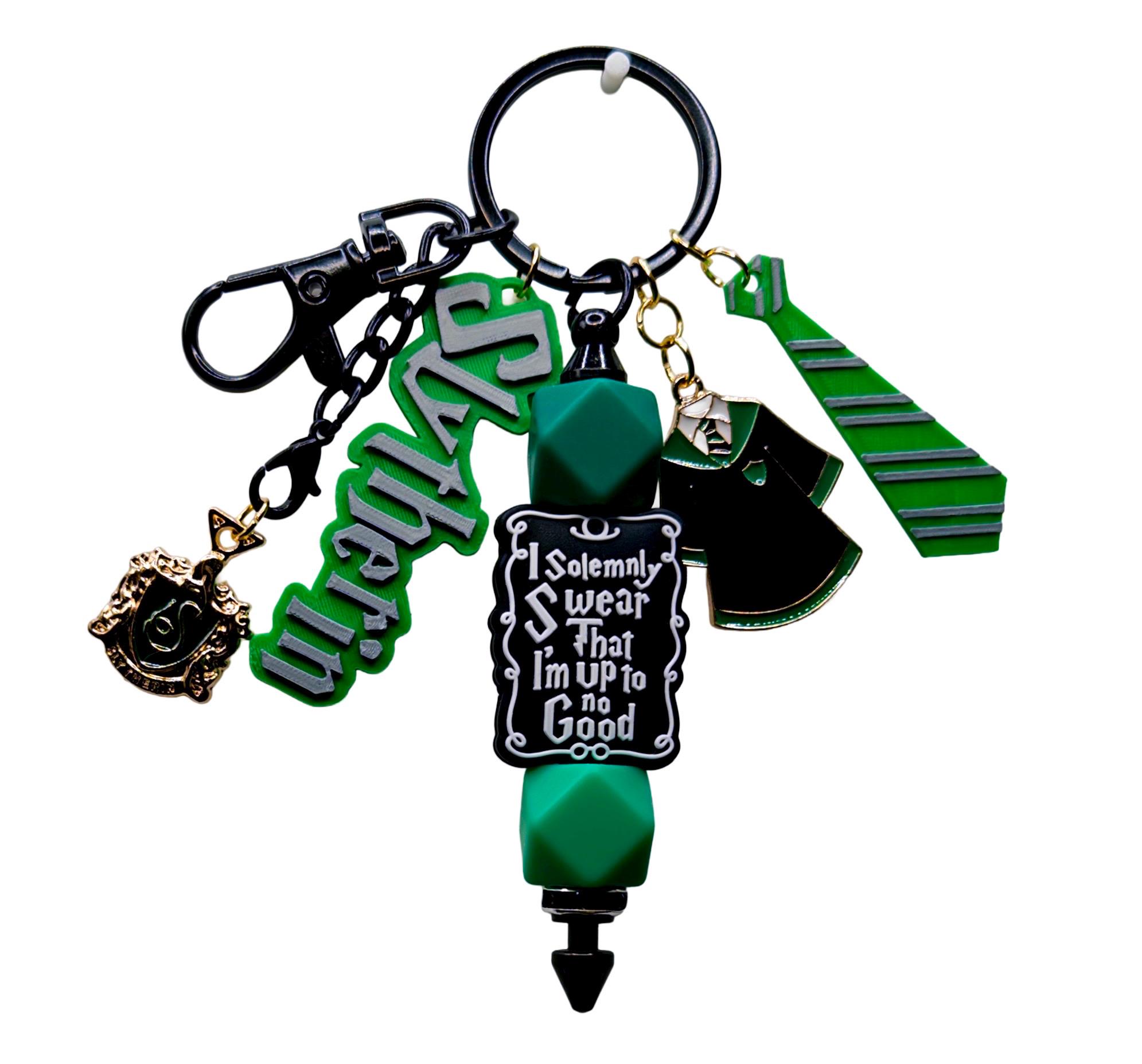 Details: - Mixed media keychain - Silicone beads - Metal cloak charm - Metal crest charm - 3D parts printed in cunning green and ruthless silky sword silver - Secure keyring with lobster clasp - Lightweight with a solid feel - Handmade and assembled with care