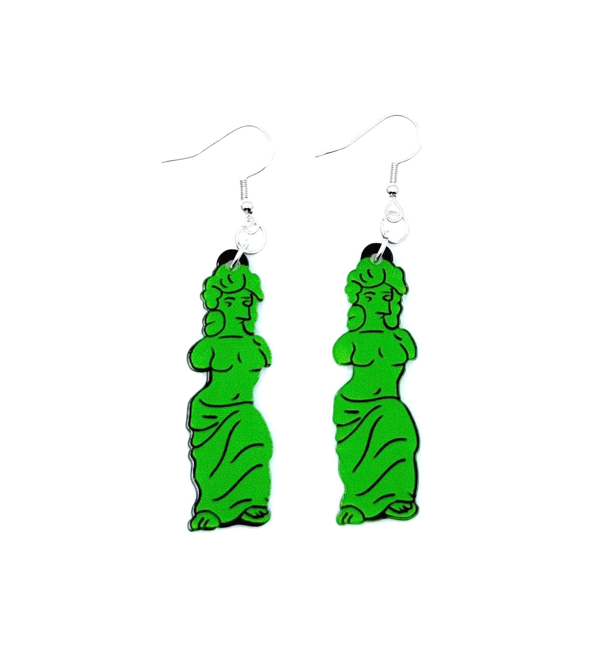 Add some gummy flair to your style with these quirky green Venus de Milo-inspired earrings, straight from the iconic episode! 💚🎨 With a playful twist on the famous statue, these earrings bring a touch of pop culture to your everyday look. Whether you're a fan or just love bold, unique accessories, these earrings are the perfect way to make a statement!