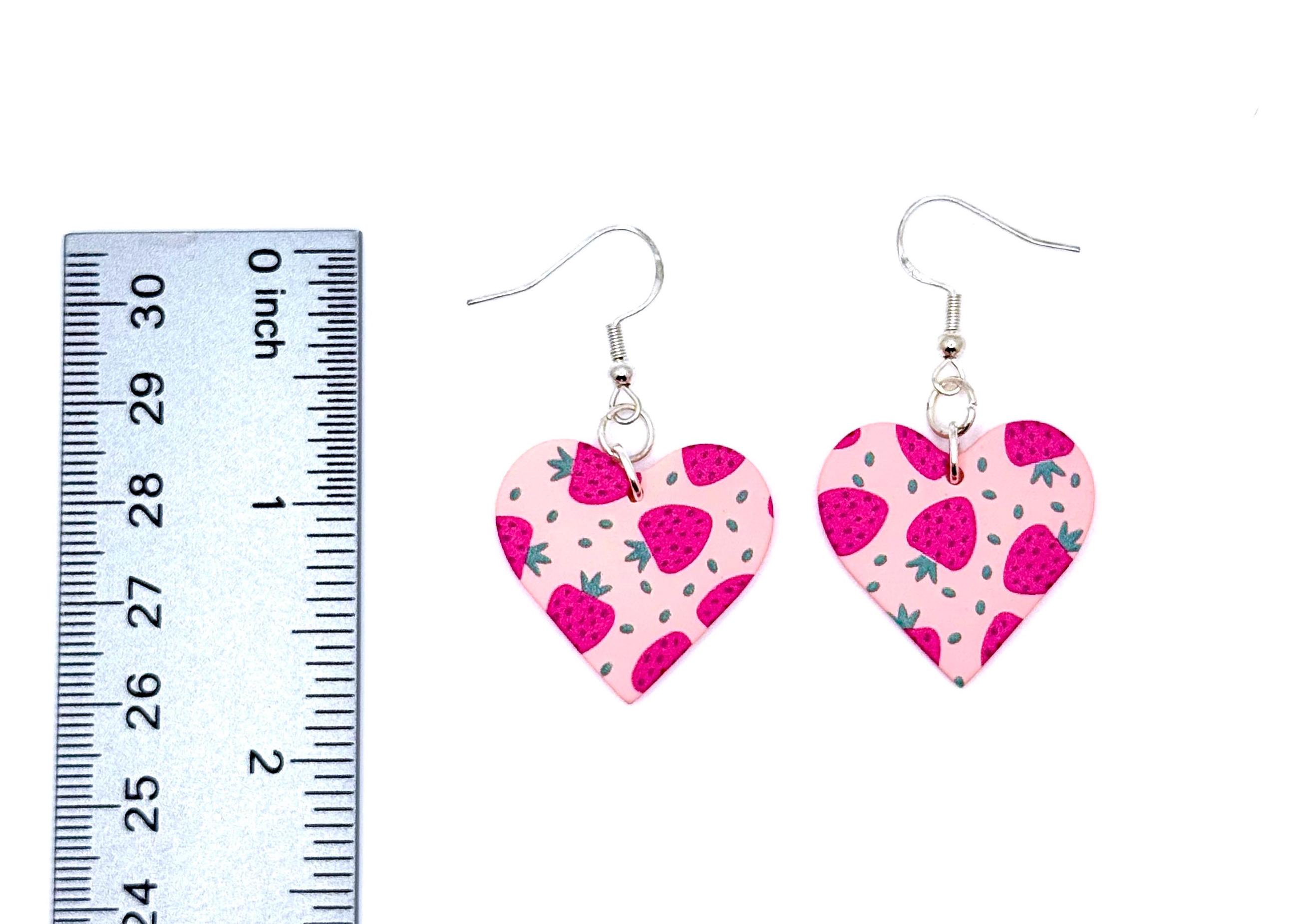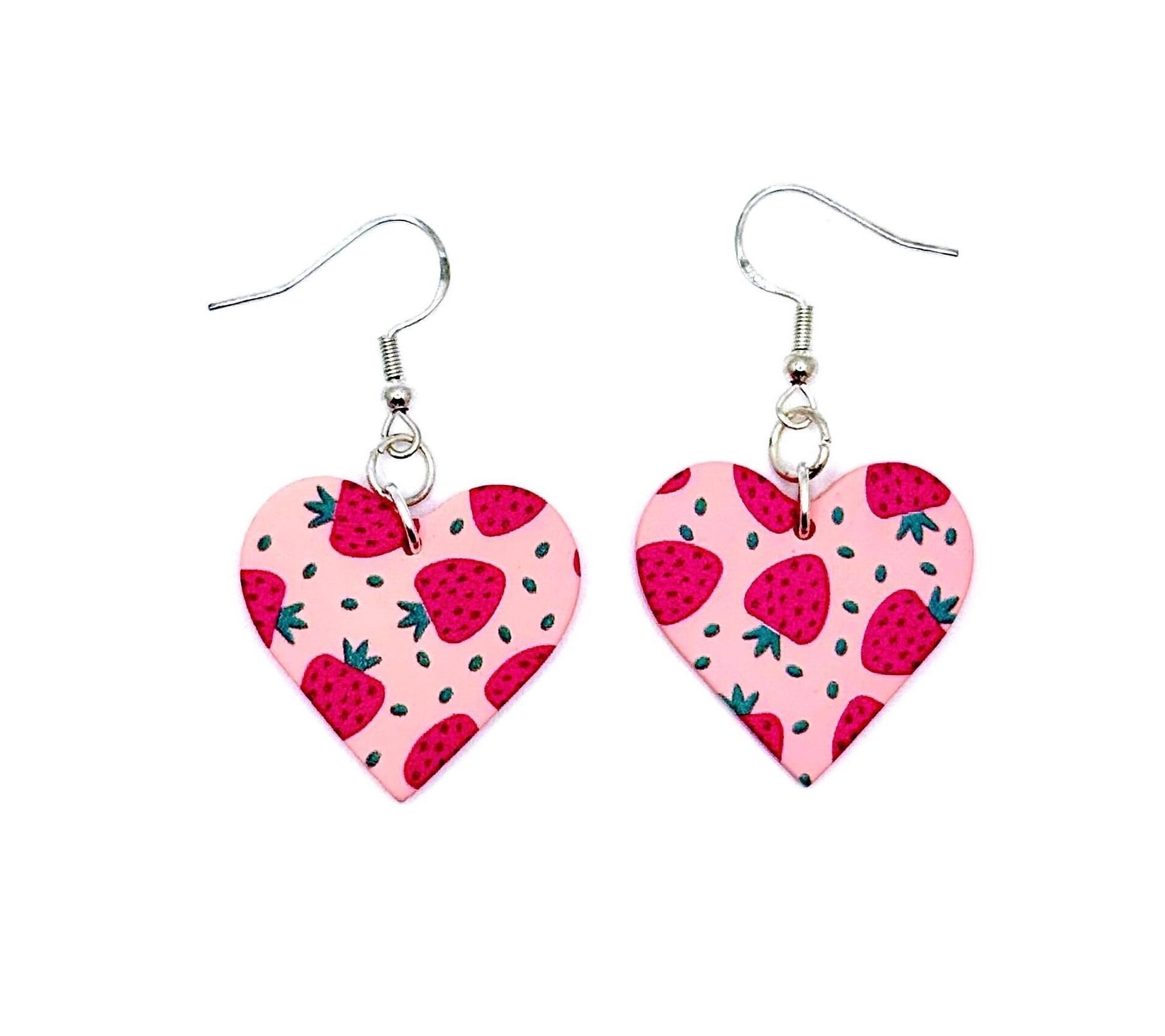 Sweeten up your style with these adorable strawberry heart earrings! 🍓💖 With a cute pink heart design covered in juicy strawberries, these handmade earrings add a pop of color and playful charm to any outfit. Perfect for those who love all things fruity and fun, these earrings are sure to bring a smile wherever you go!
