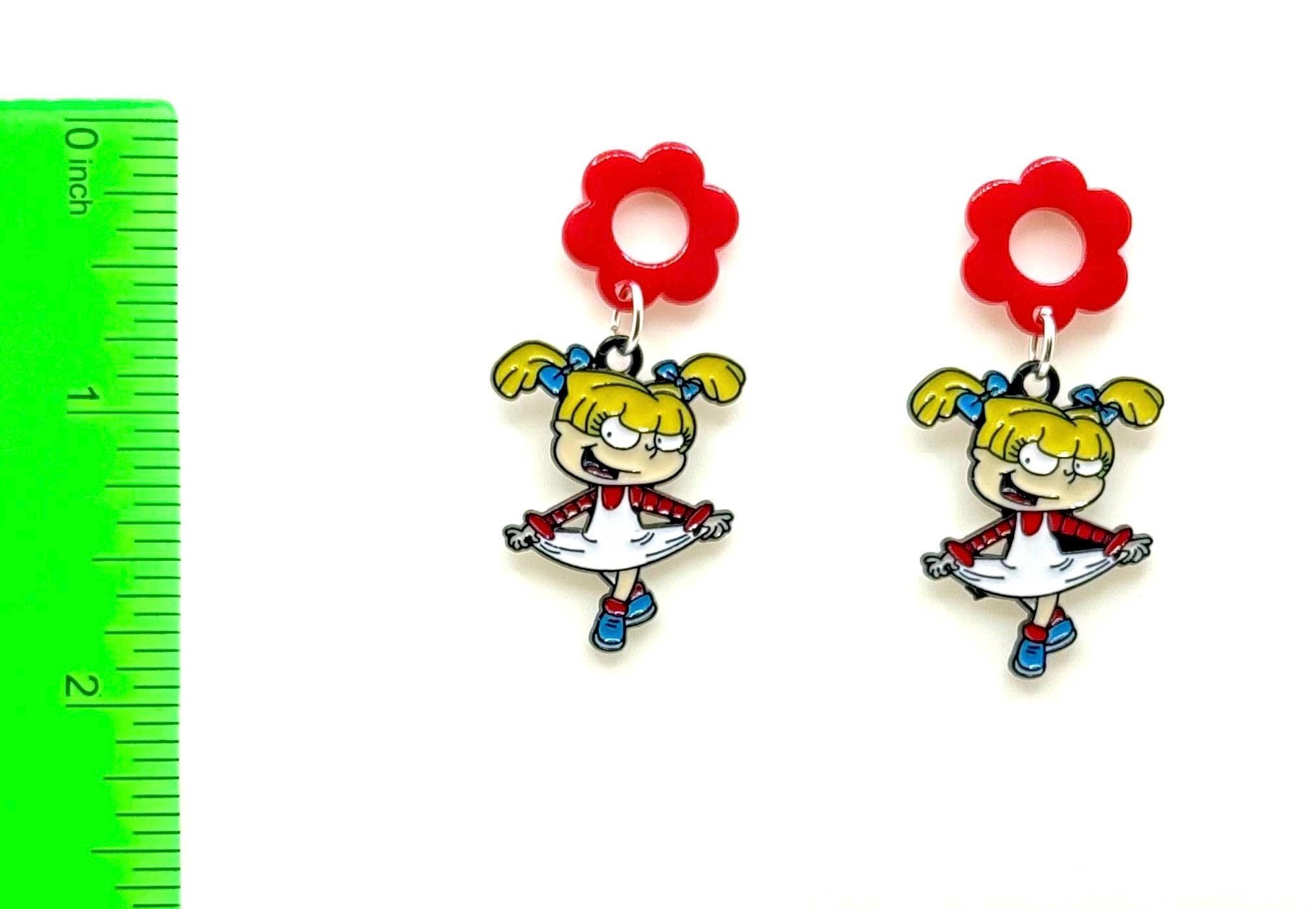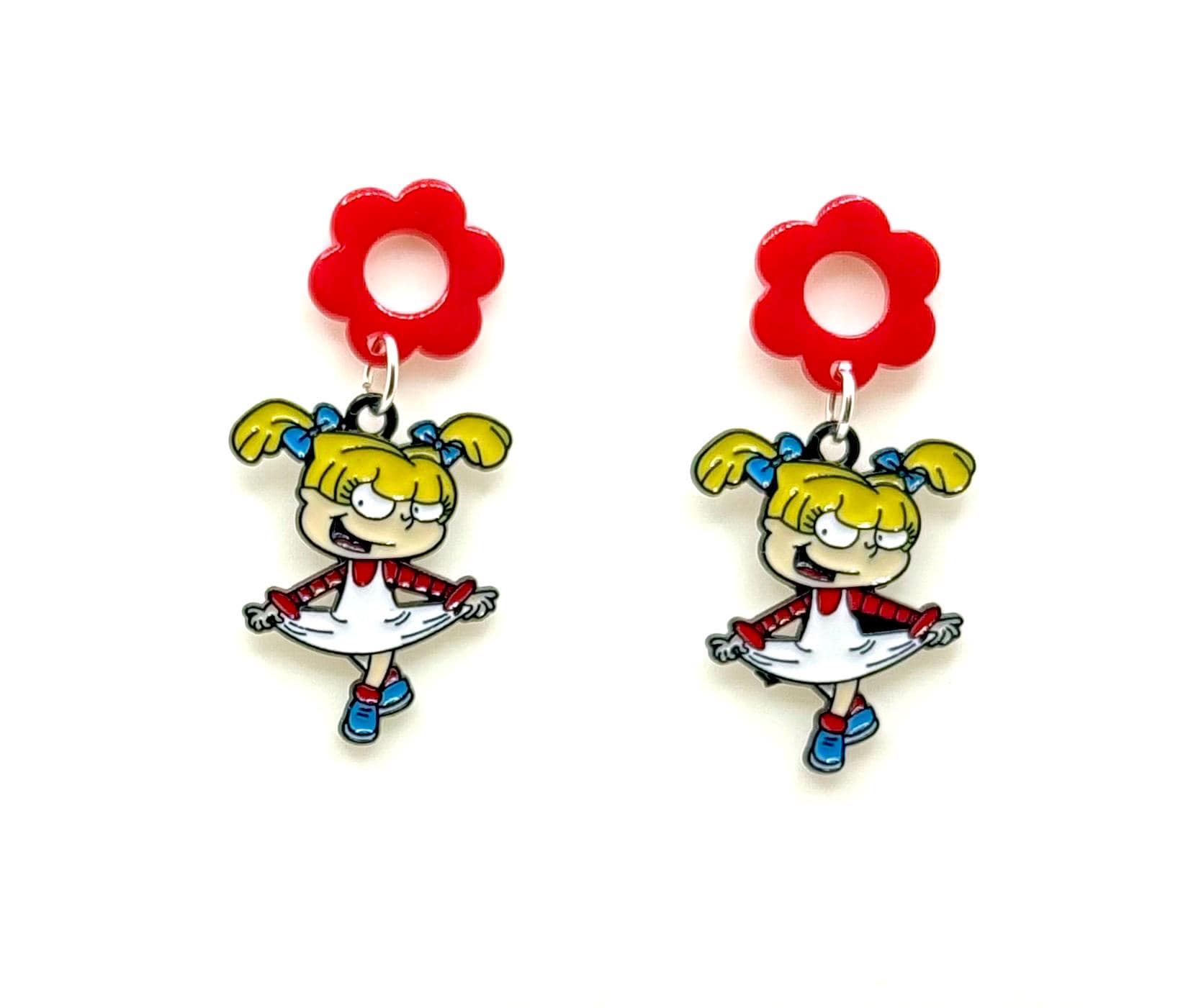 Show off your sassy side with these 90's-inspired earrings! 💅💖 Featuring the iconic, bossy big sister, these earrings are perfect for those who love a little attitude with their style. With a bright red flower accent and her mischievous grin, these handmade earrings add a fun and bold touch to your everyday look!