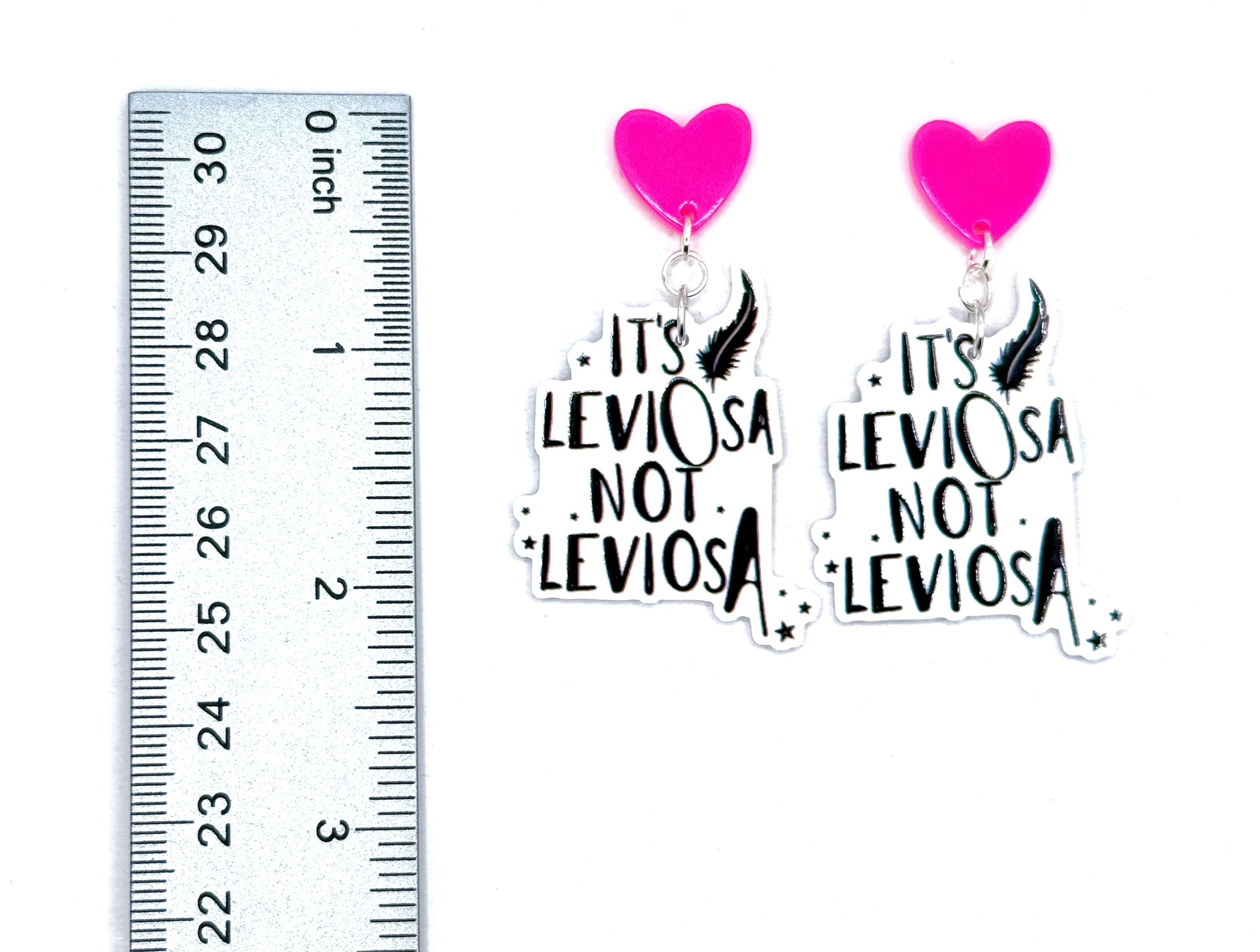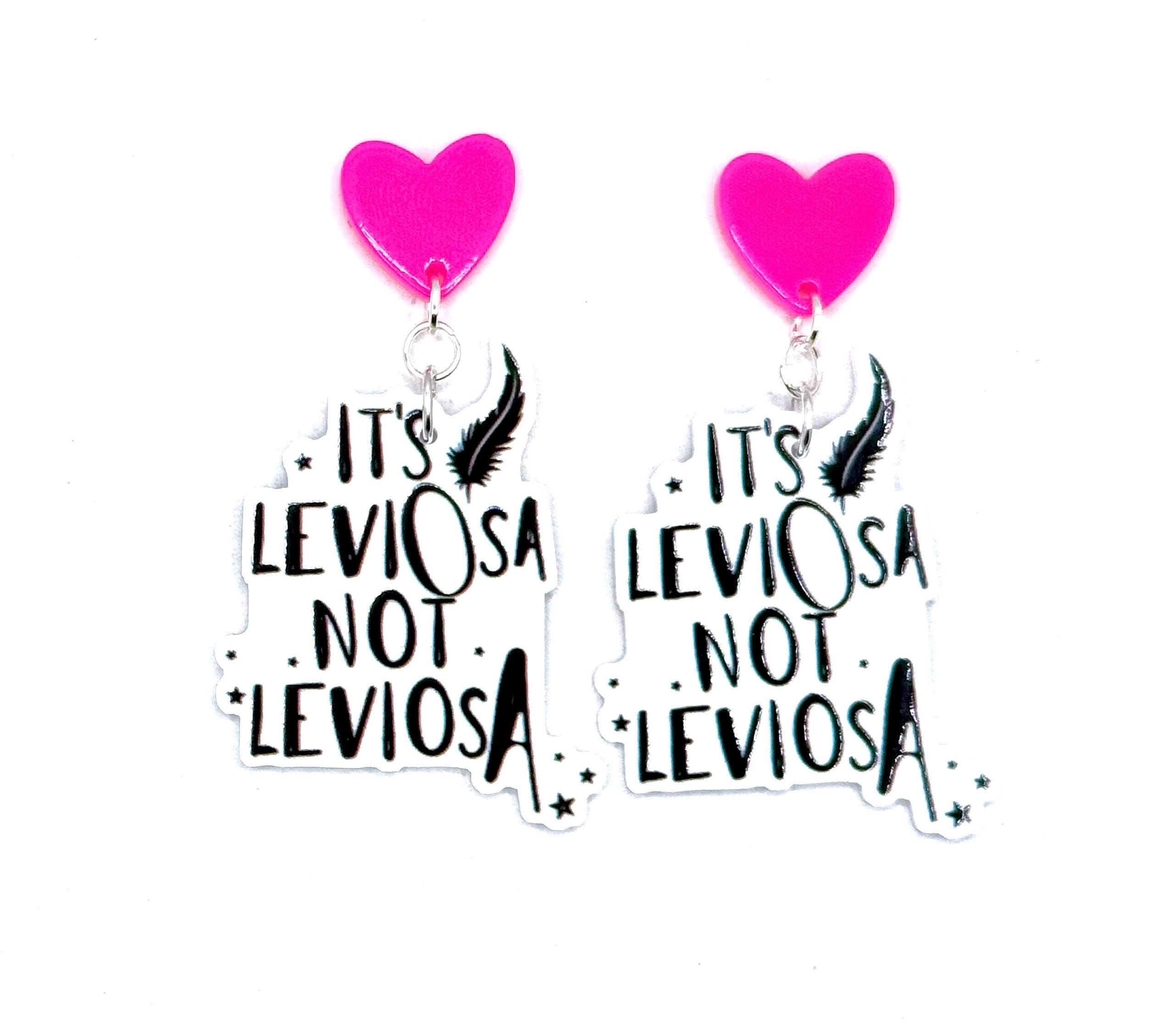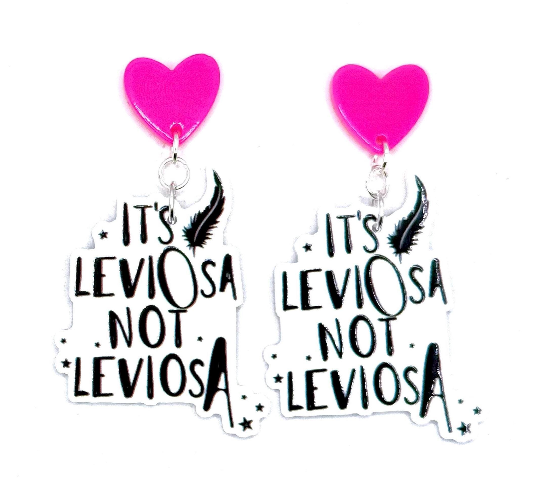 Make a bold (and magical) statement with these quote earrings that any spell-caster or witchy soul will appreciate. Featuring a well known cheeky phrase and adorned with tiny feather and star details, these earrings are perfect for your next theme park trip, convention, or just a mystical day out. You get to choose your favorite top: classic hook, hot pink heart studs, or gold glitter heart studs!