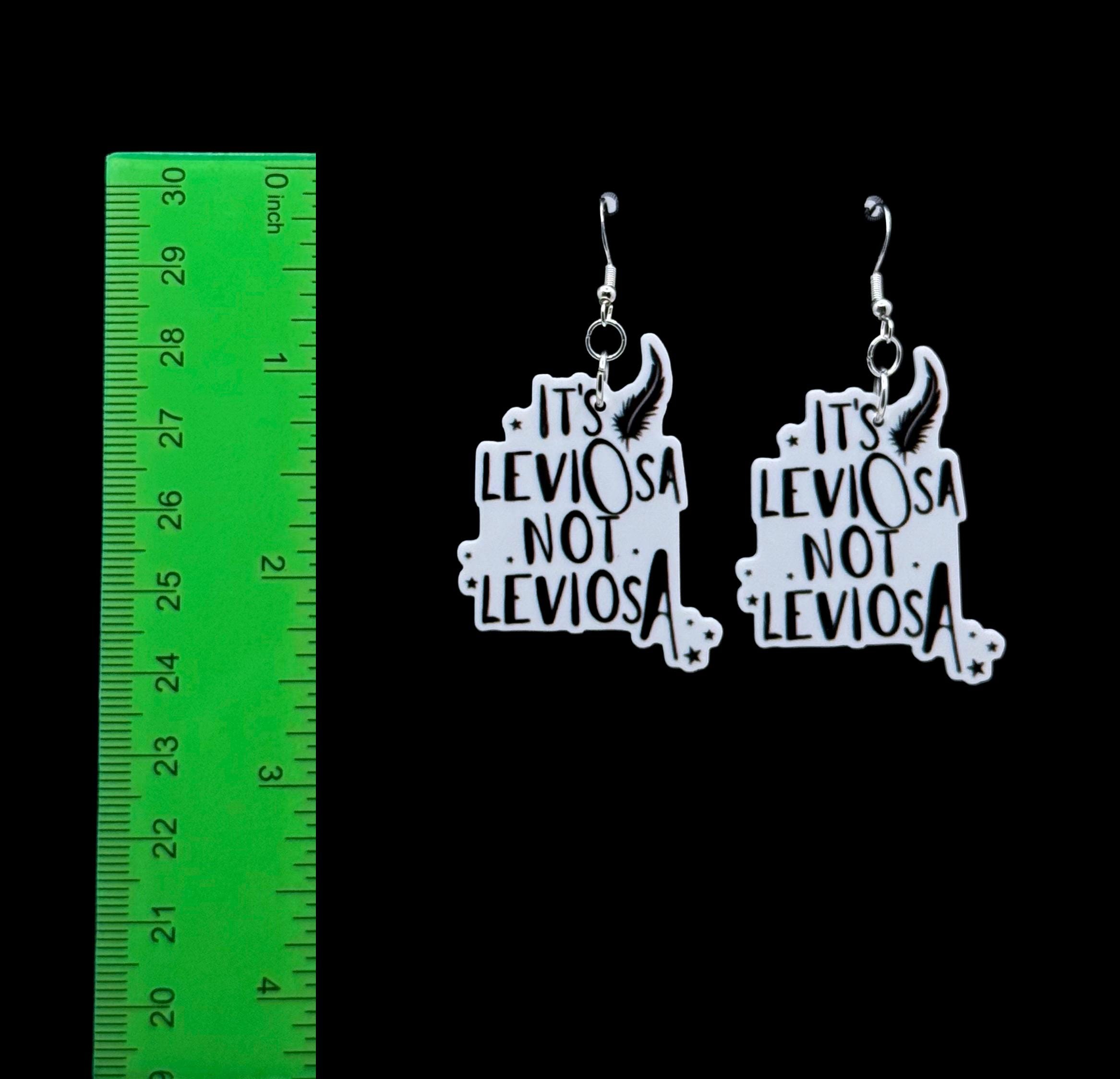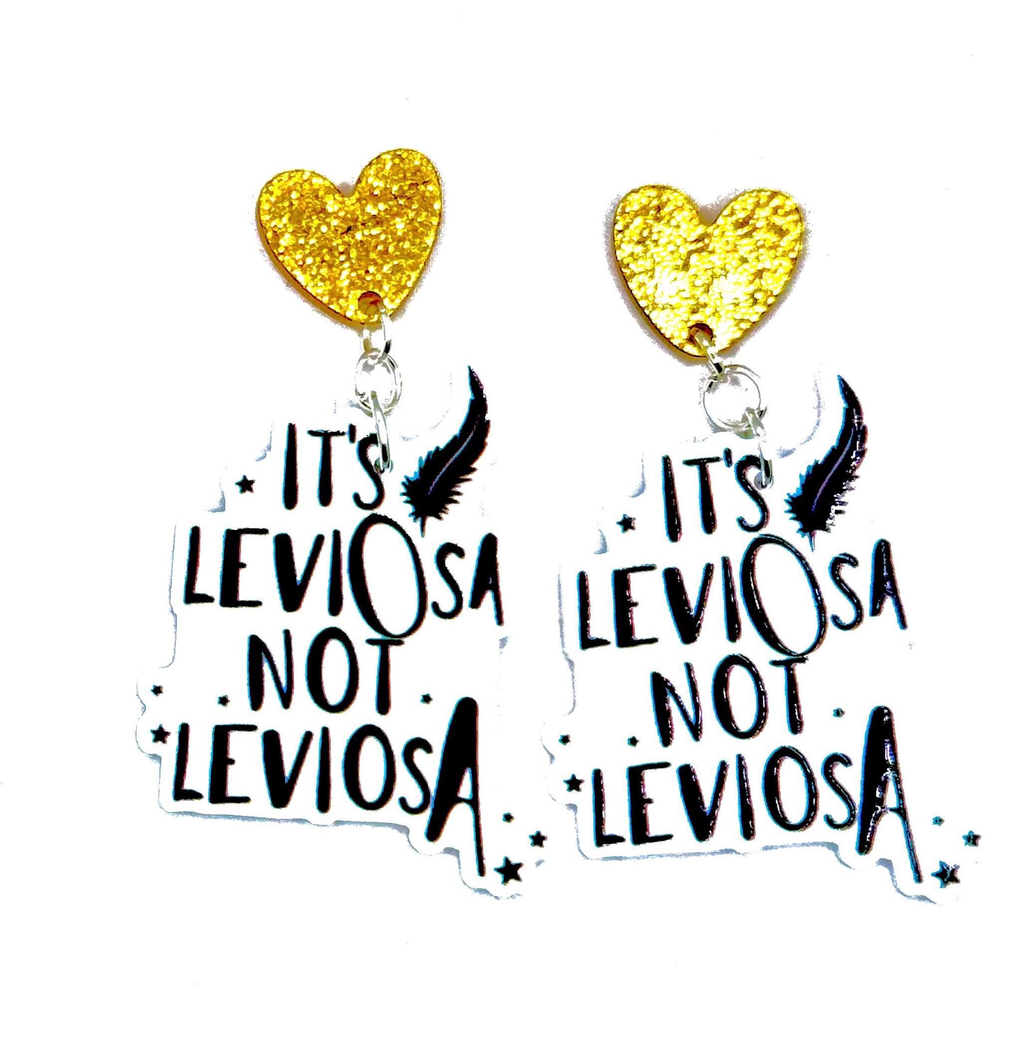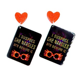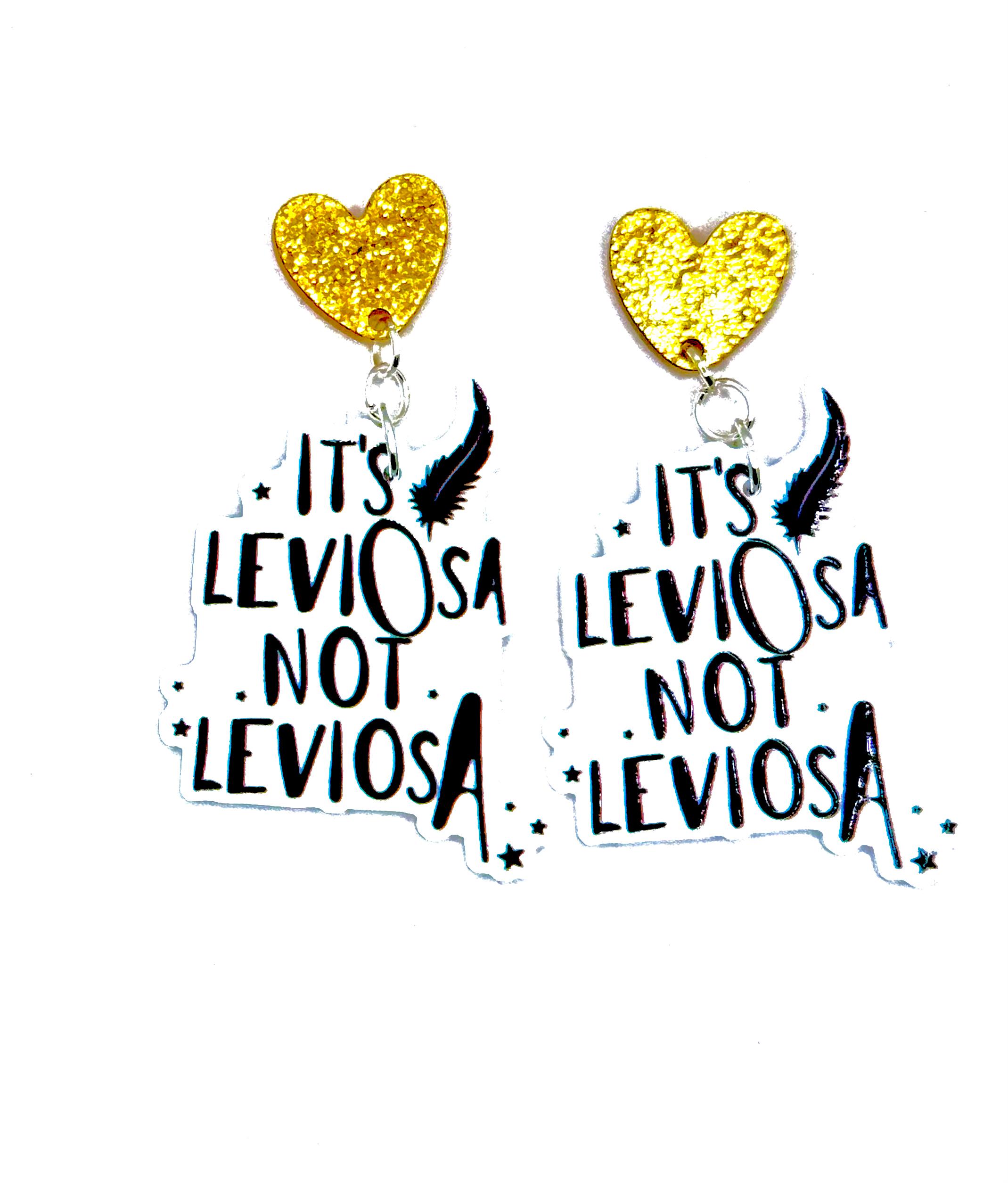 Make a bold (and magical) statement with these quote earrings that any spell-caster or witchy soul will appreciate. Featuring a well known cheeky phrase and adorned with tiny feather and star details, these earrings are perfect for your next theme park trip, convention, or just a mystical day out. You get to choose your favorite top: classic hook, hot pink heart studs, or gold glitter heart studs!