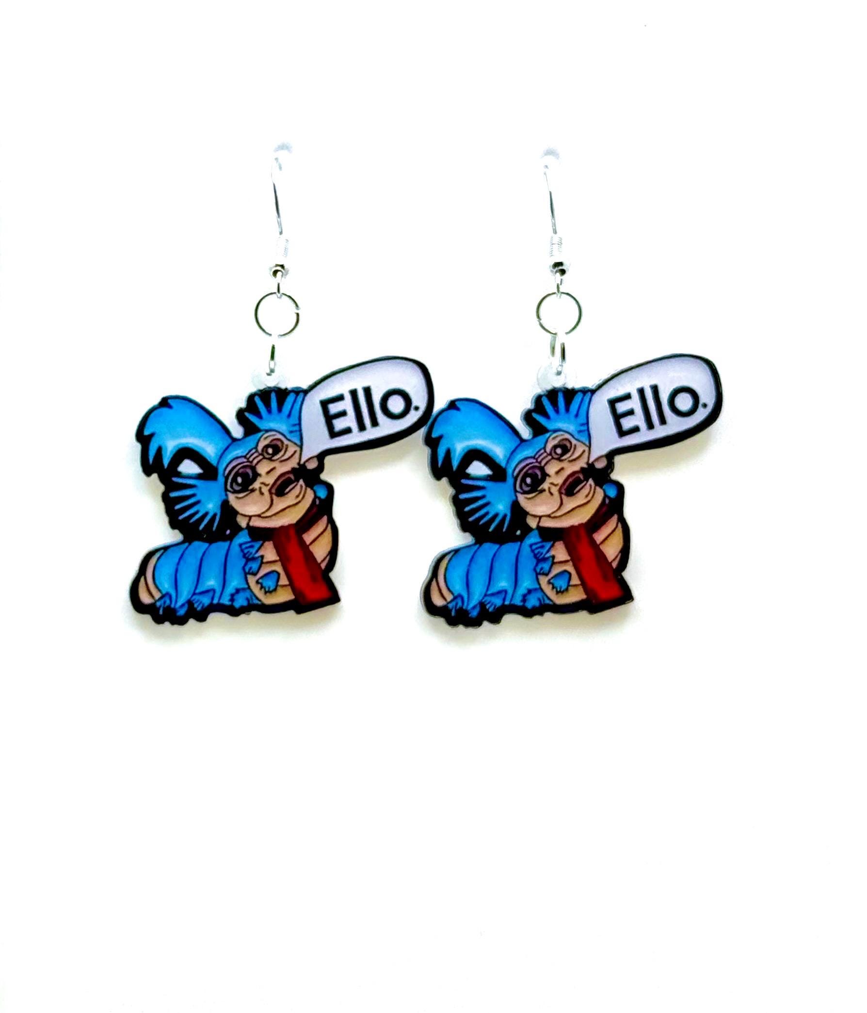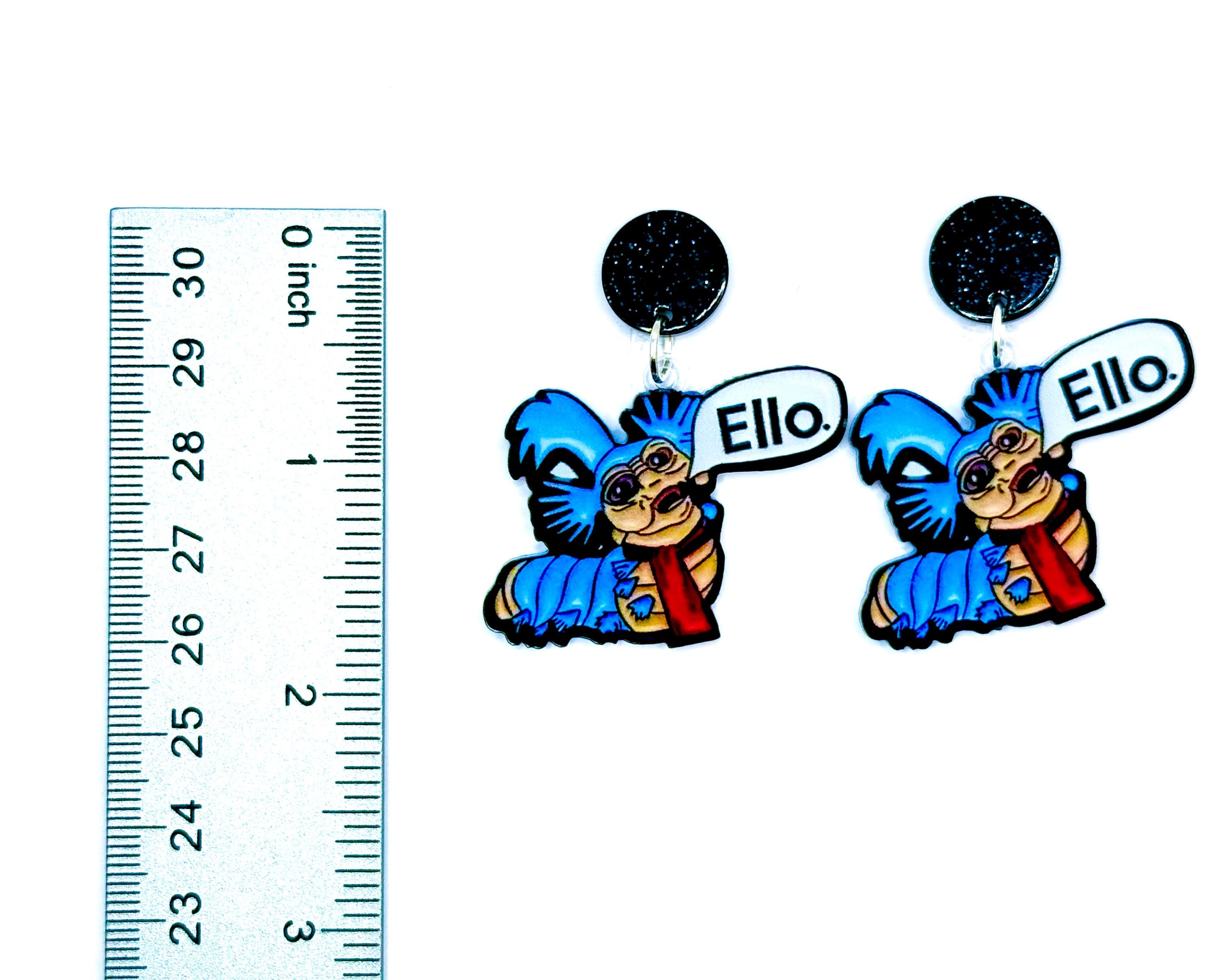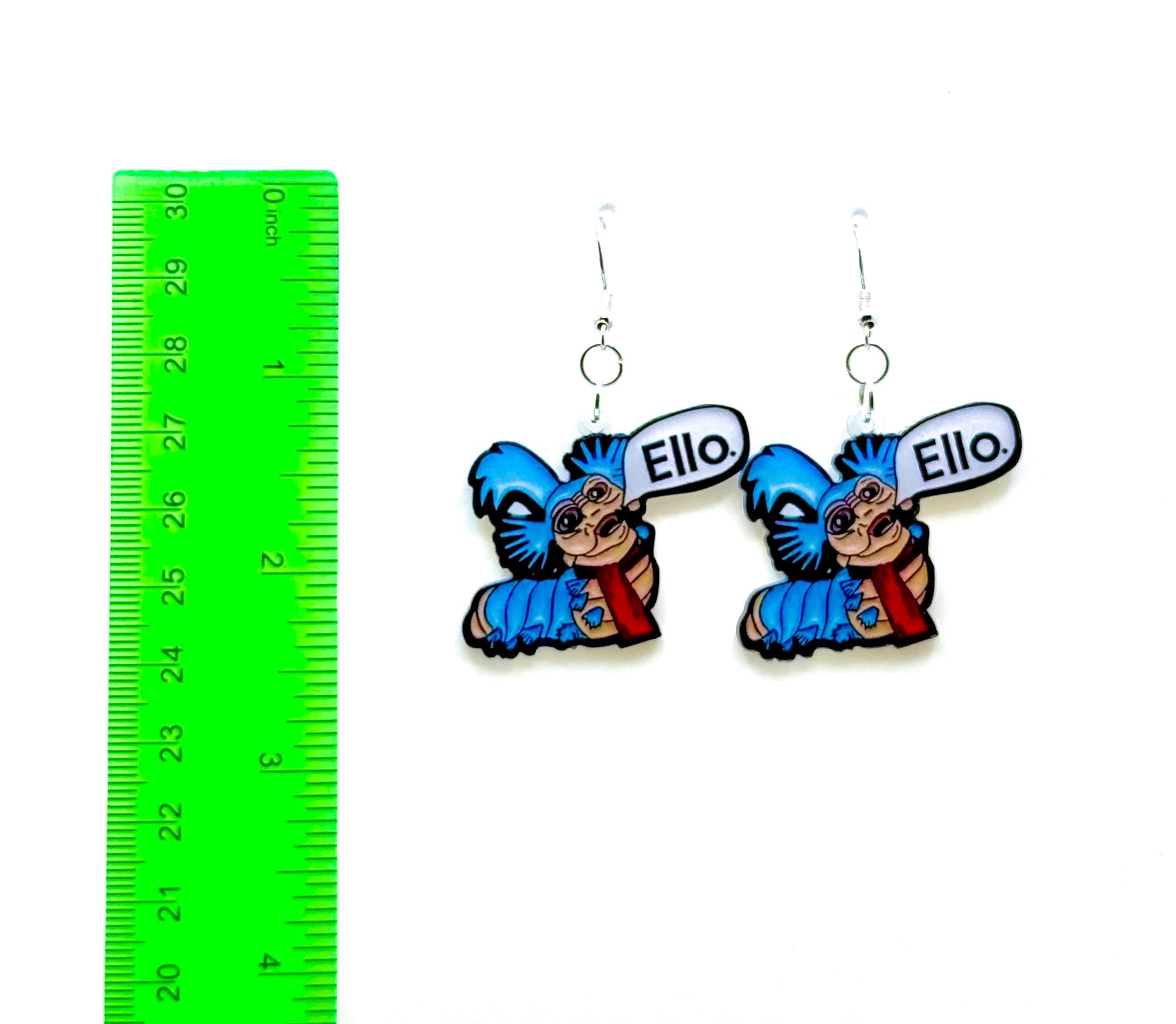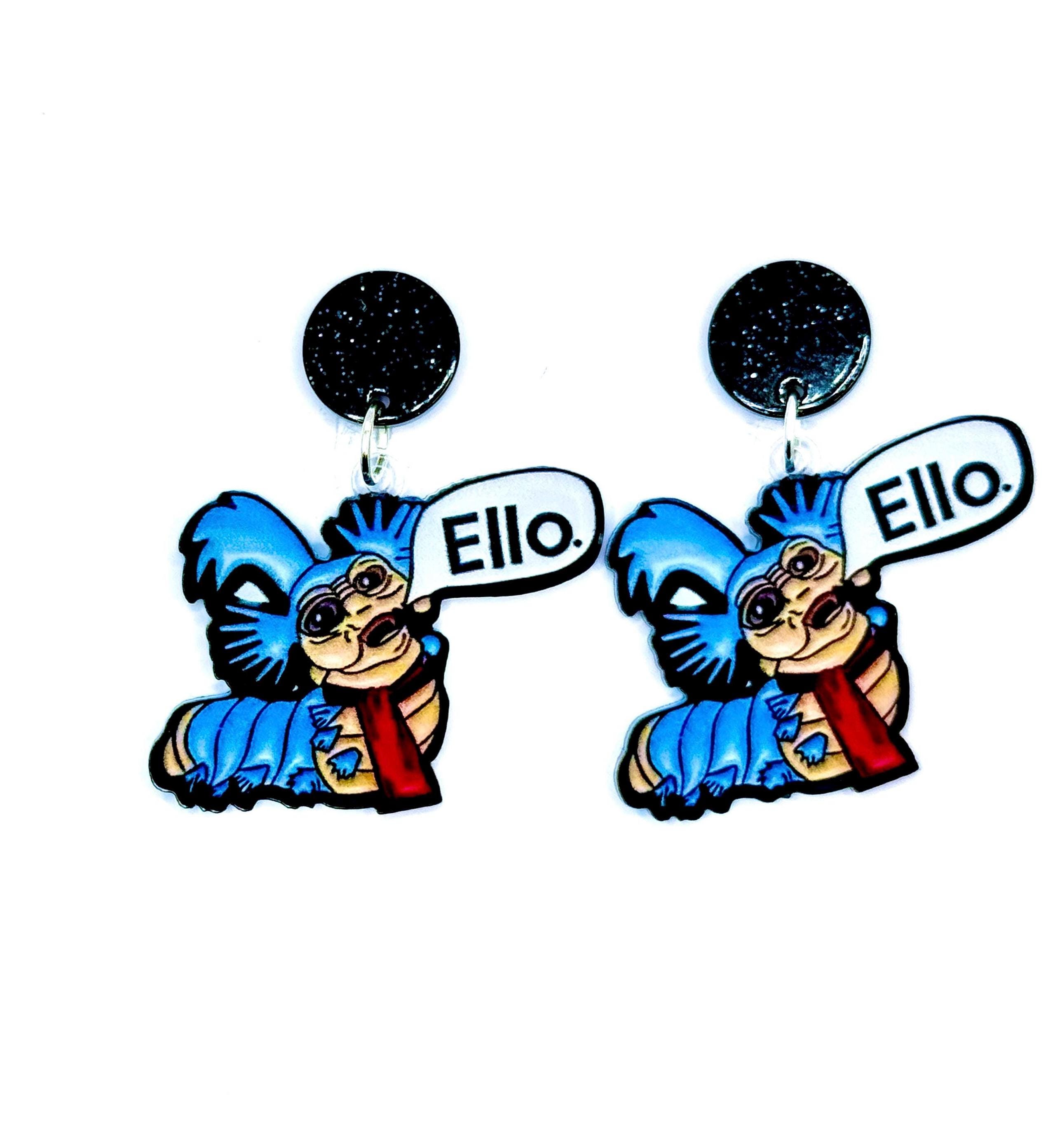 Say "Ello!" to charming adventures with these whimsical earrings inspired by everyone's favorite little labyrinth guide! These quirky companions bring delightful, nostalgic charm to your style, perfect for those who adore friendly, fantastical creatures with a British flair. Featuring eye-catching black glitter circle studs, they'll bring a touch of playful magic to any outfit.