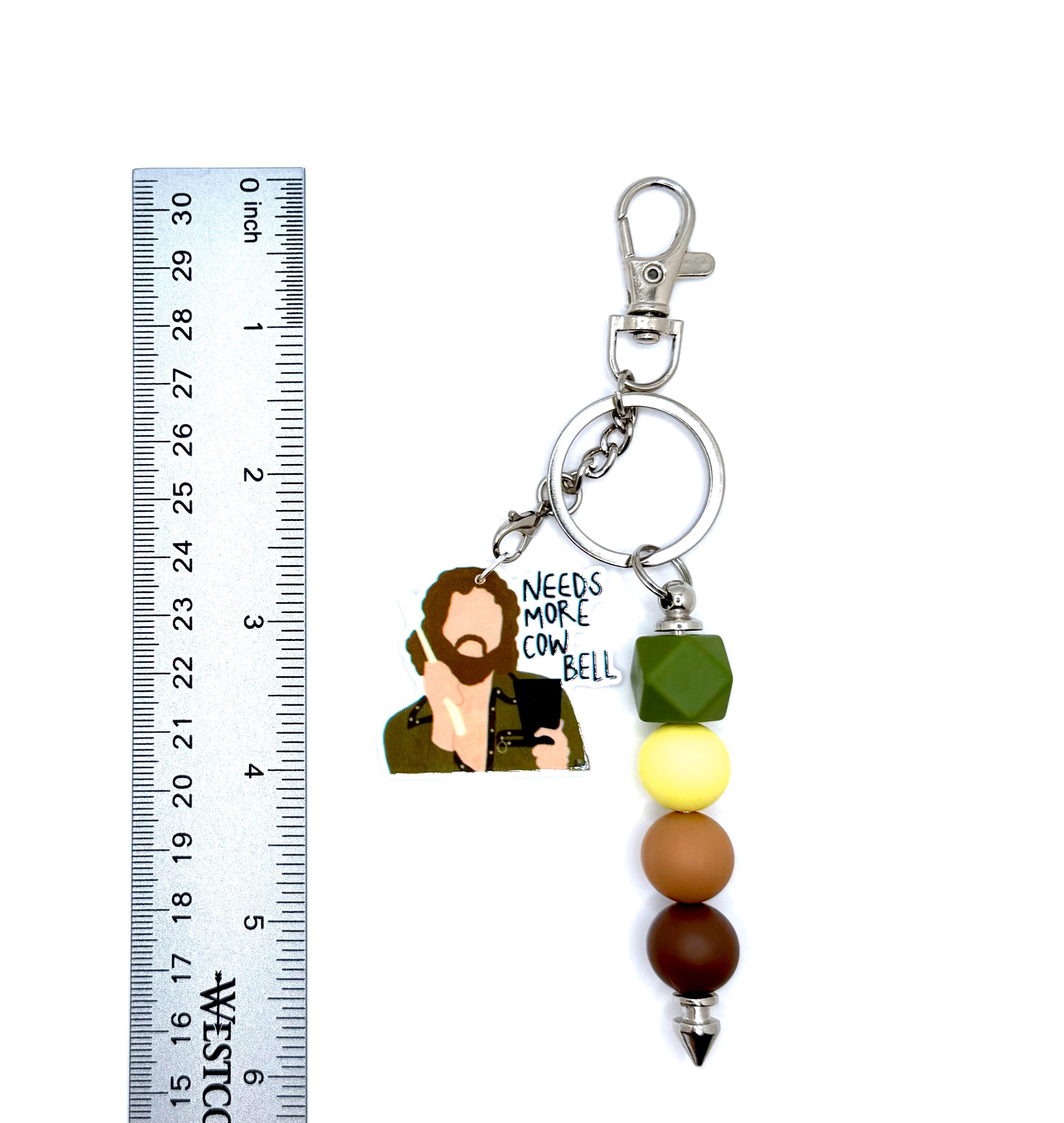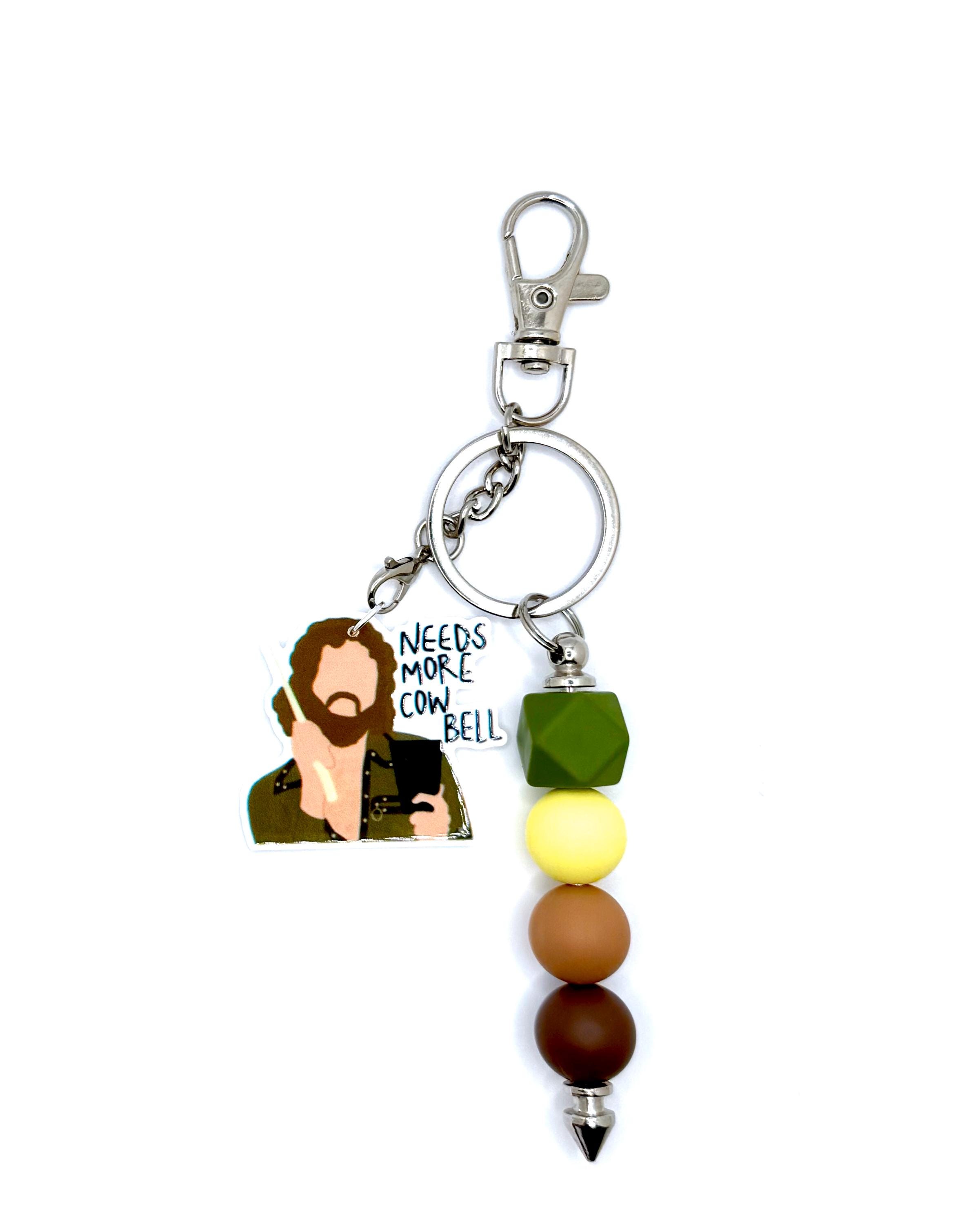 The perfect gift for anyone who’s ever been told to turn it up a notch—this handmade keychain brings the energy of that iconic cowbell moment everywhere you go. Featuring an illustrated charm of a very passionate percussionist and a bold mix of silicone beads in earthy tones, this accessory is just what your keys, bags, or gifts were missing.