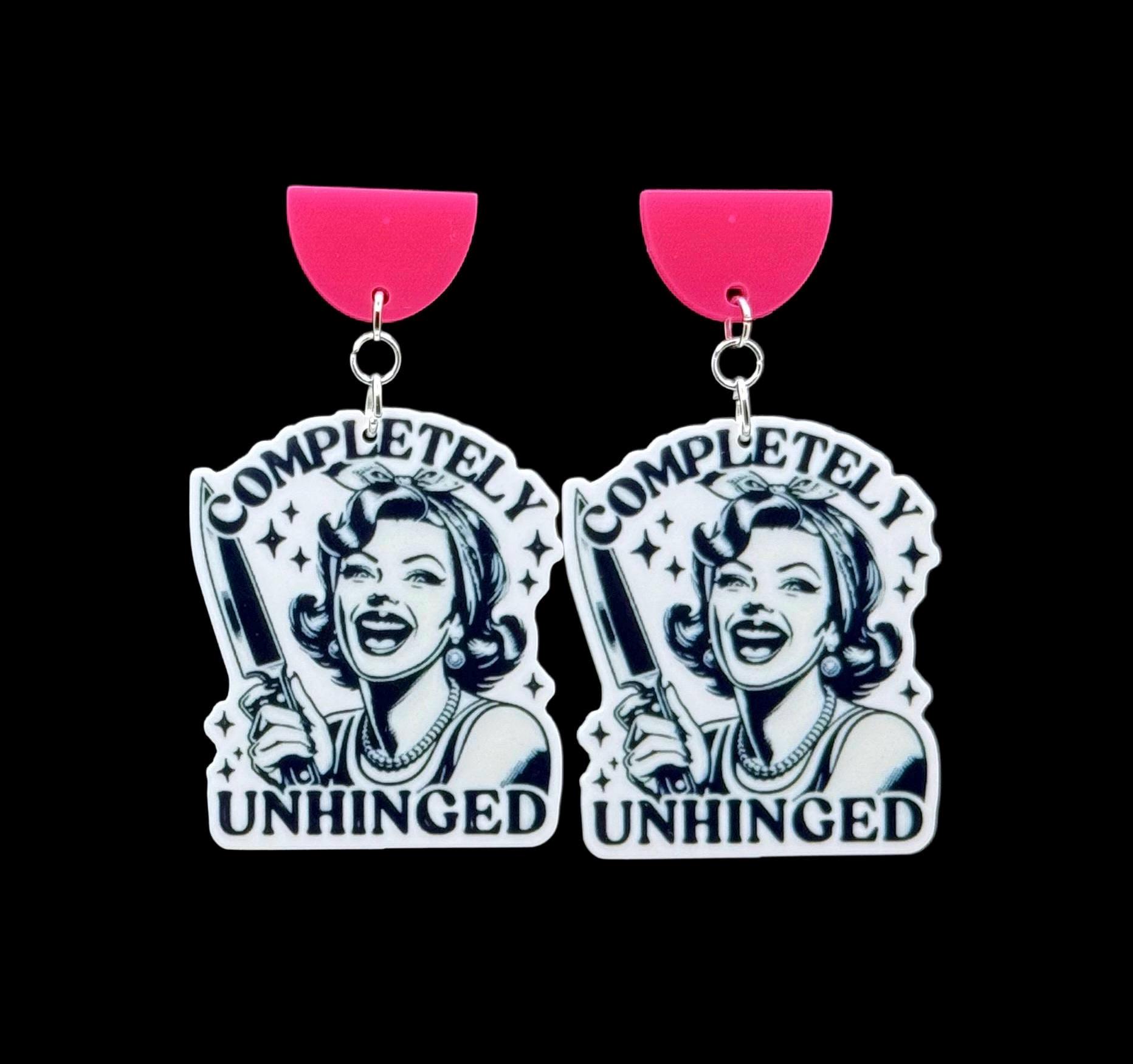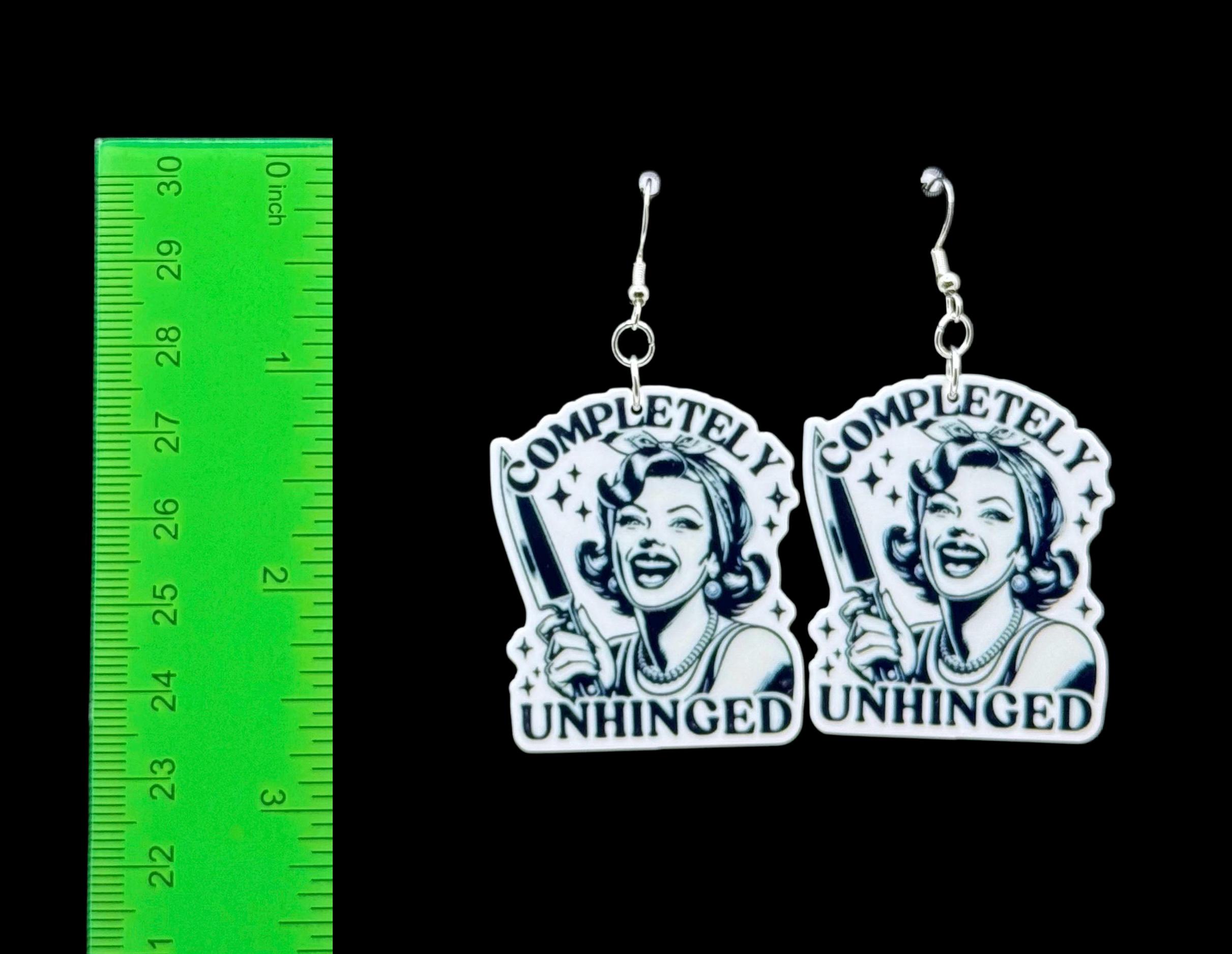Dark Humor Sarcasm Earrings: Unhinged Hot Mess - Nickel-Free