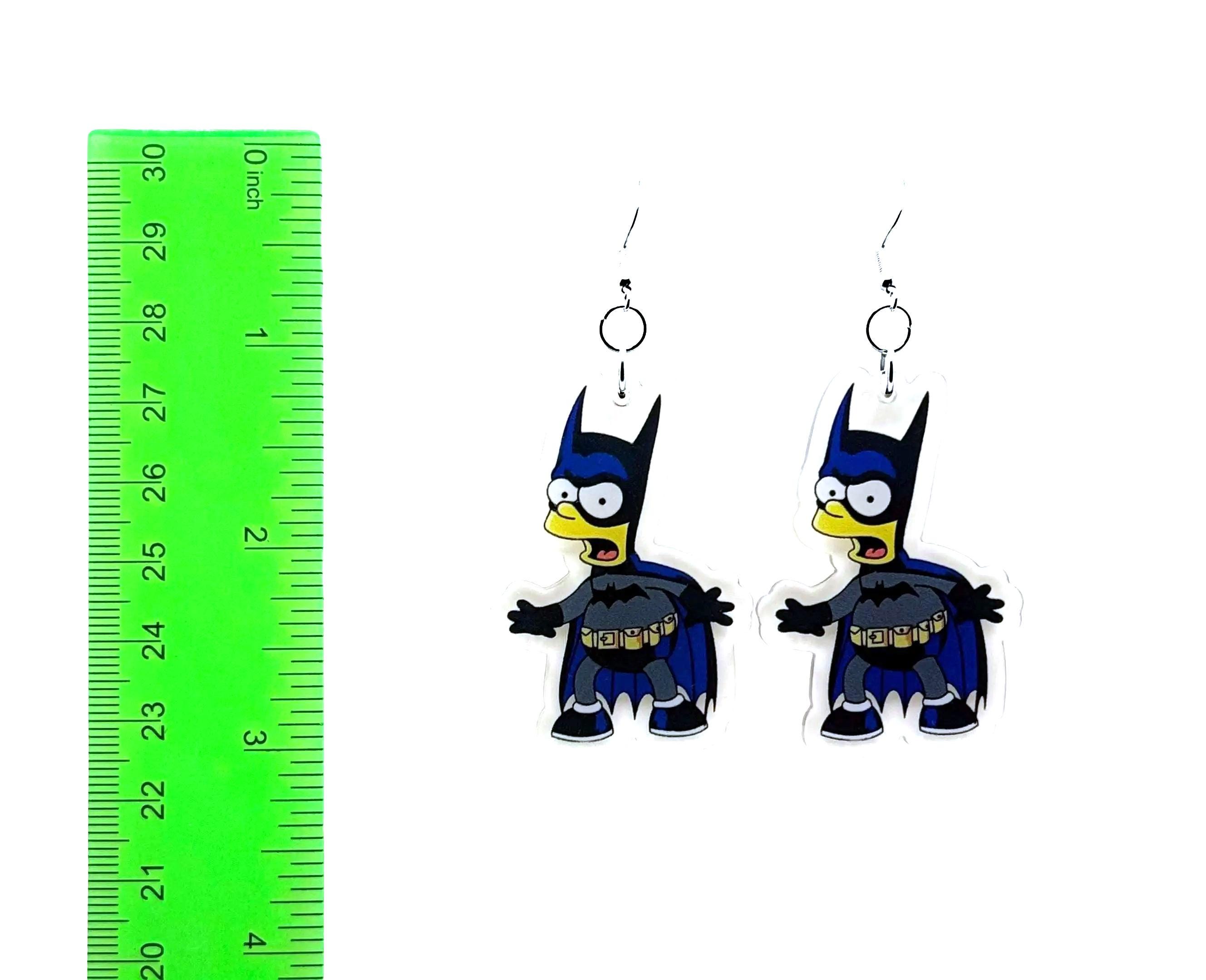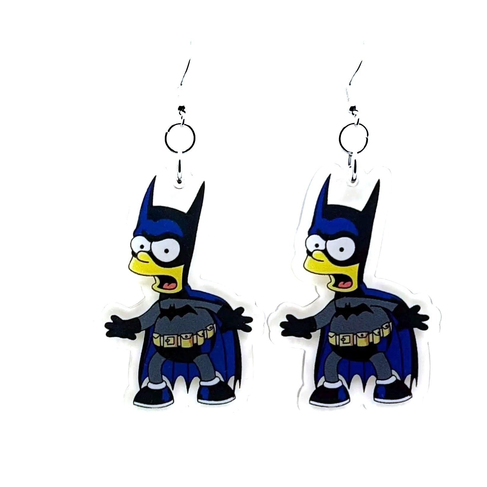 Cartoon Earrings, Superhero, B.S. Inspired, Springfield Superhero, Bad Boy, Funny Earrings