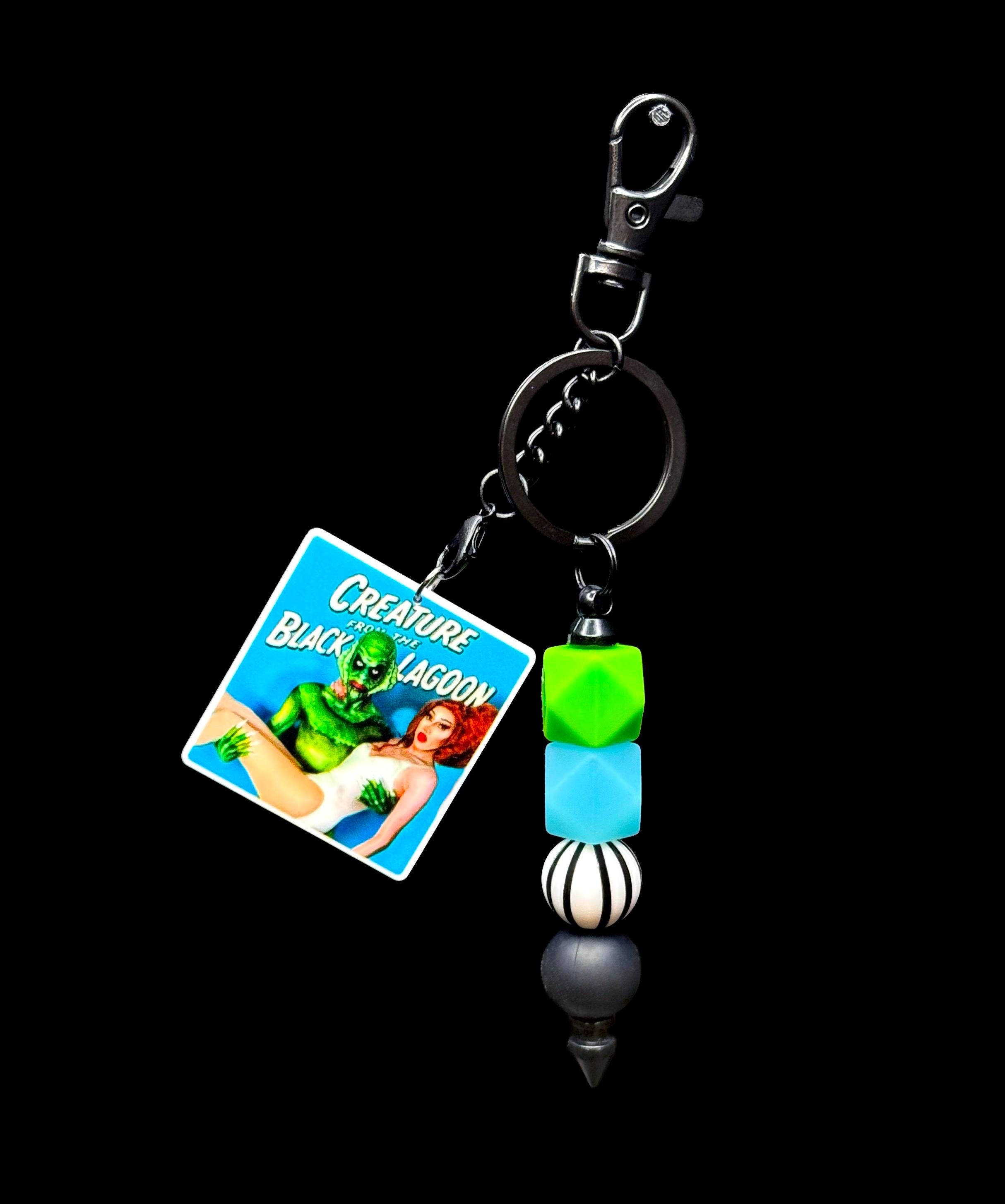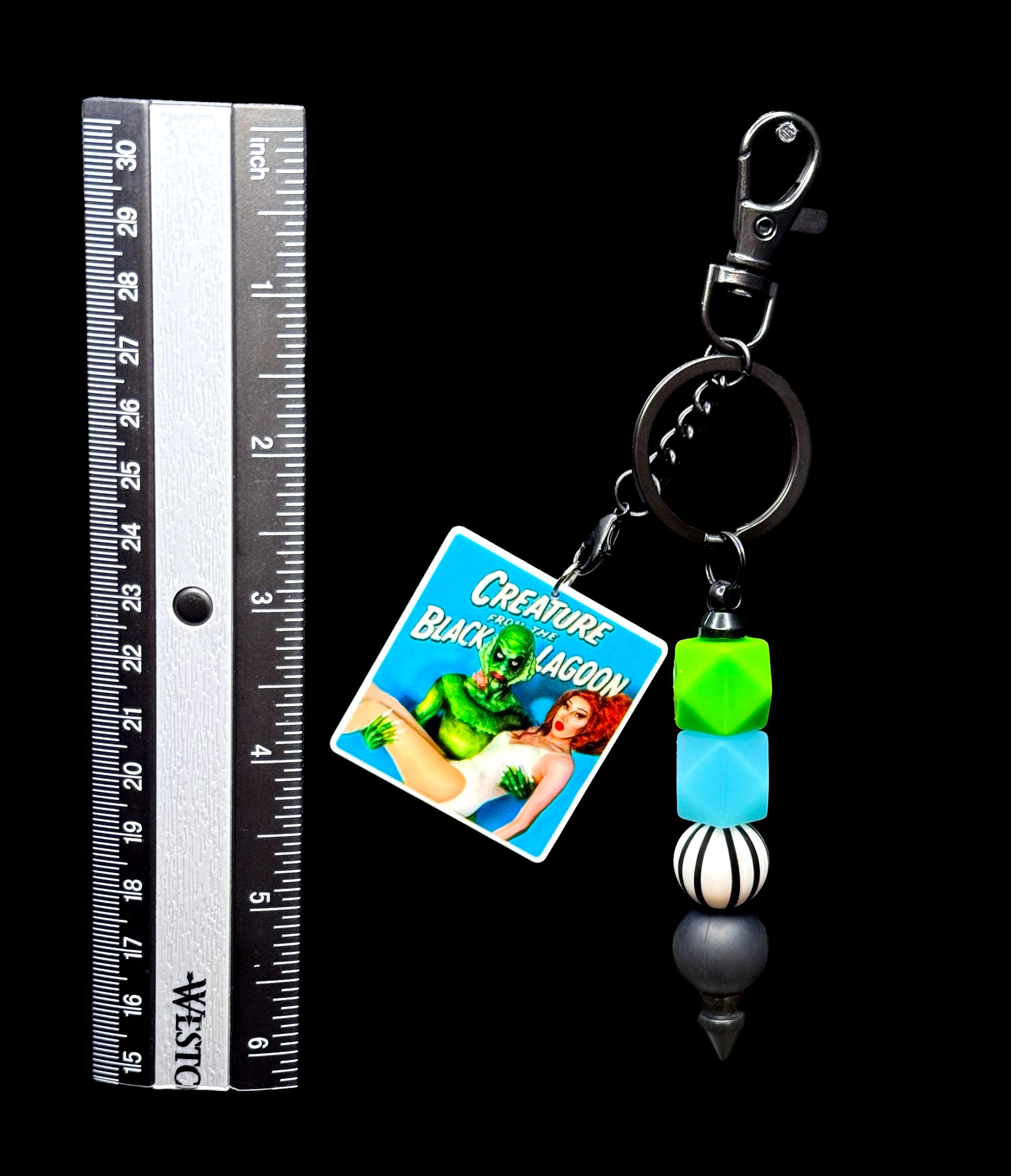 Lagoon Monster Beaded Bag Charm: Vintage Horror Keychain