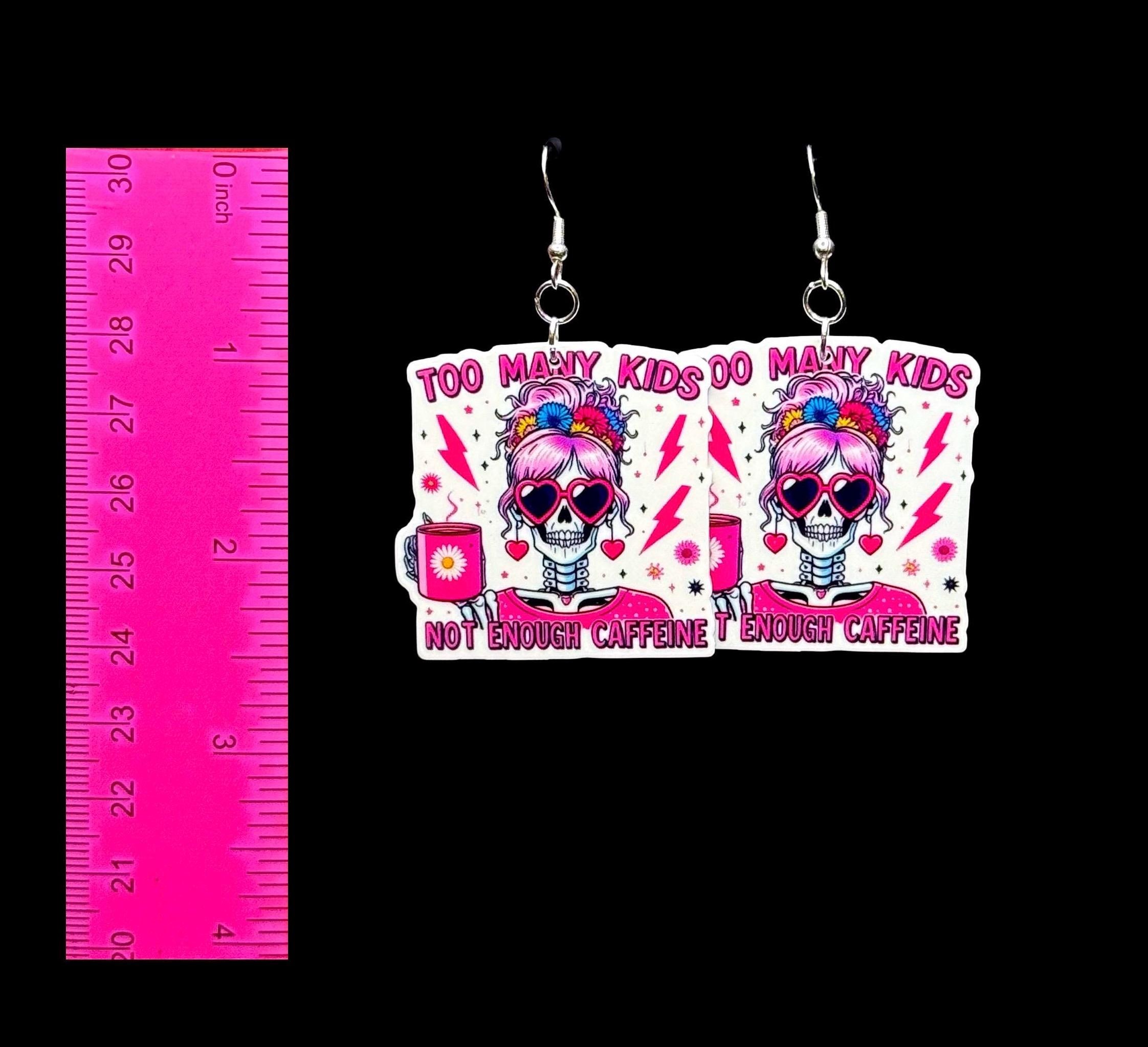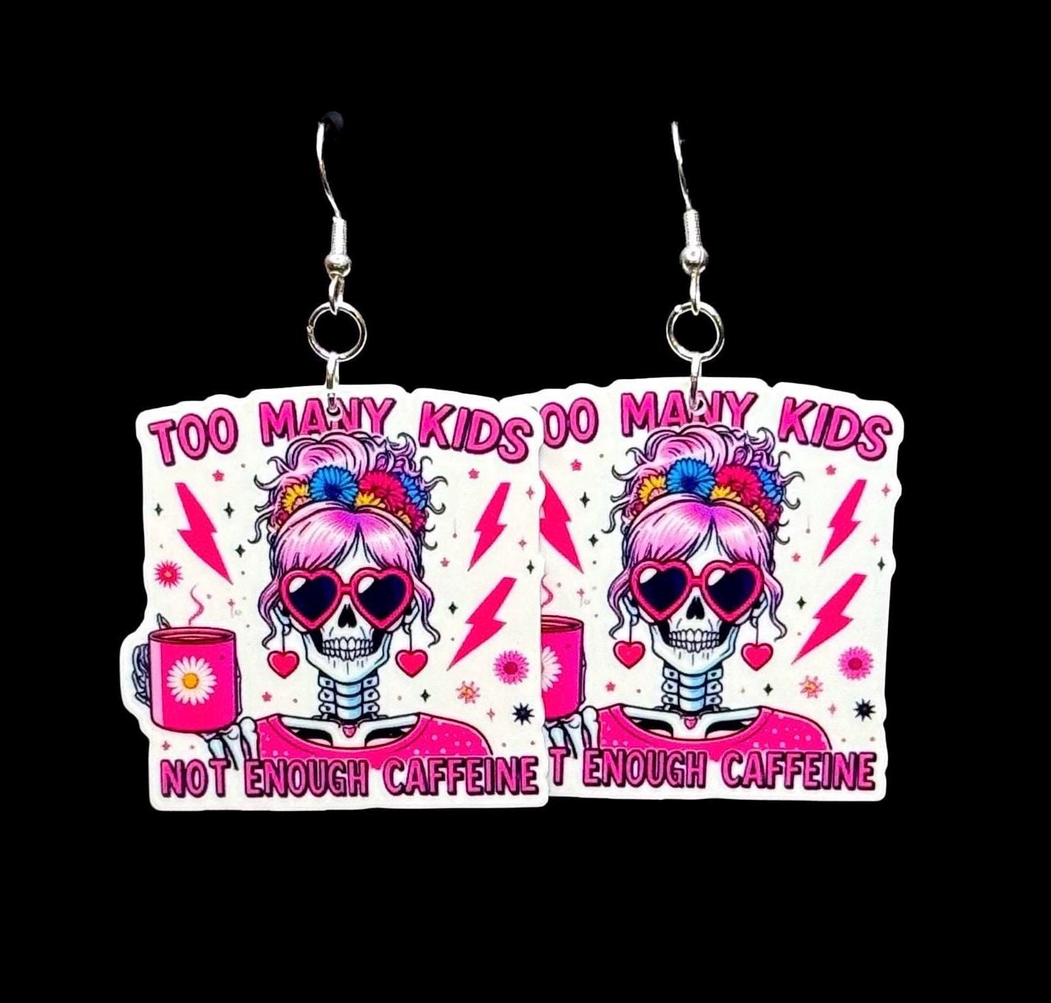 Caffeine Addict Mom Earrings: Nickel-Free Silver Hooks