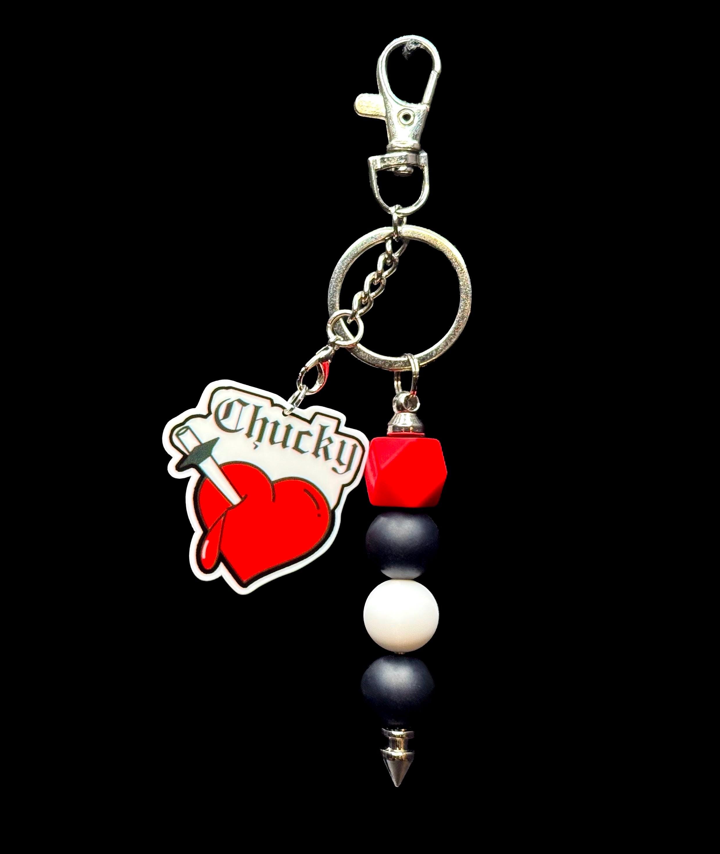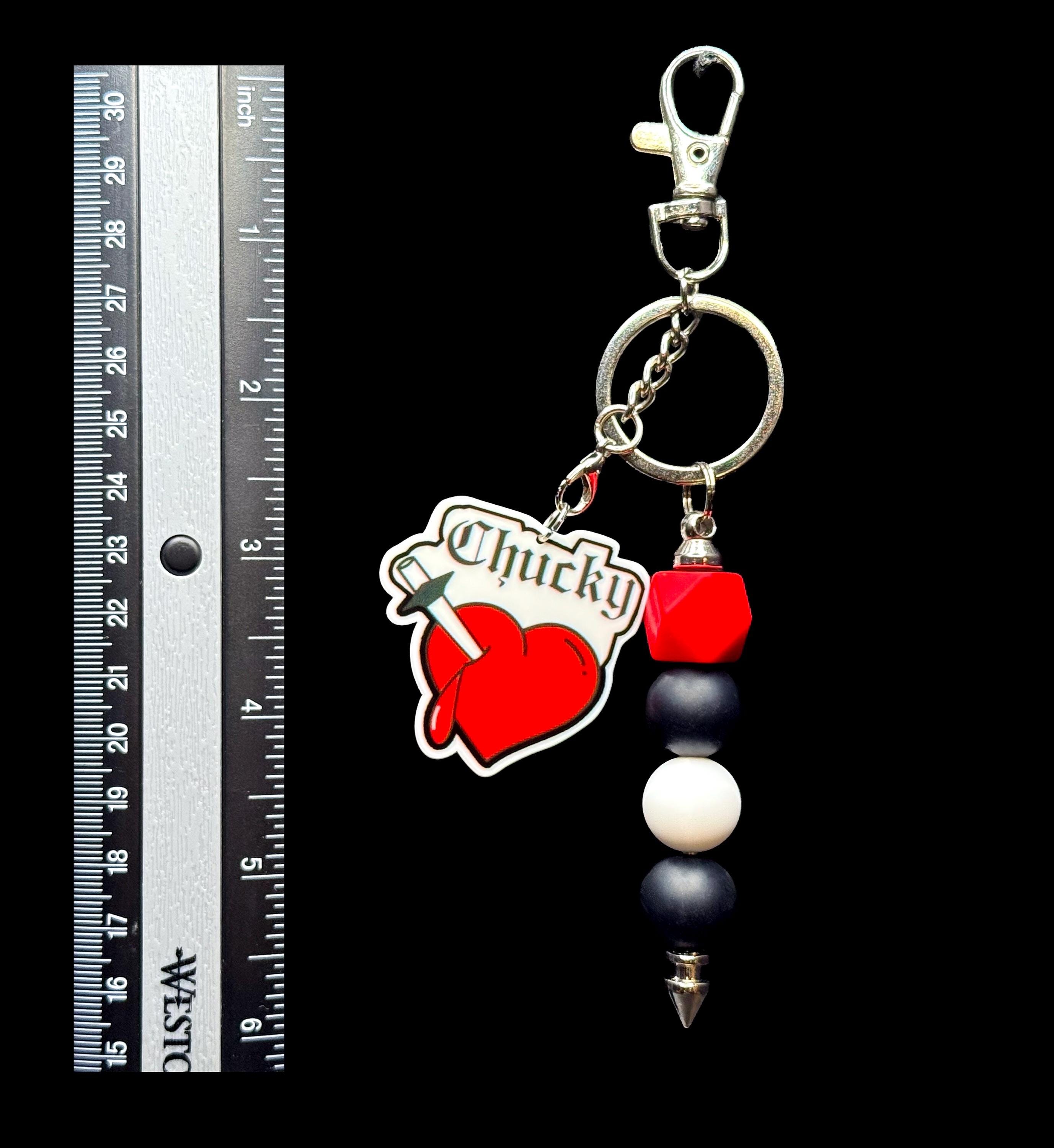 Horror Keychain, Tattoo Heart Charm, Beaded Spooky Bag Charm