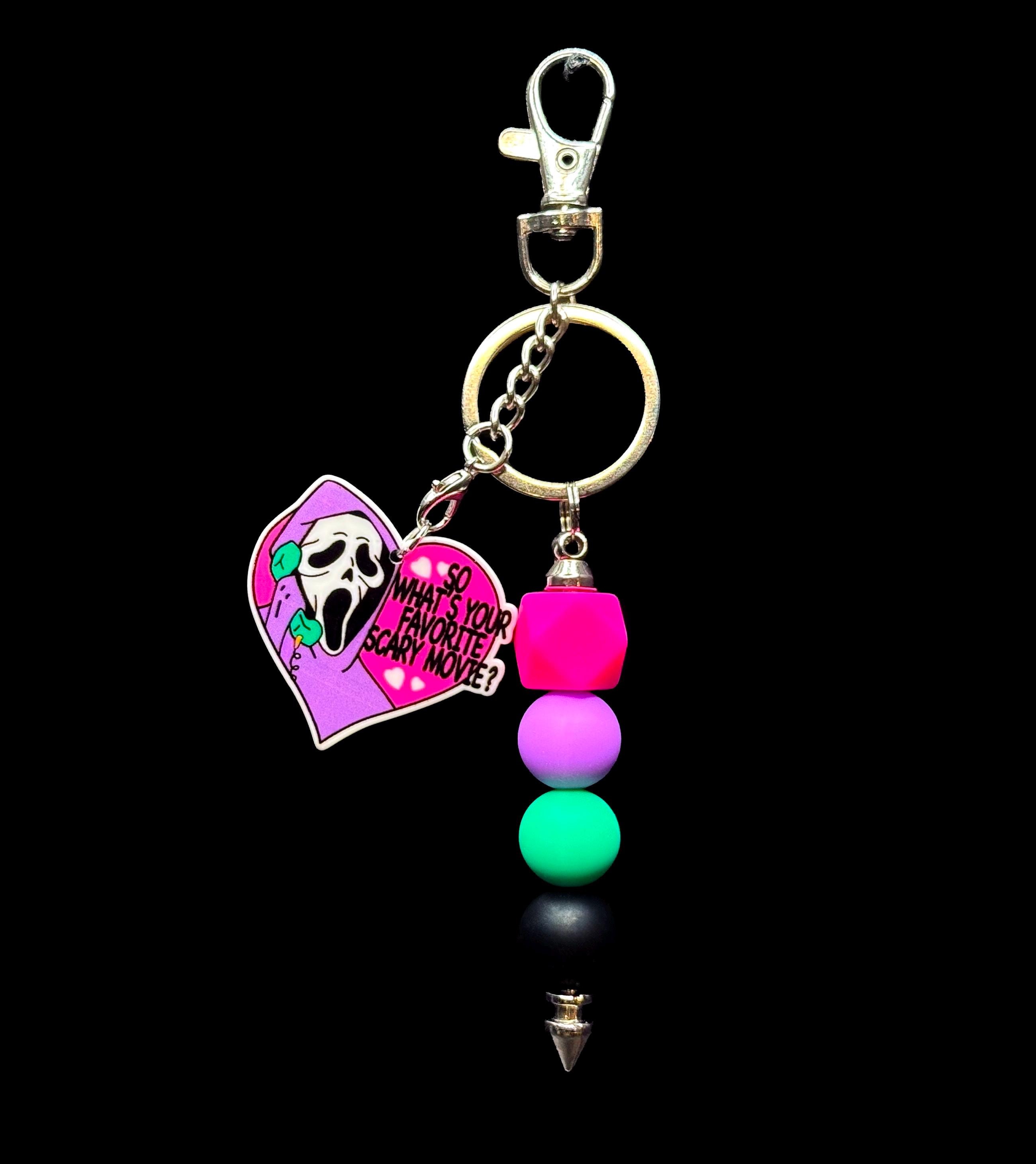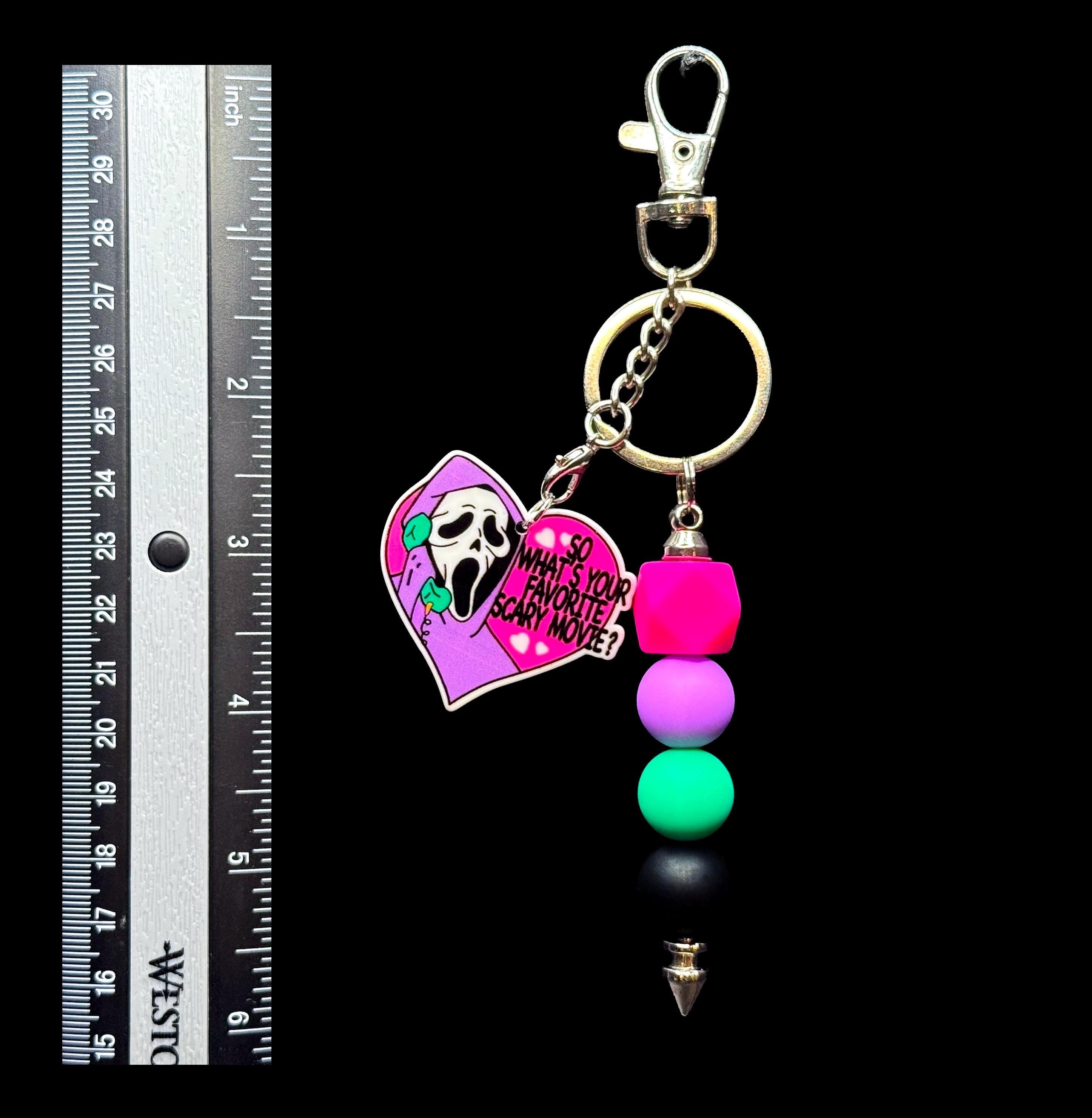 Horror Movie Keychain, Spooky Bag Charm, Silver Clasp