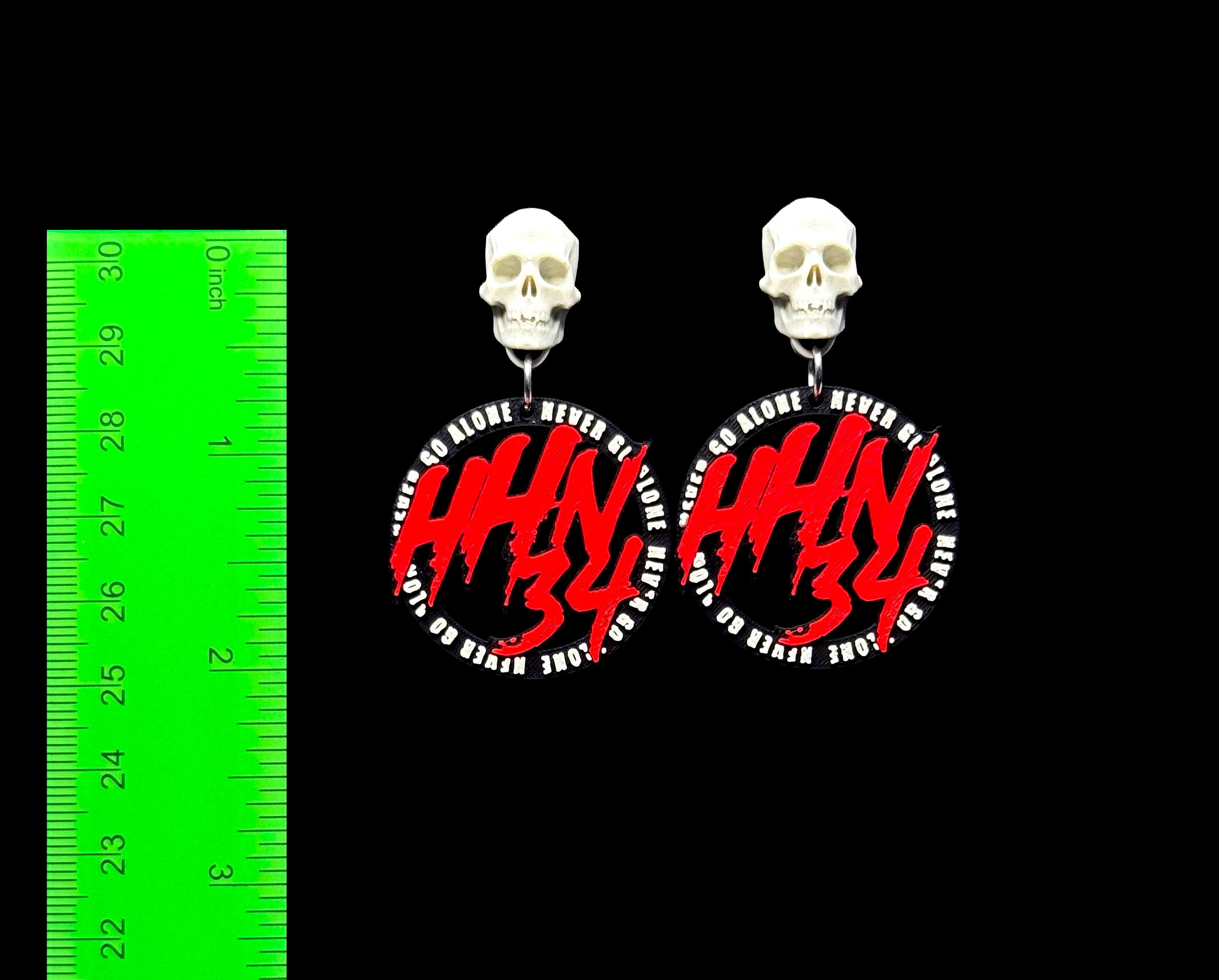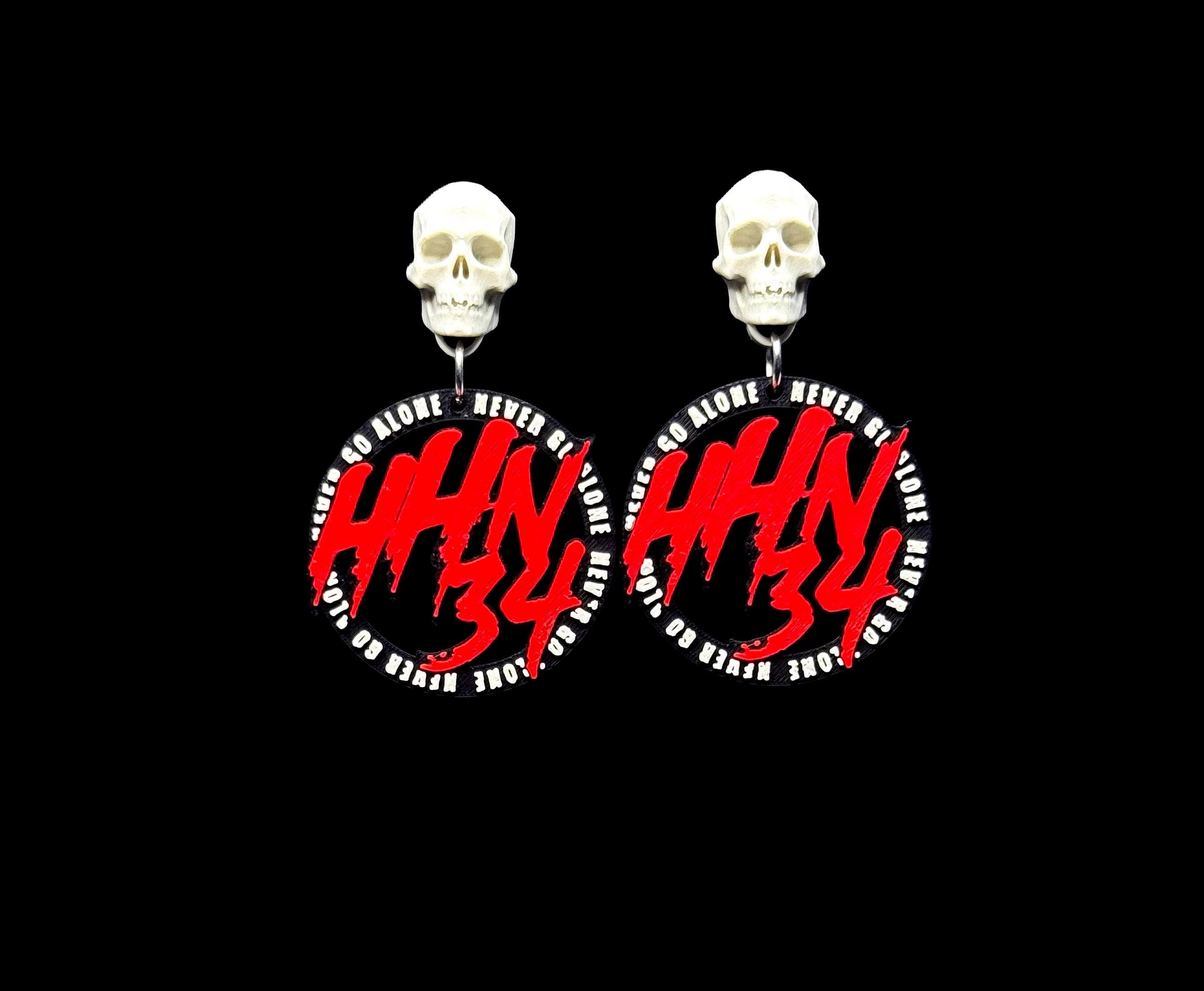 Straight from the fog—these earrings are fully 3D printed in black, bone white, and murder red to capture the hype of HHN 34. Choose your fear factor with classic hooks or bone-white skull studs.