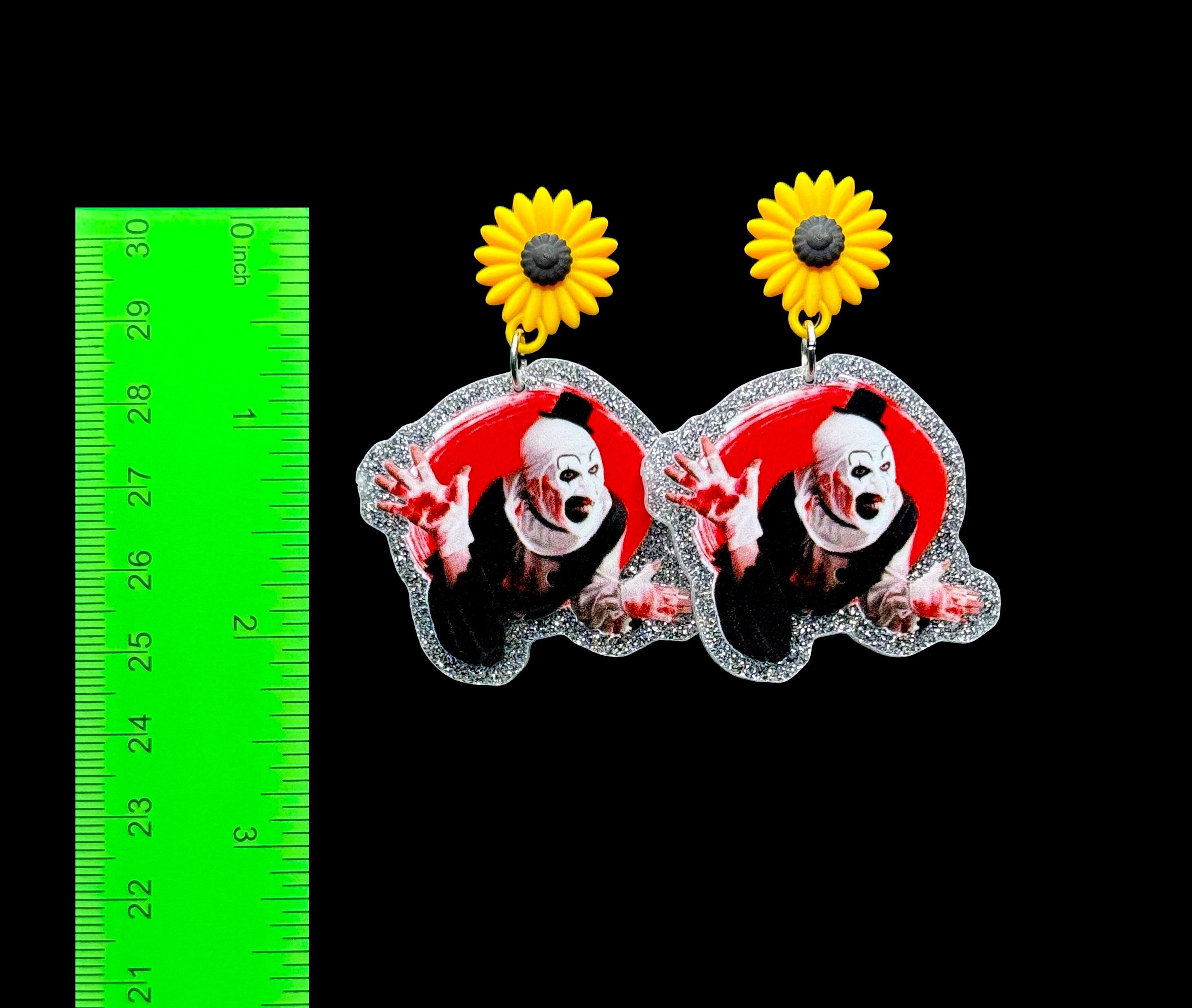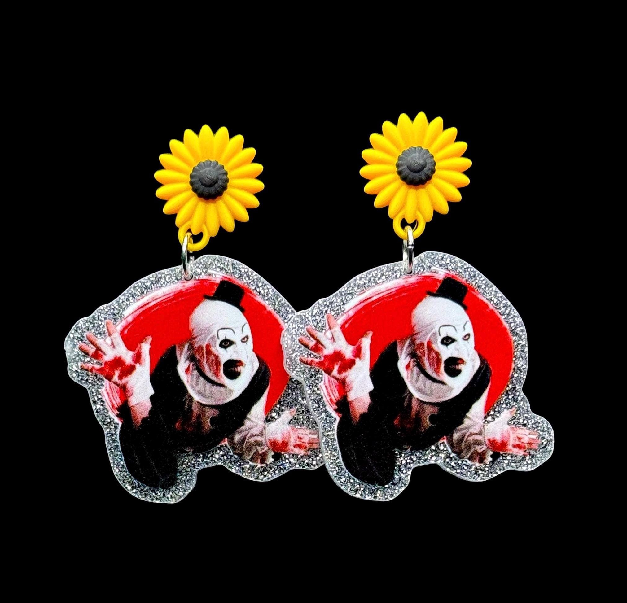 Daisy Clown Horror Earrings: Spooky Halloween Jewelry