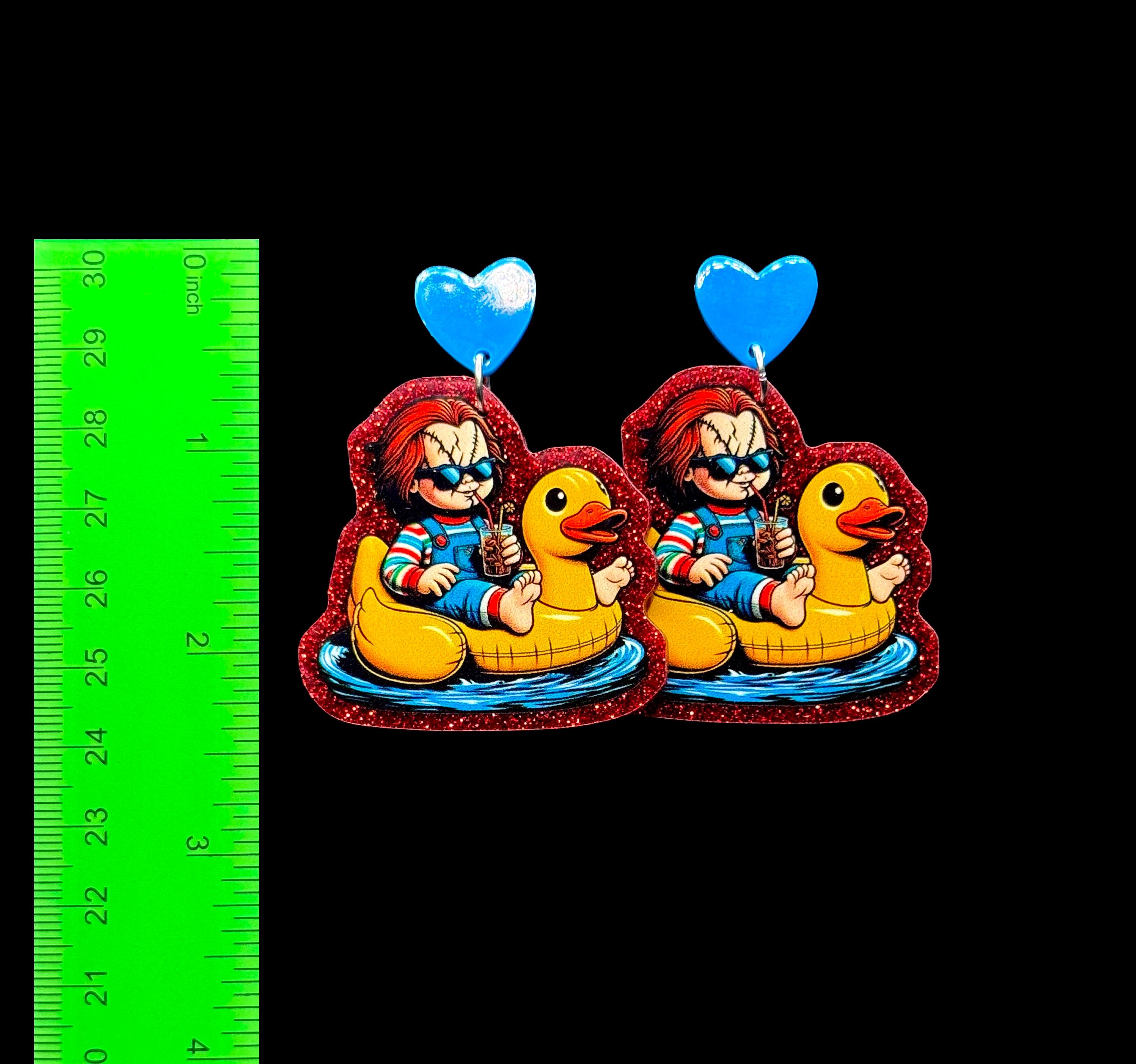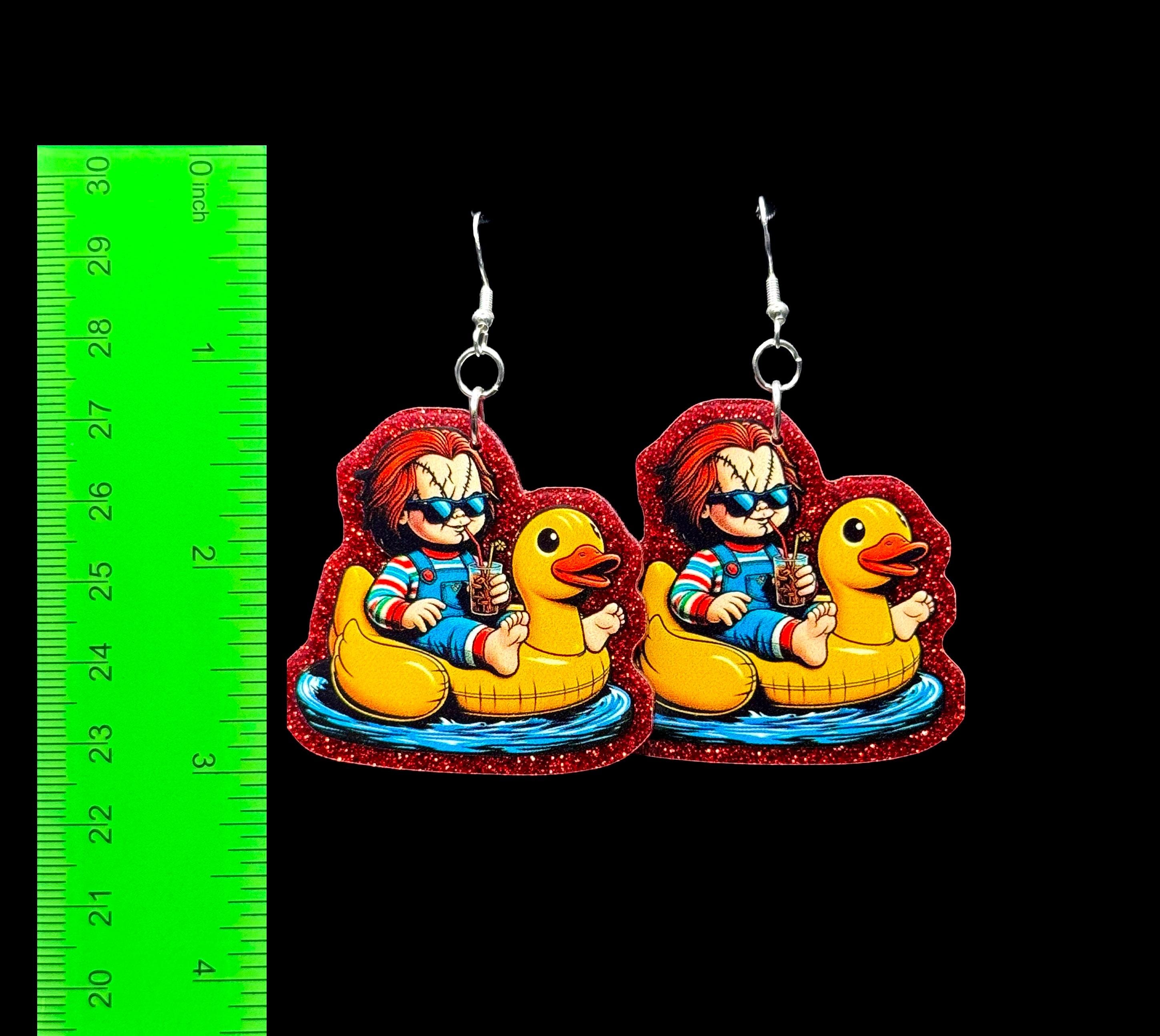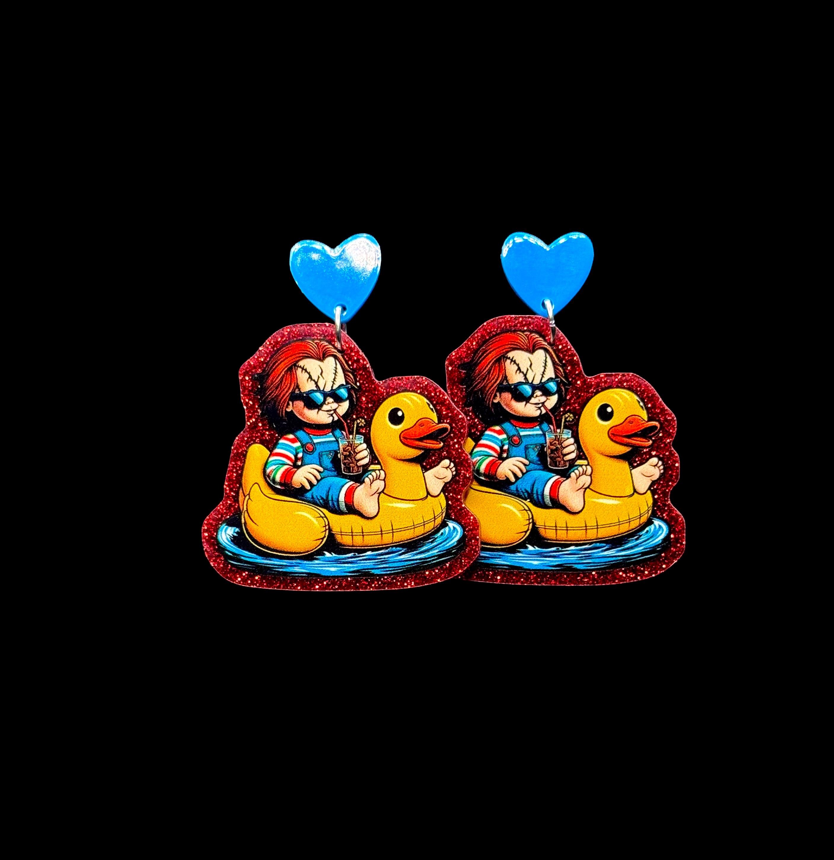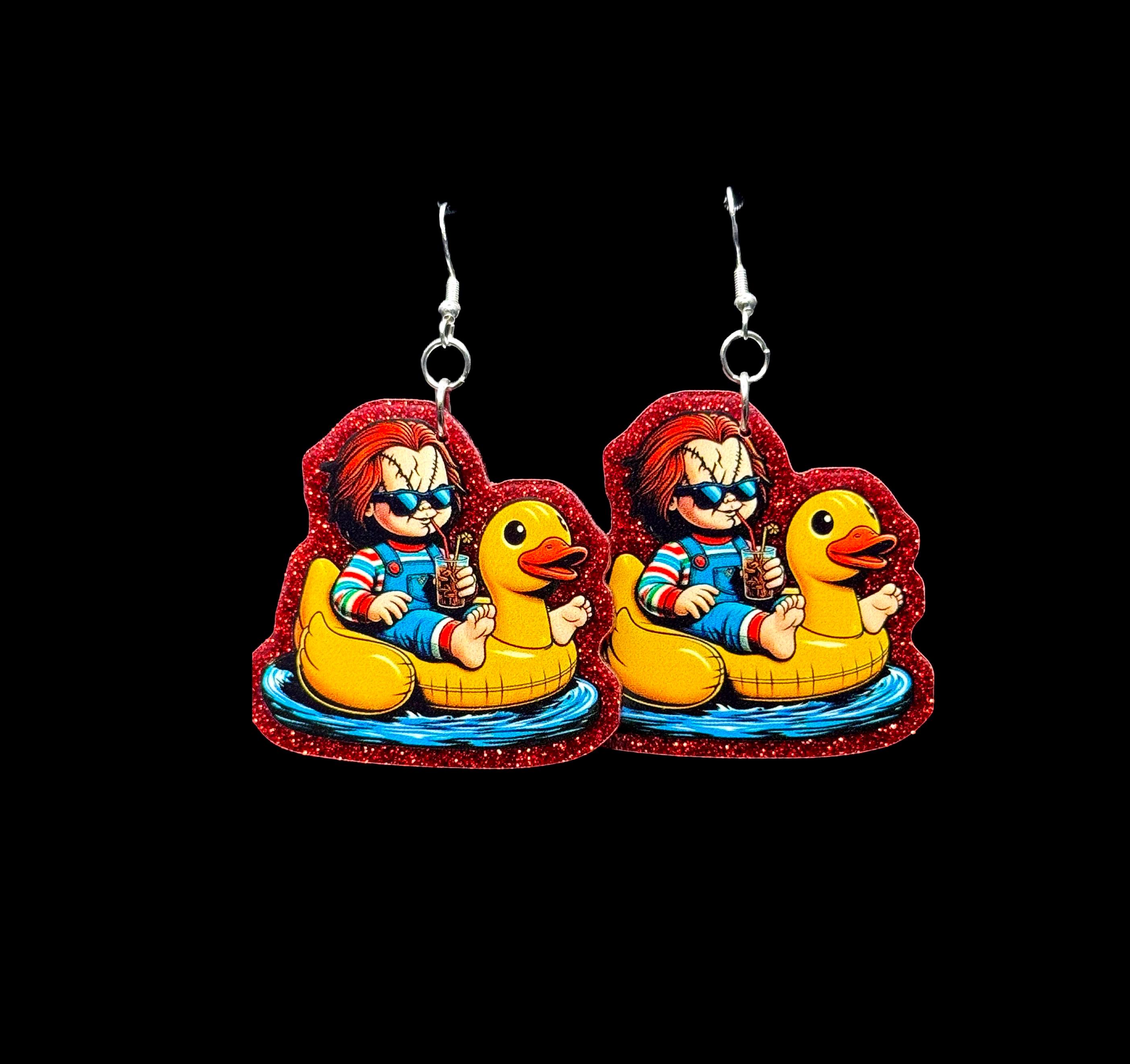 Creepy meets cheeky—these earrings serve up horror with a splash of summertime floatie fun. Equal parts unsettling and hilarious, they’re a must for haunt season.