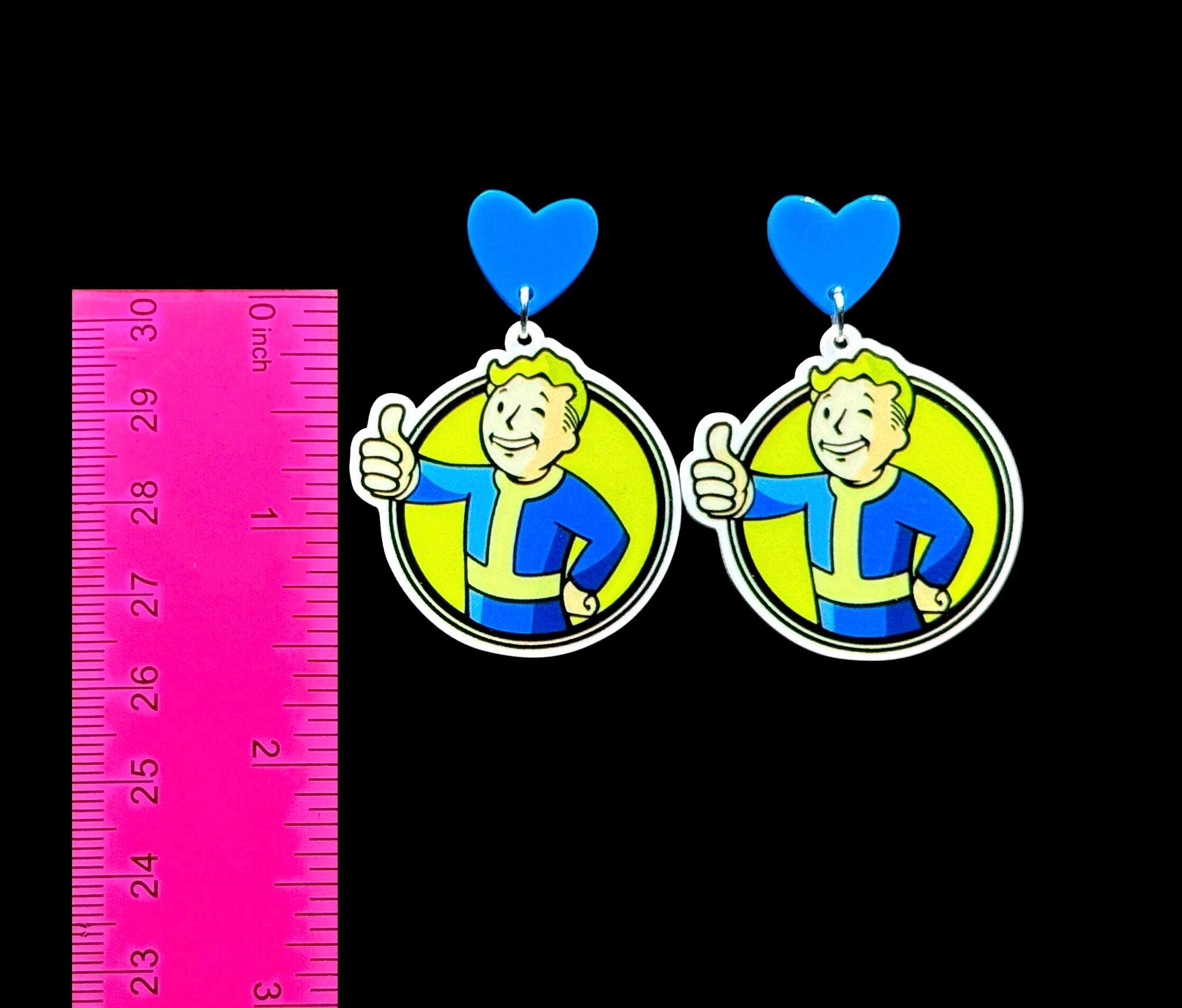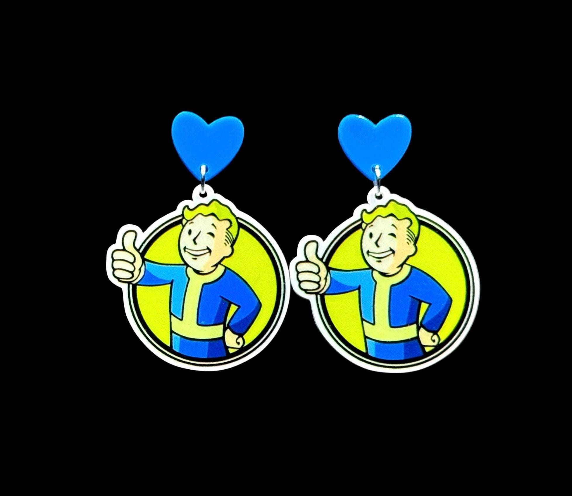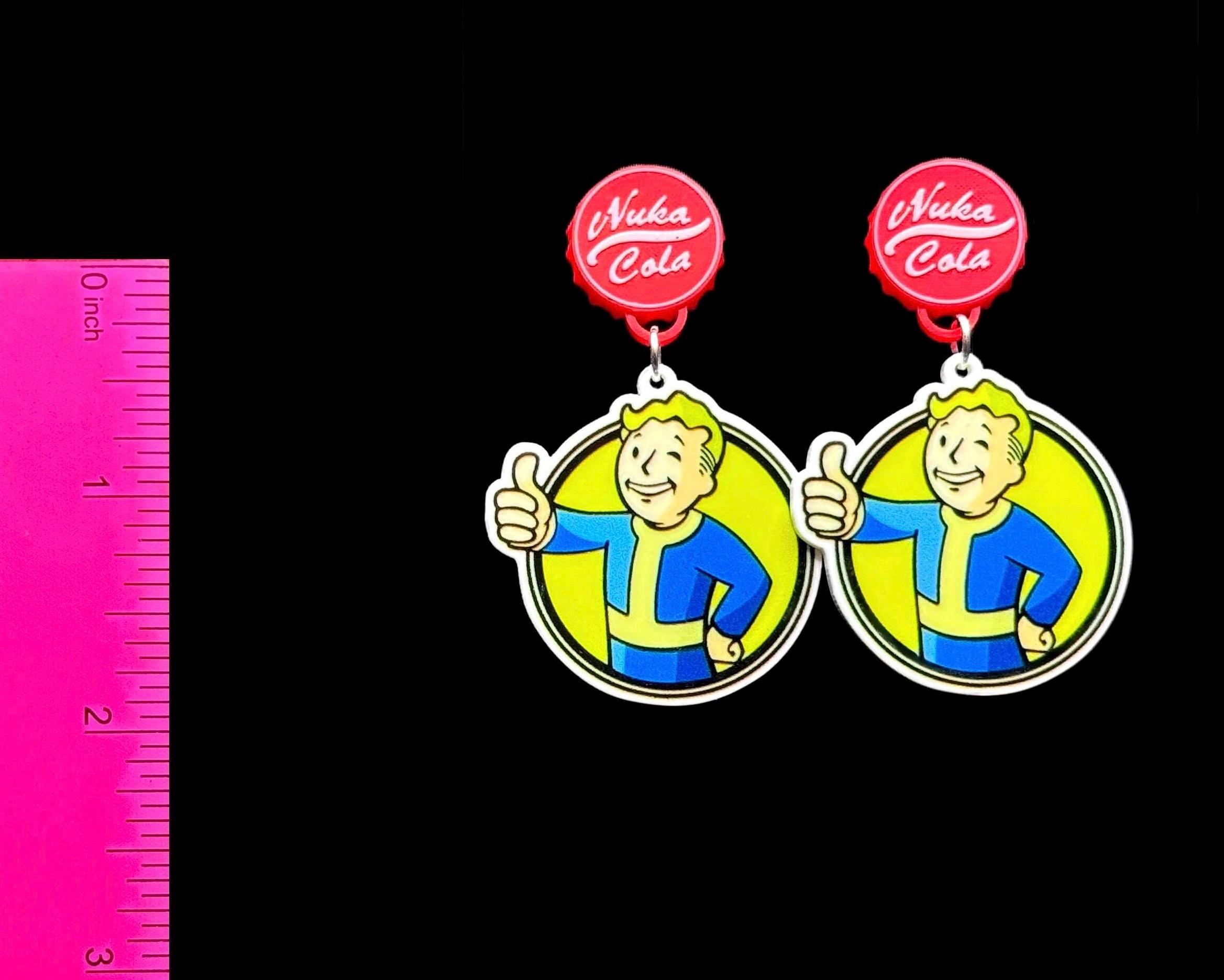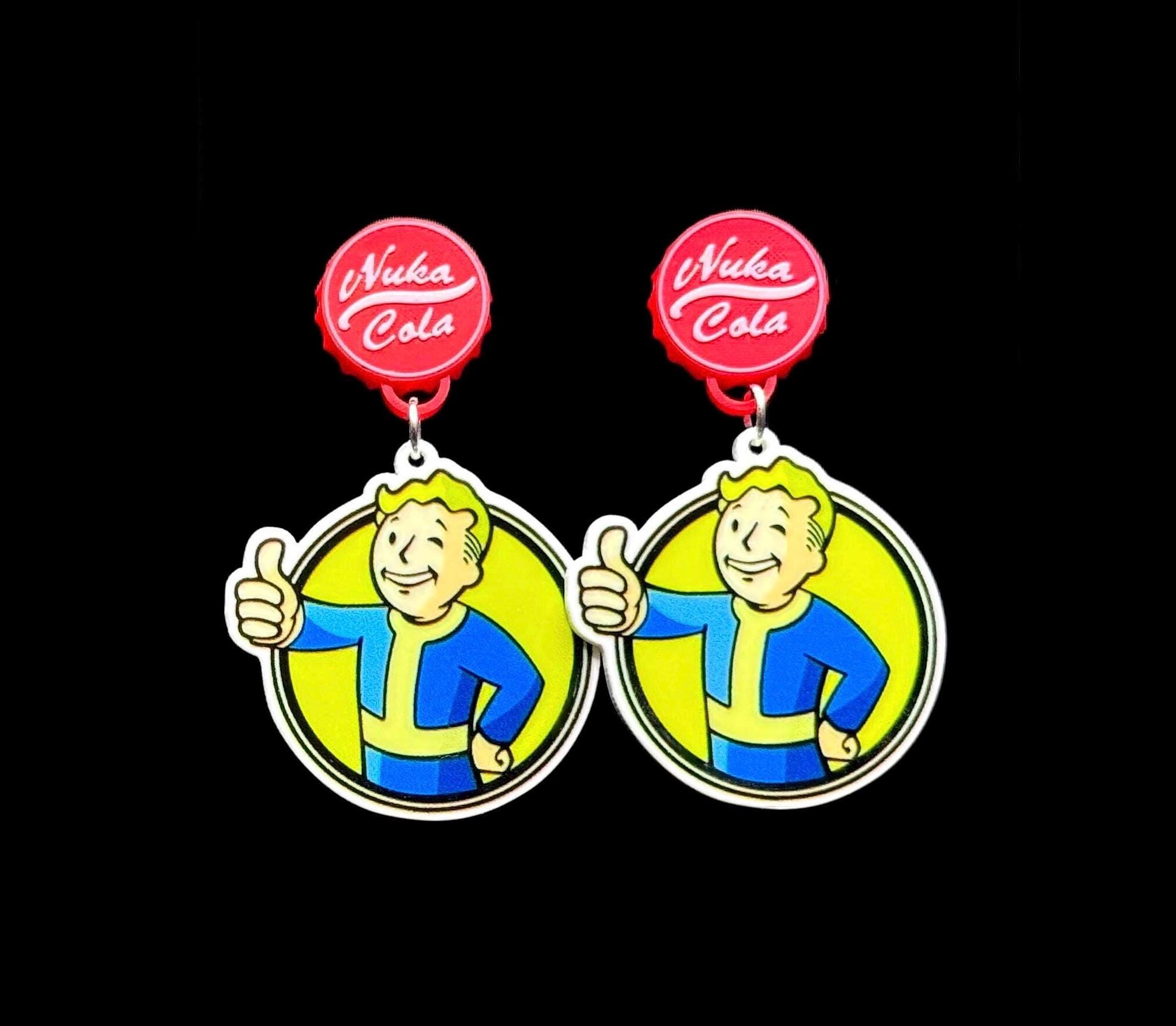 Options: Standard hooks, blue heart studs, or 3D printed Nuka Cola cap studs