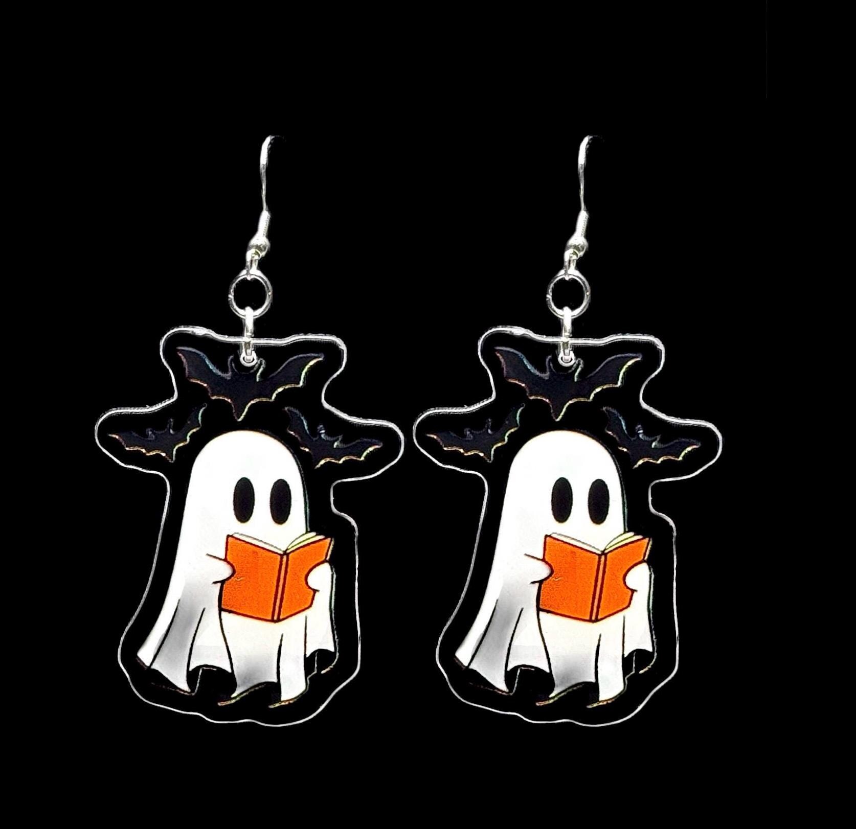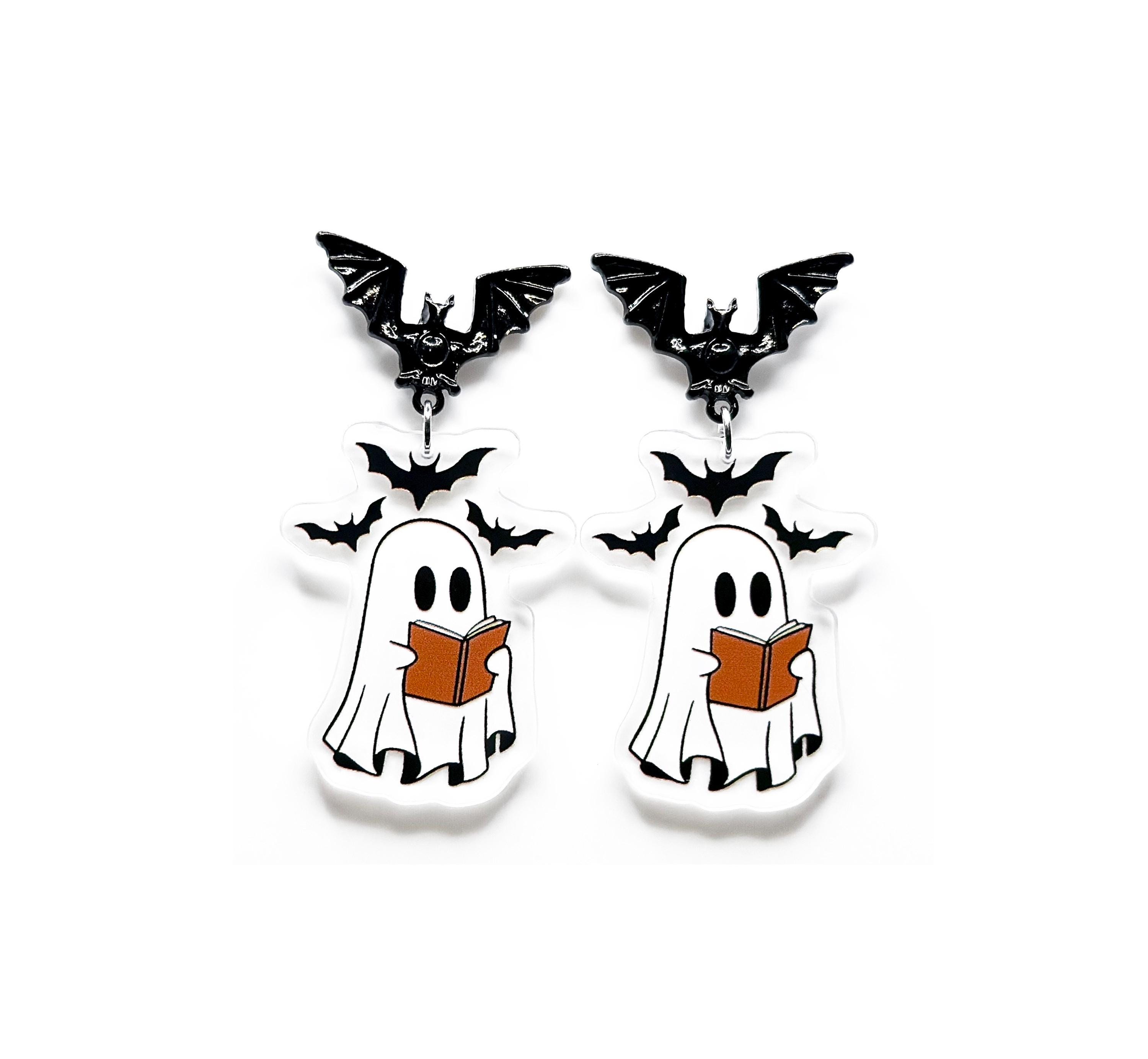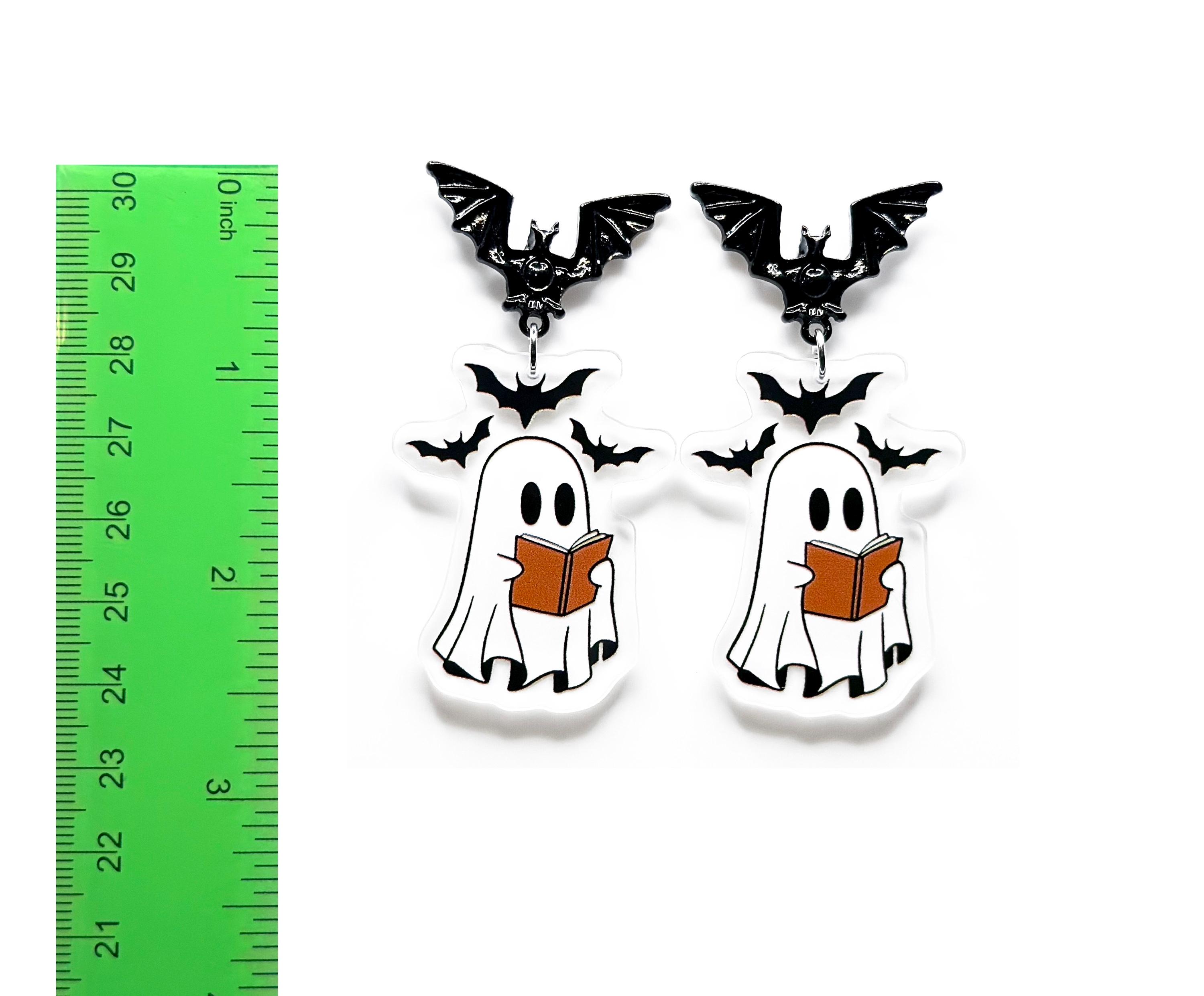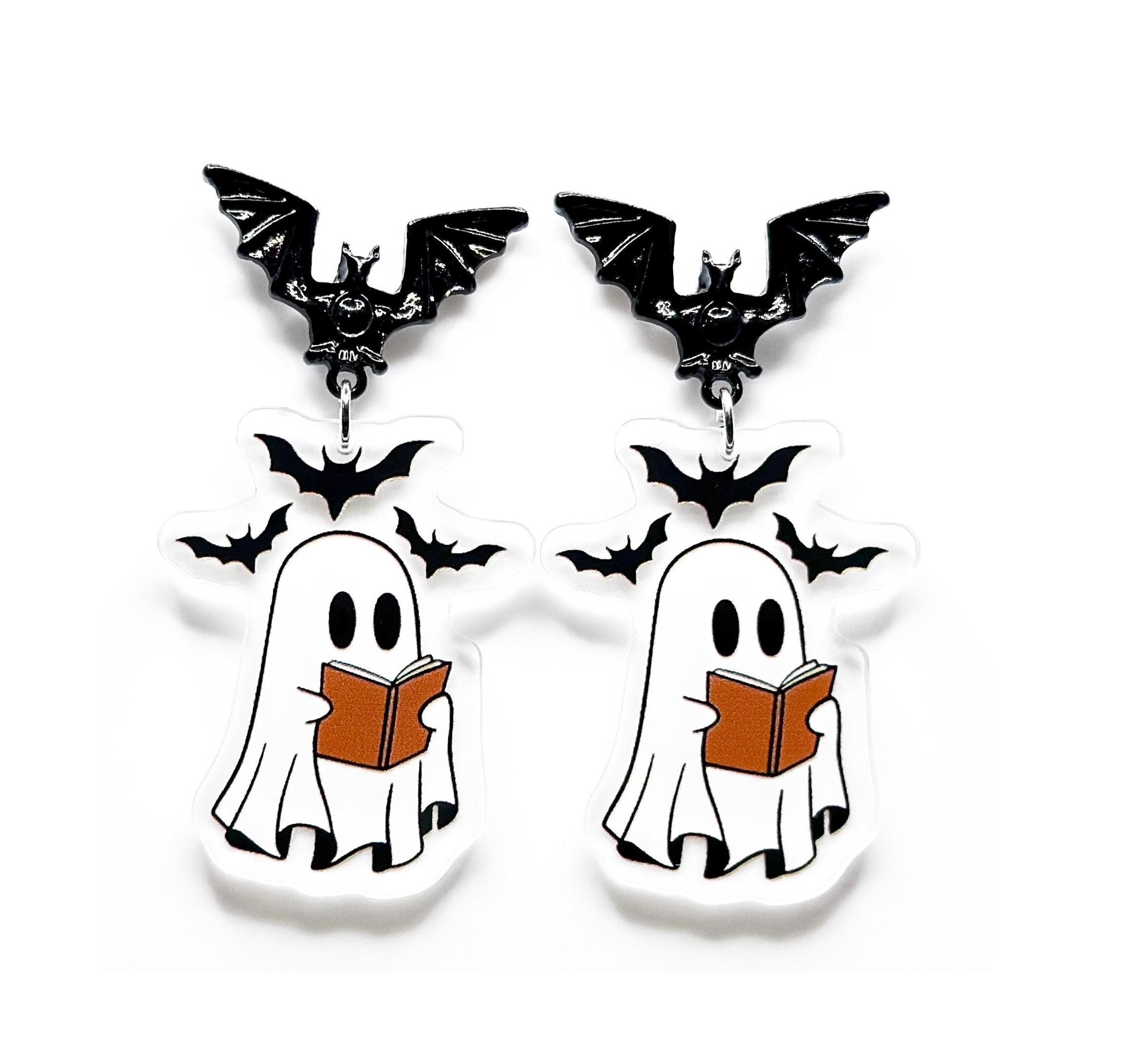 Bookish Ghost Earrings, Spooky Halloween Bat Studs