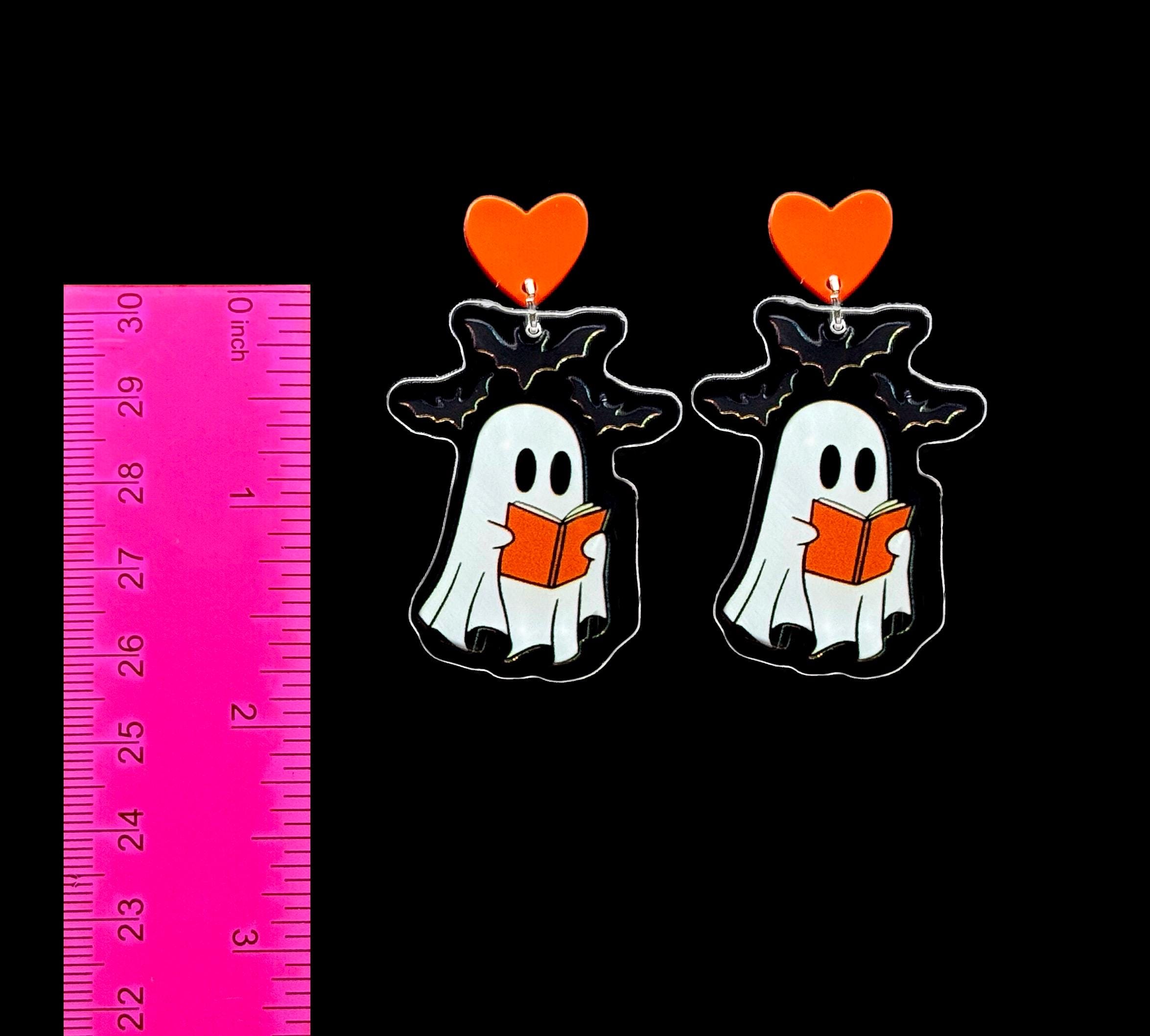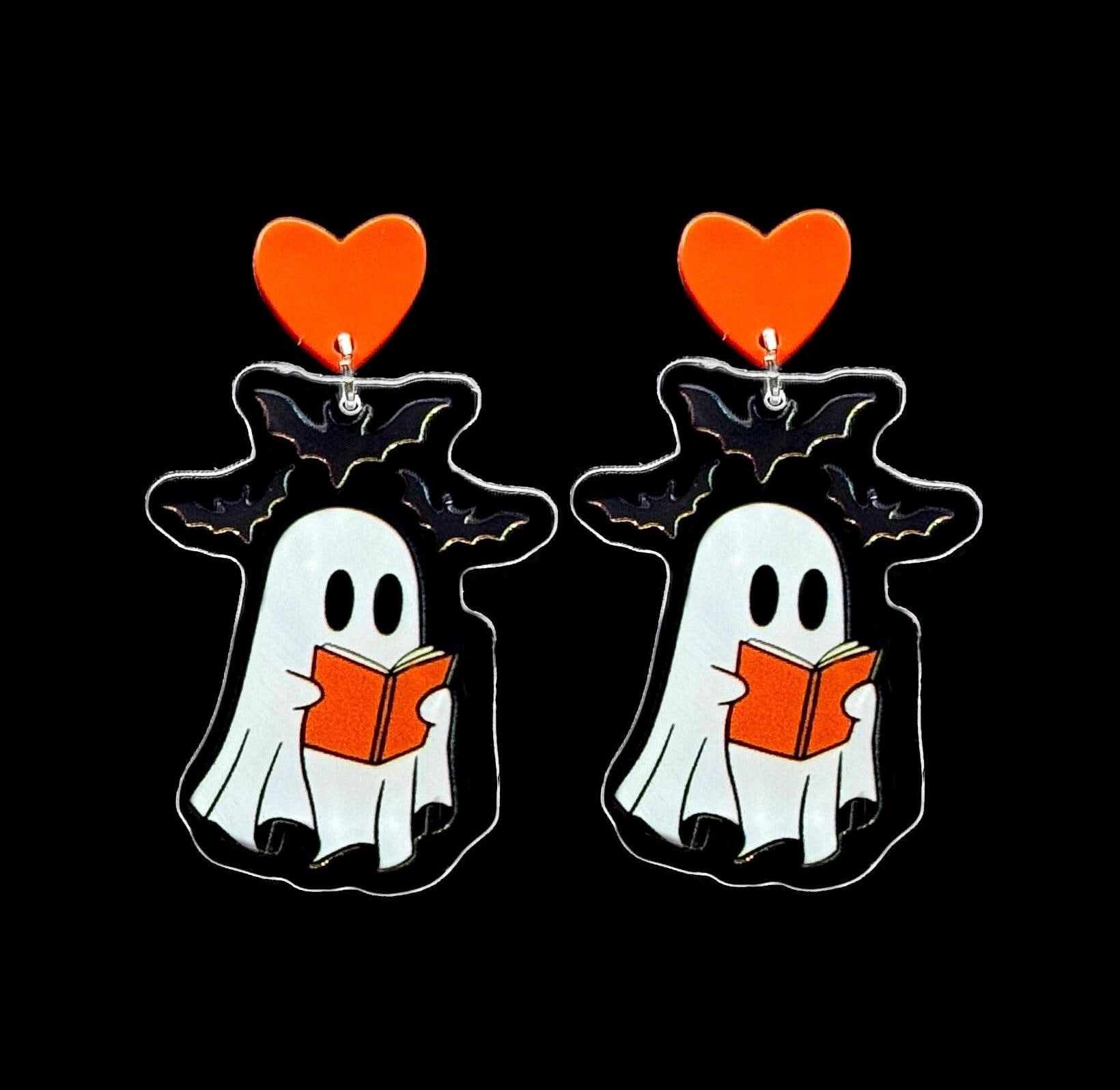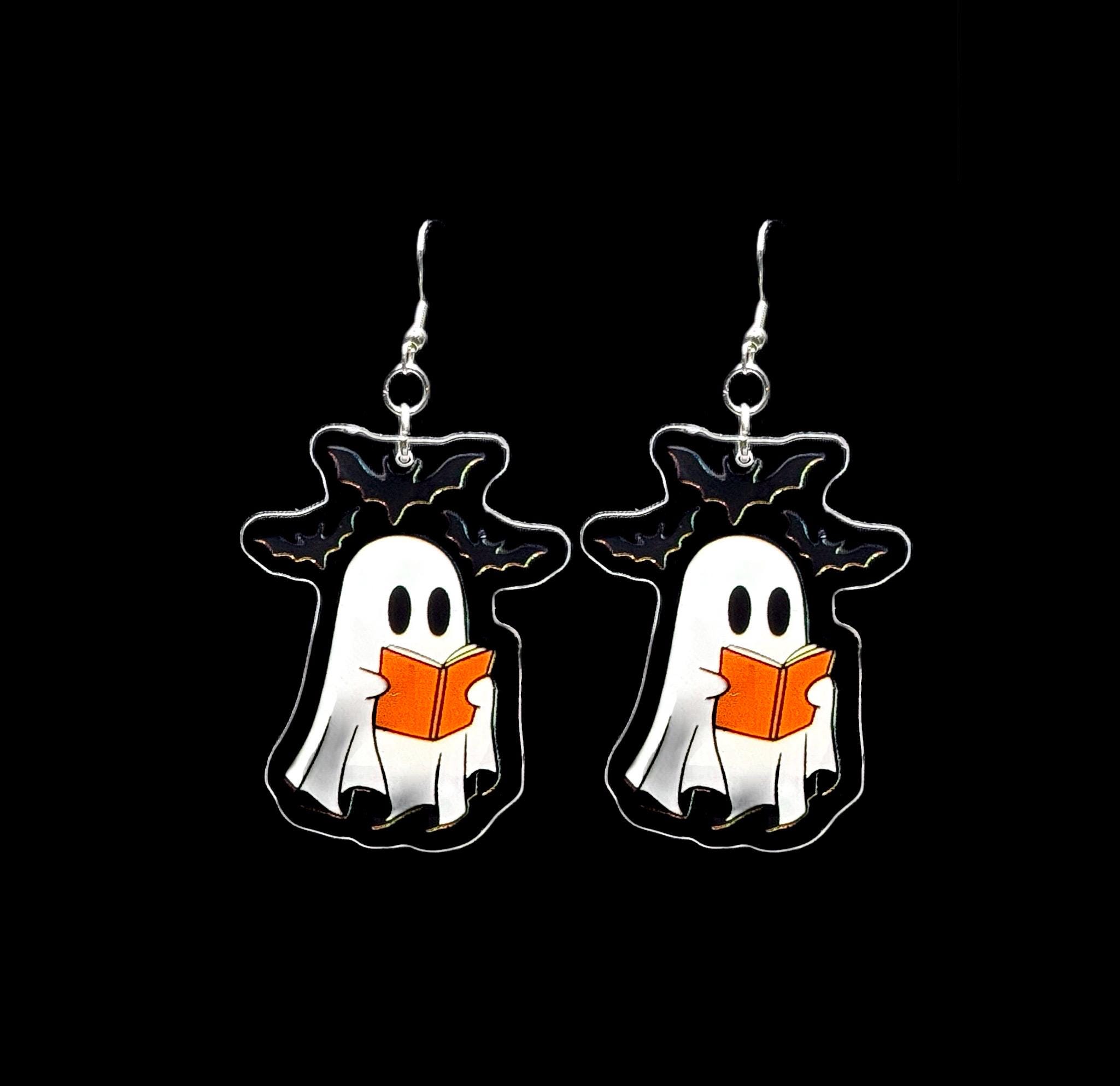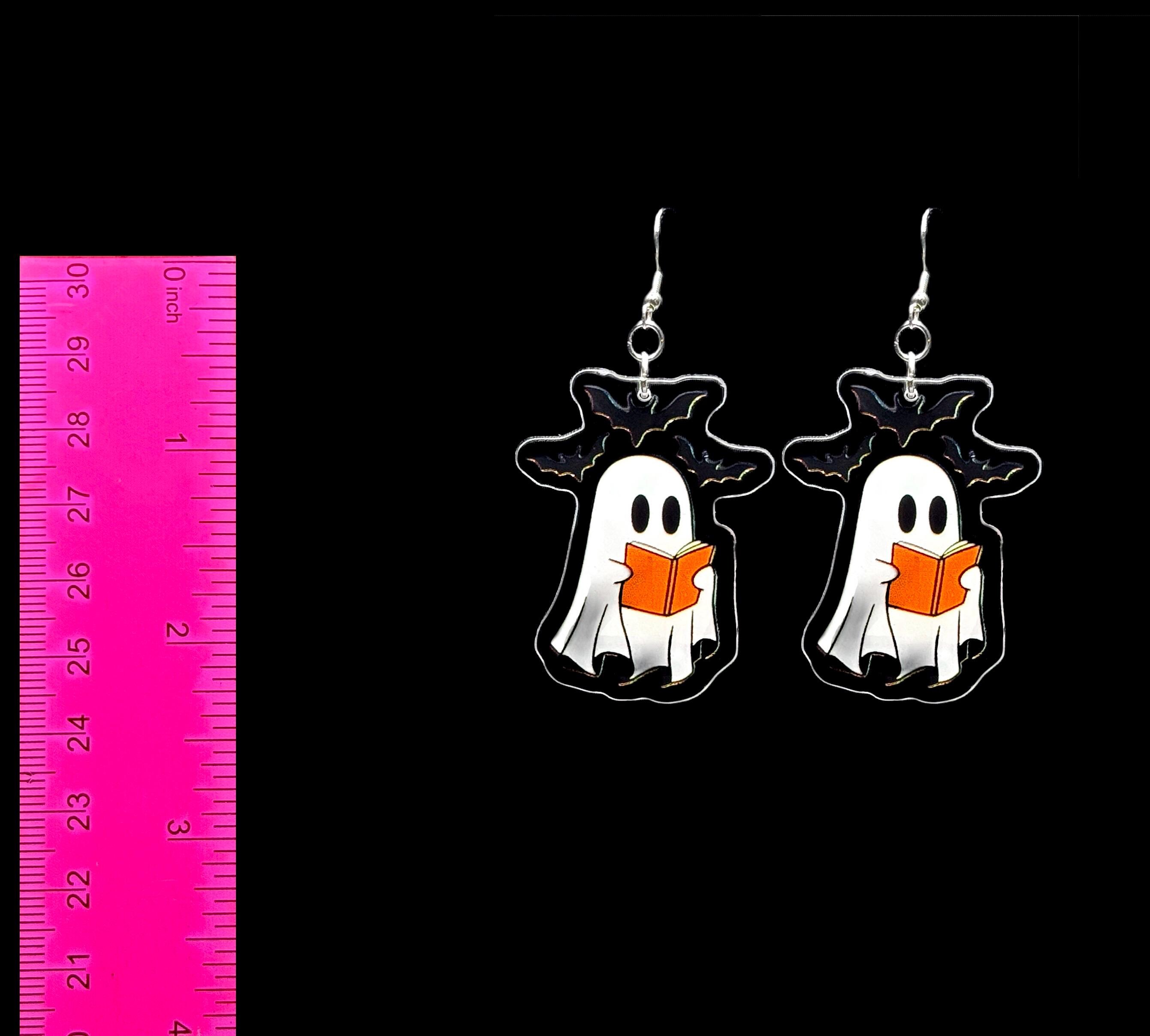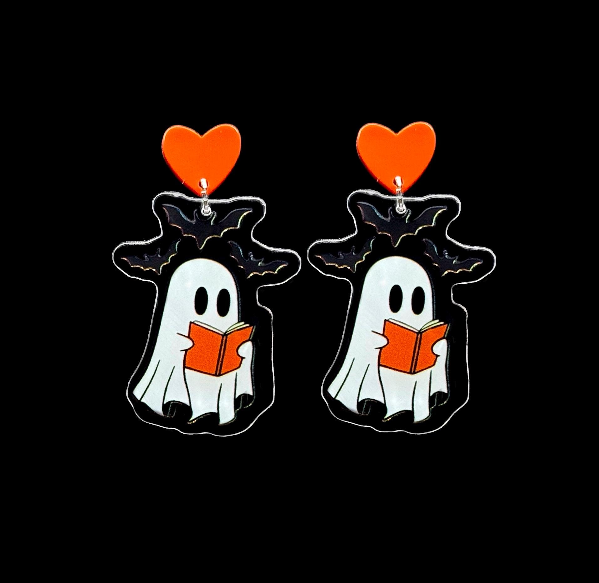 Bookish Ghost Earrings, Spooky Halloween Bat Studs