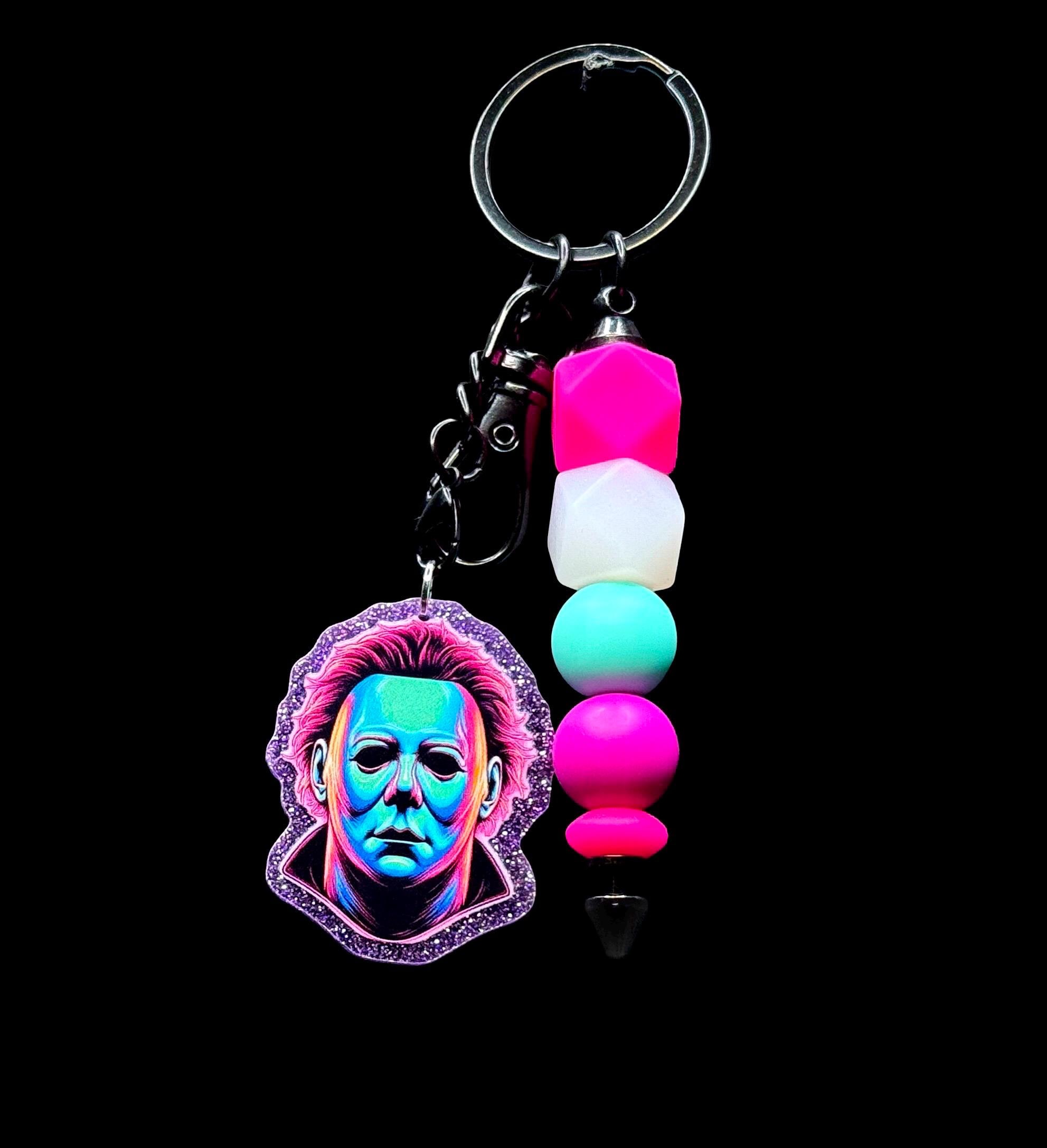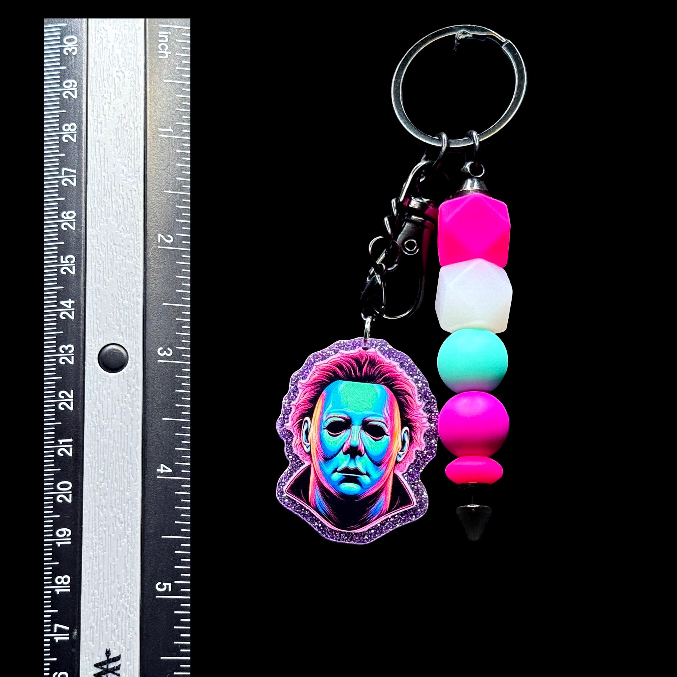 This neon-drenched slasher keychain is giving pure killer energy with a side of synthwave glow. Equal parts spooky and stylish, it’s the perfect charm to creep up your keys or bag.
