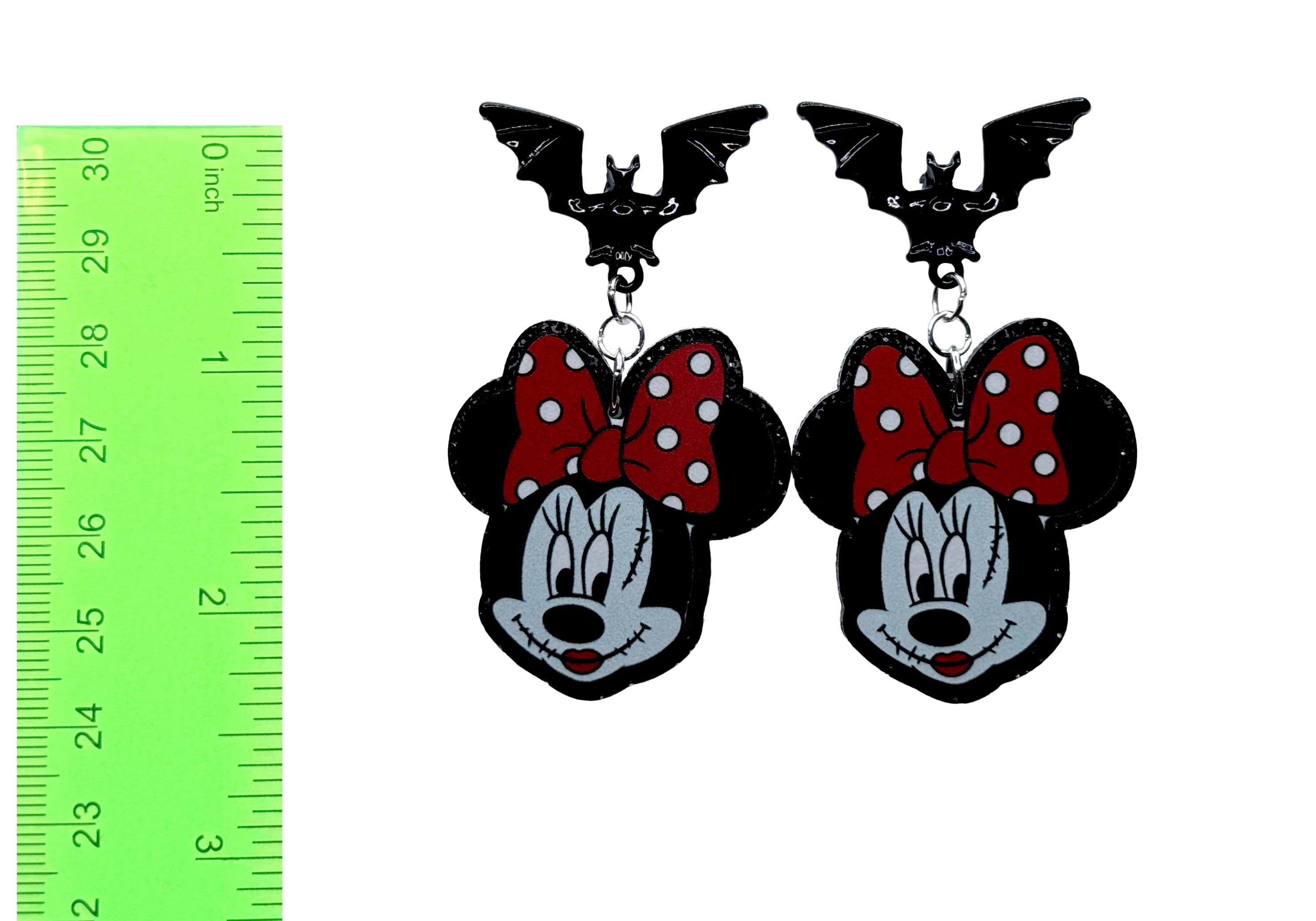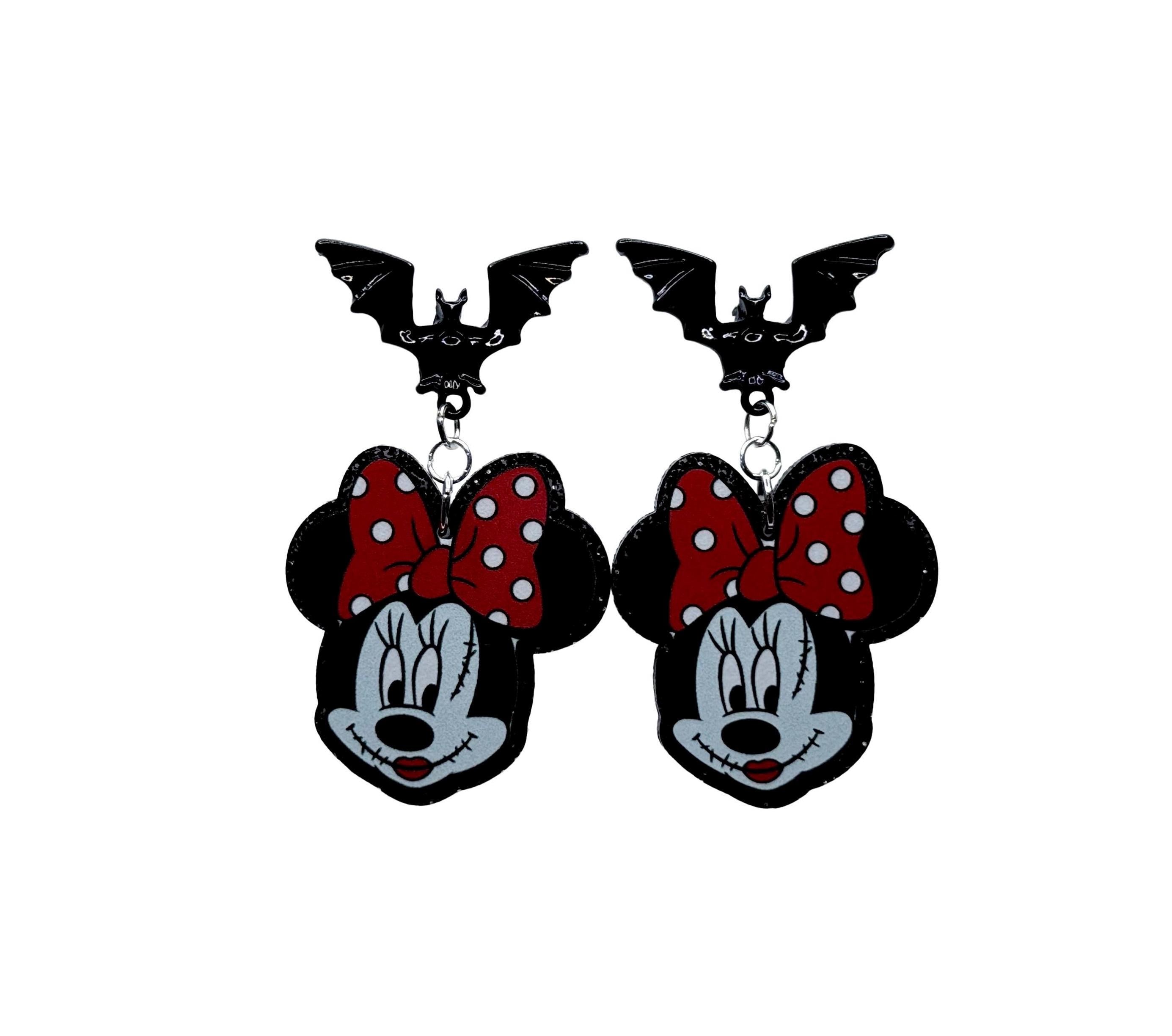 Sweet but a little sinister — these stitched-up cuties mix vintage cartoon charm with a horror-pop twist. Choose between black bat studs or classic hooks to match your mood, whether you’re haunting Main Street or your favorite spooky café.