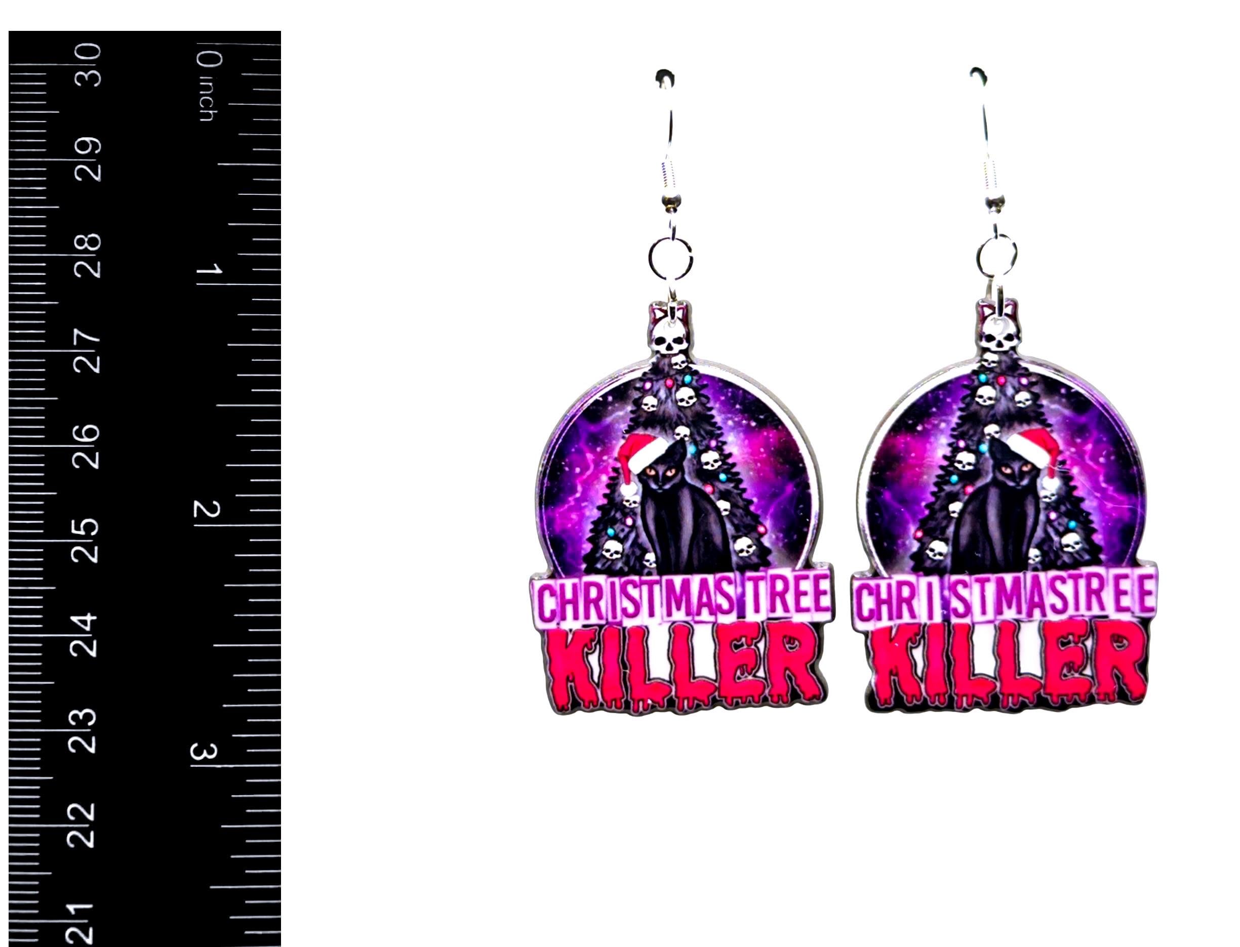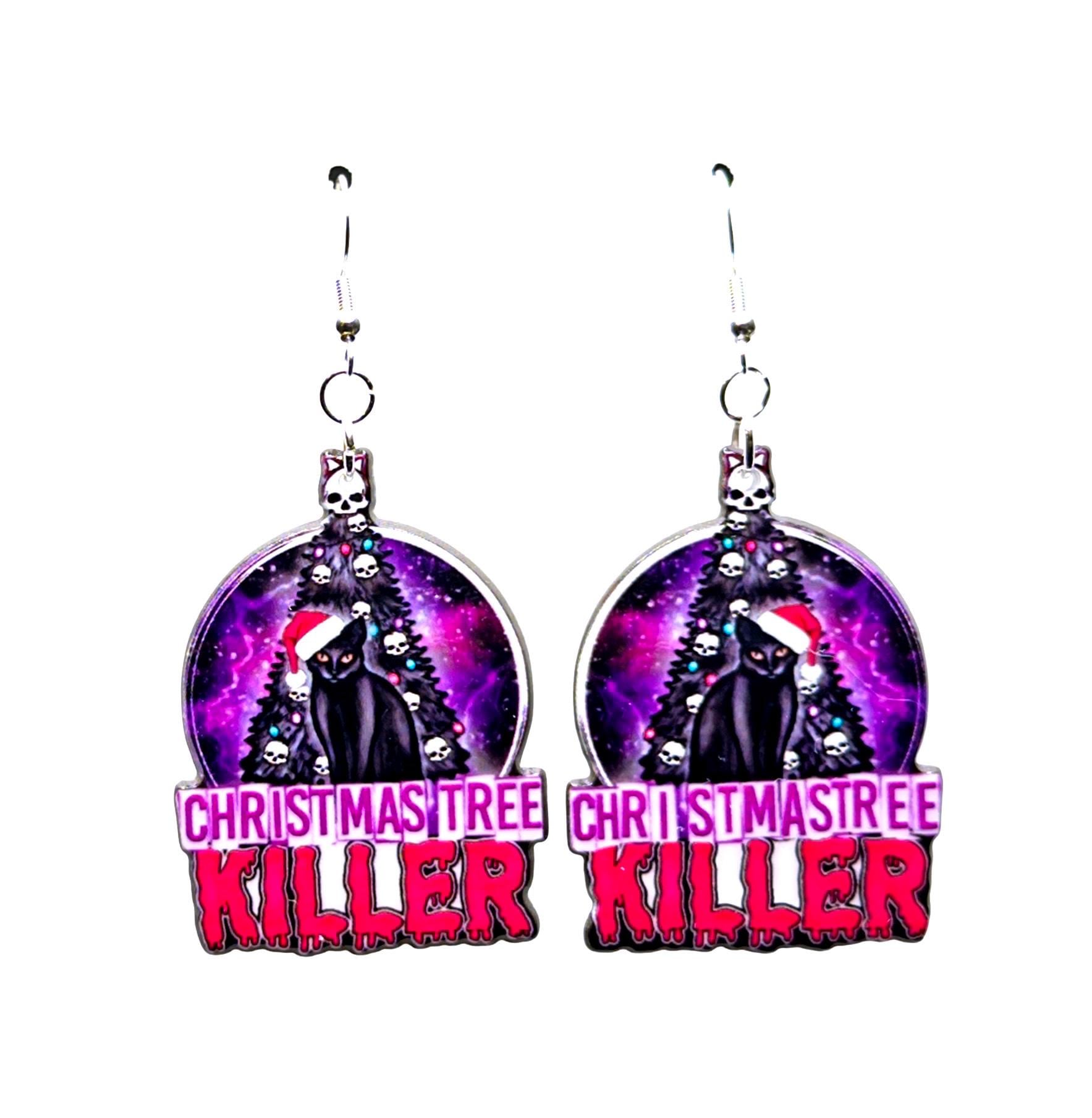 For the spooky souls who deck the halls with skulls instead of tinsel. These wickedly festive earrings feature a black cat guarding their haunted holiday tree — because some of us prefer our Christmas with claws and chaos.
