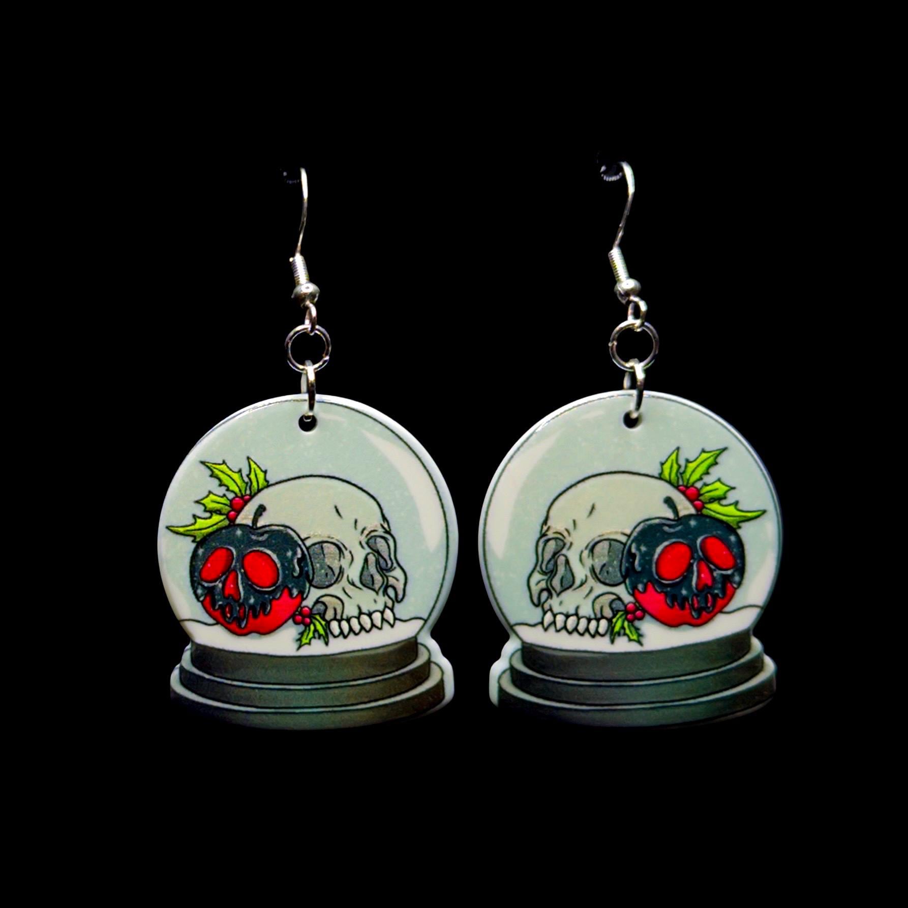 Snow Globe Skull Earrings: Goth Christmas Accessories