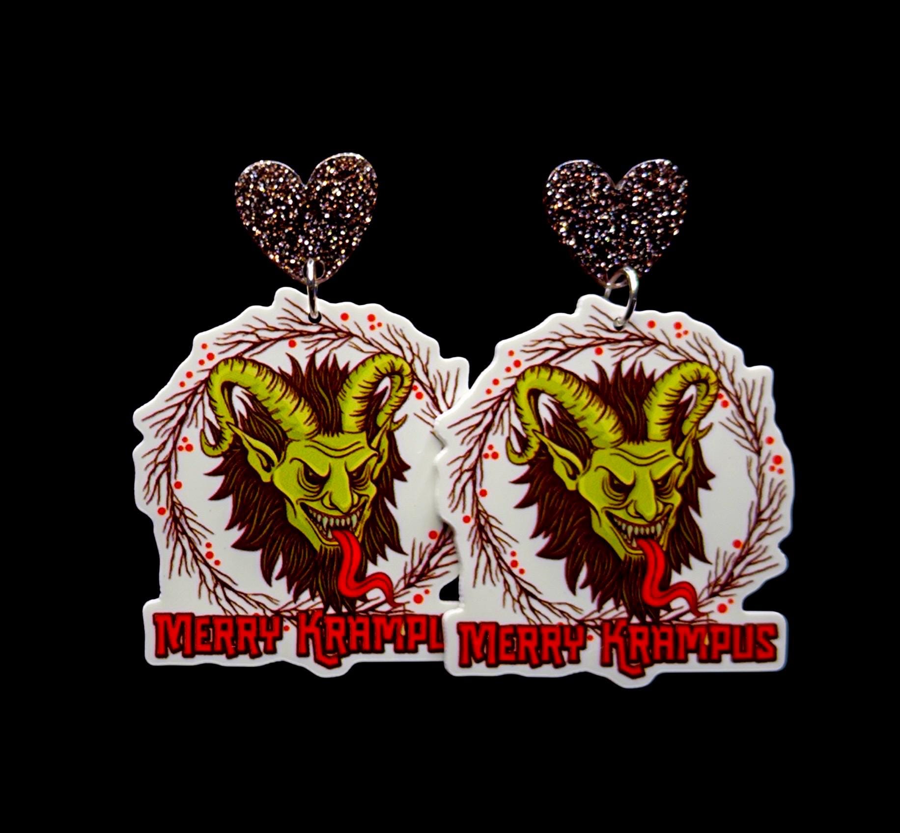 Tired of sugarplum sweetness? Slip into the darker side of Christmas with these devilishly fun “Merry Krampus” earrings. A little naughty, a little nice, and a whole lot of creepy holiday spirit.
