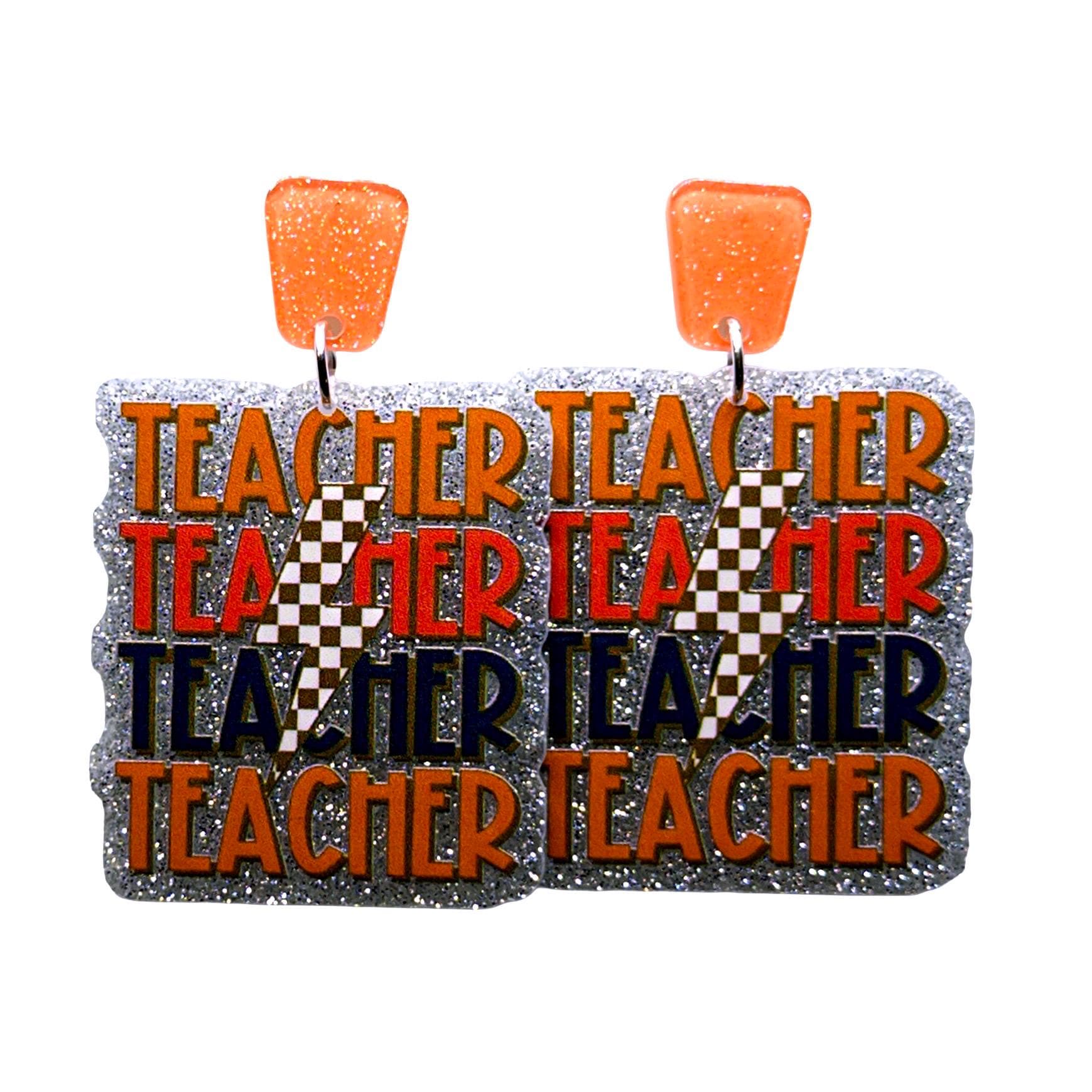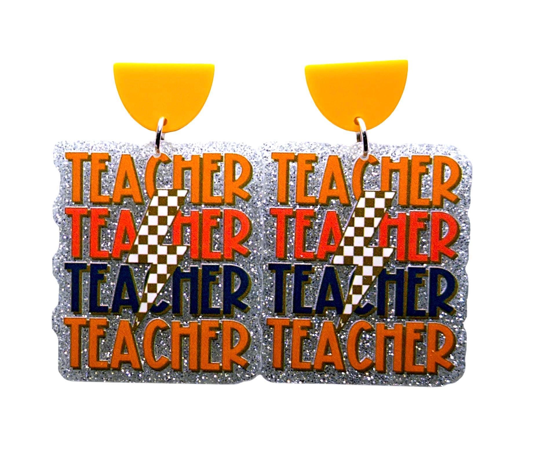 For the educators who bring all the power, passion, and personality to the classroom — these lightning-charged statement earrings are pure teacher rockstar energy! With layers of sparkle and a bold retro palette, they’re here to make lesson plans look legendary.