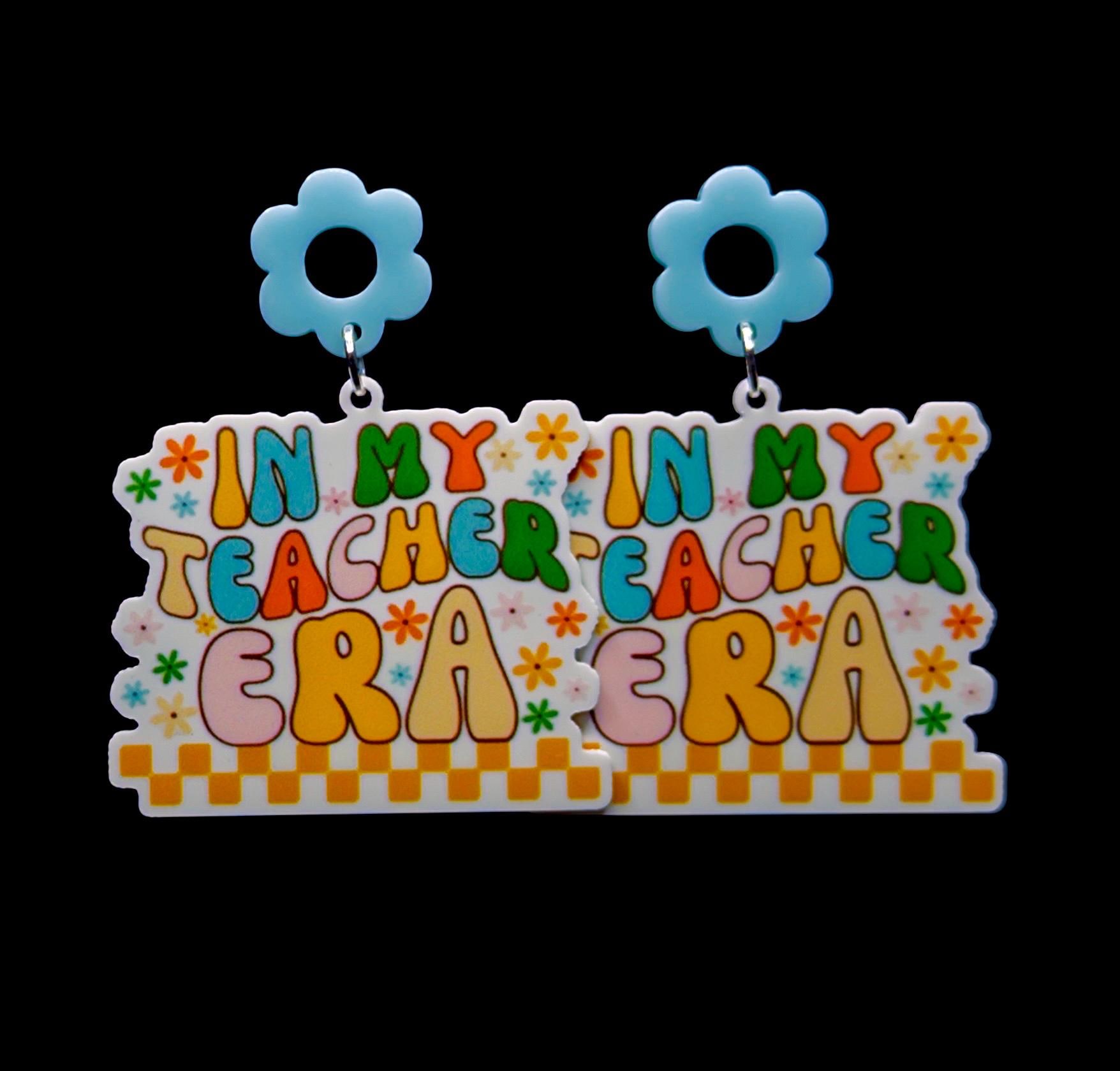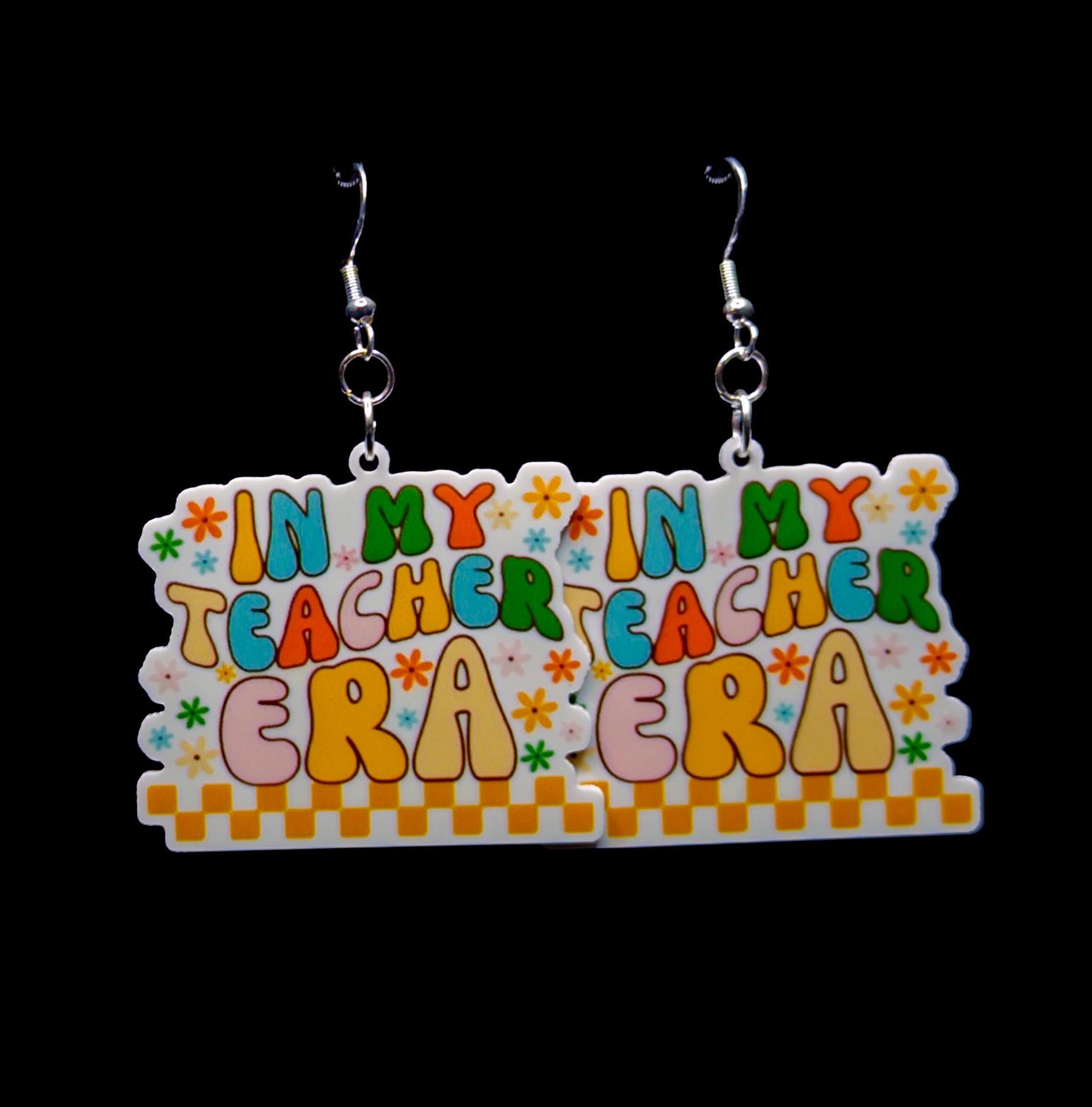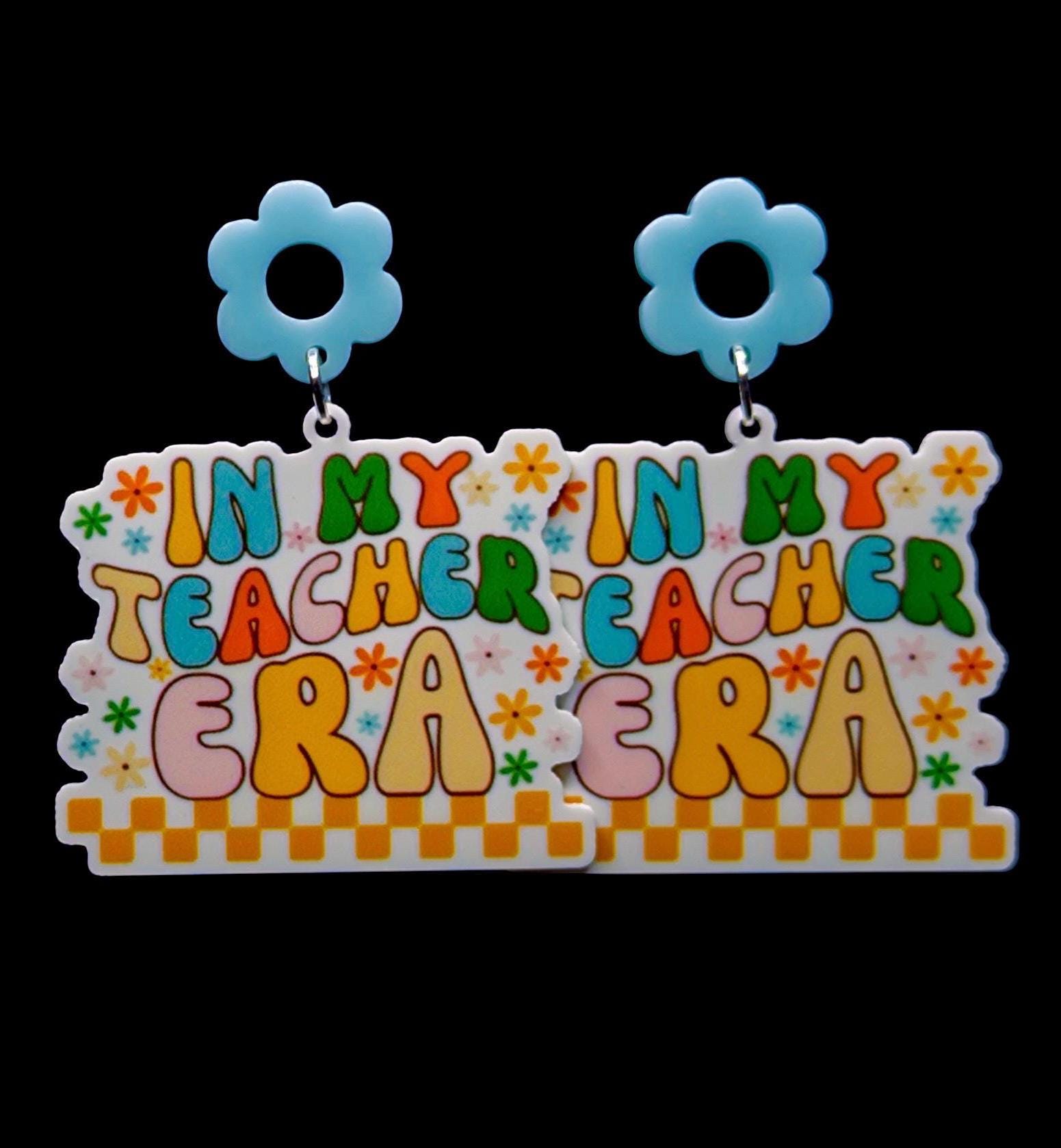 Bright, bubbly, and giving main-character energy! These groovy “In My Teacher Era” earrings bring a splash of color to every lesson plan. Perfect for teachers who love a bit of retro flair and classroom charm.