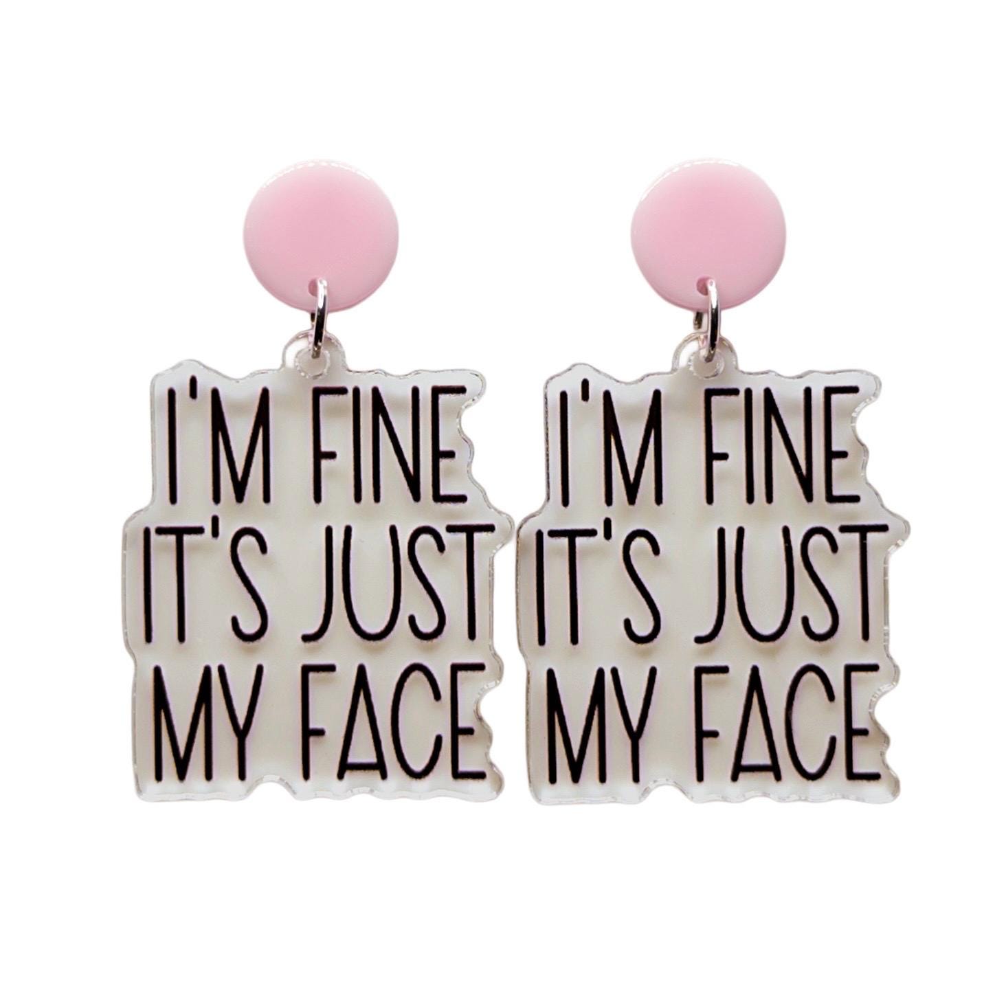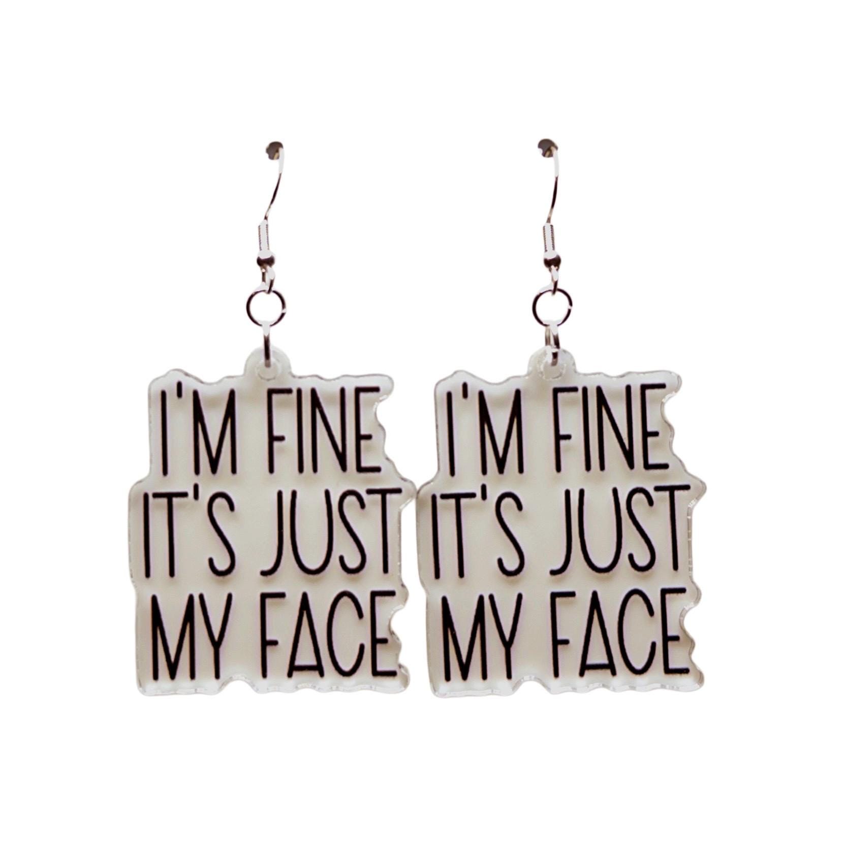 Serving sarcasm with a side of truth. These “I’m Fine, It’s Just My Face” earrings are your official mood for Mondays, family gatherings, or literally anytime someone tells you to “smile more.”