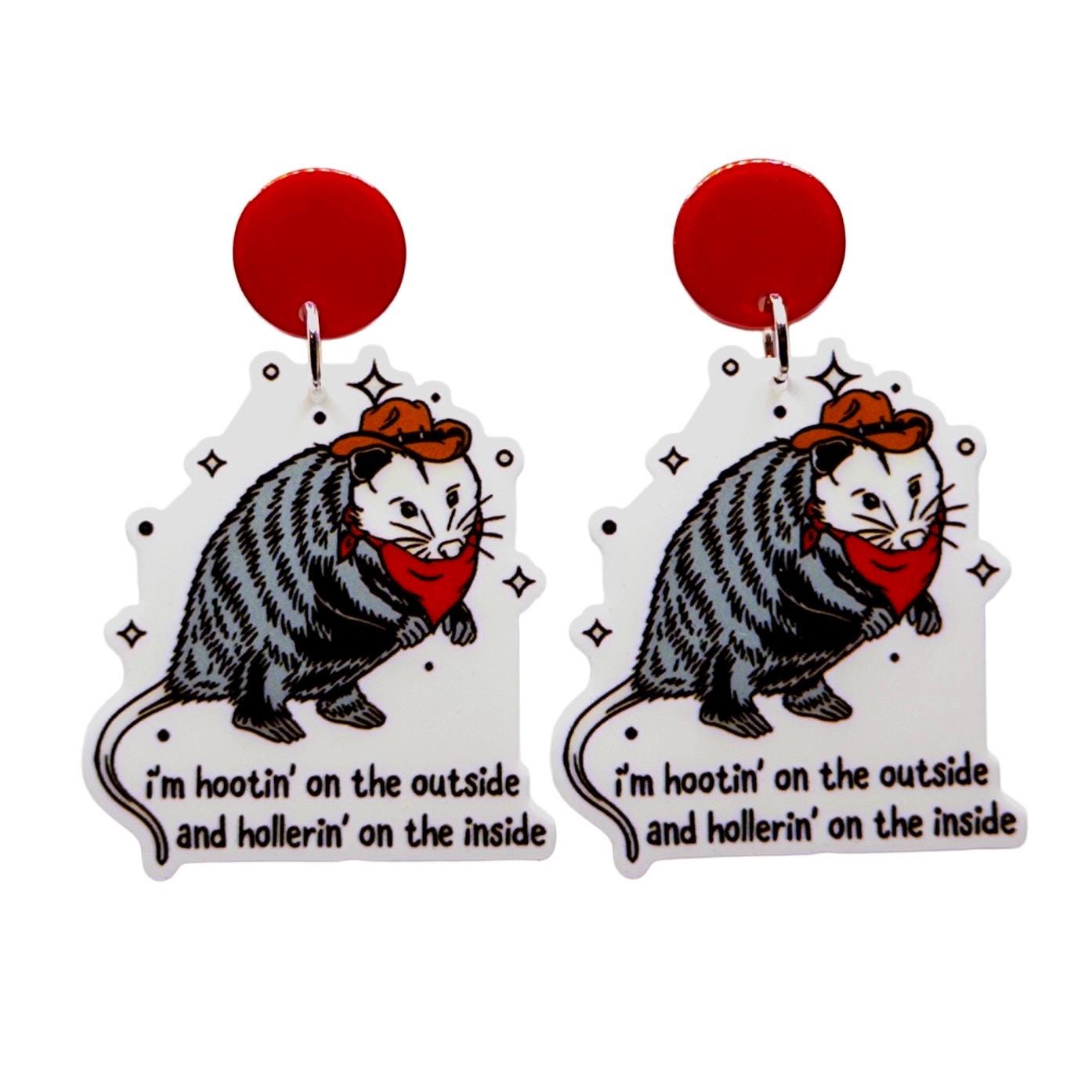 For the cowpoke who’s barely holdin’ it together but still showin’ up lookin’ cute. These little opossum buddies get it — hootin’ on the outside, hollerin’ on the inside.