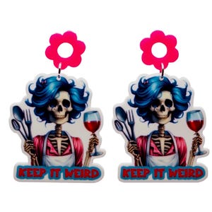 Spooky Summer Acrylic Earrings, Goth Skeleton Beach Vibe