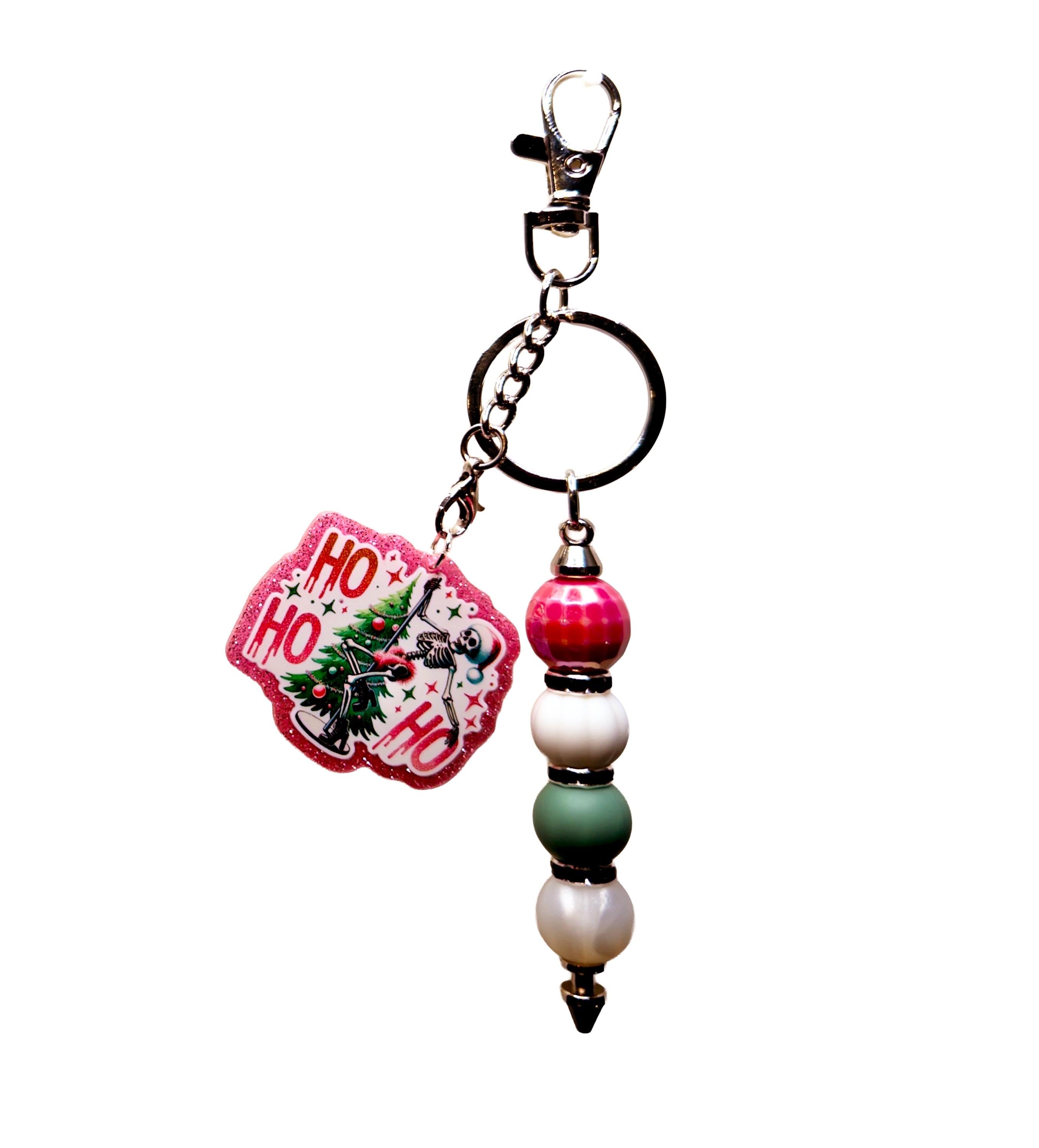 Jingle all the way to the dark side of Christmas! This festive skeleton is ready to deck your keys, bags, or stocking stuffers with a dose of creepy cheer.