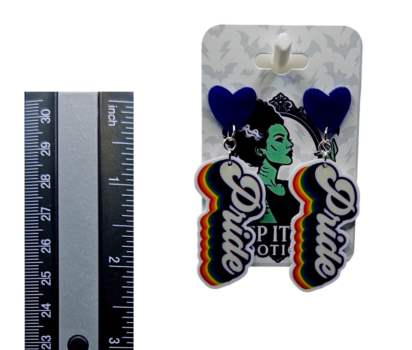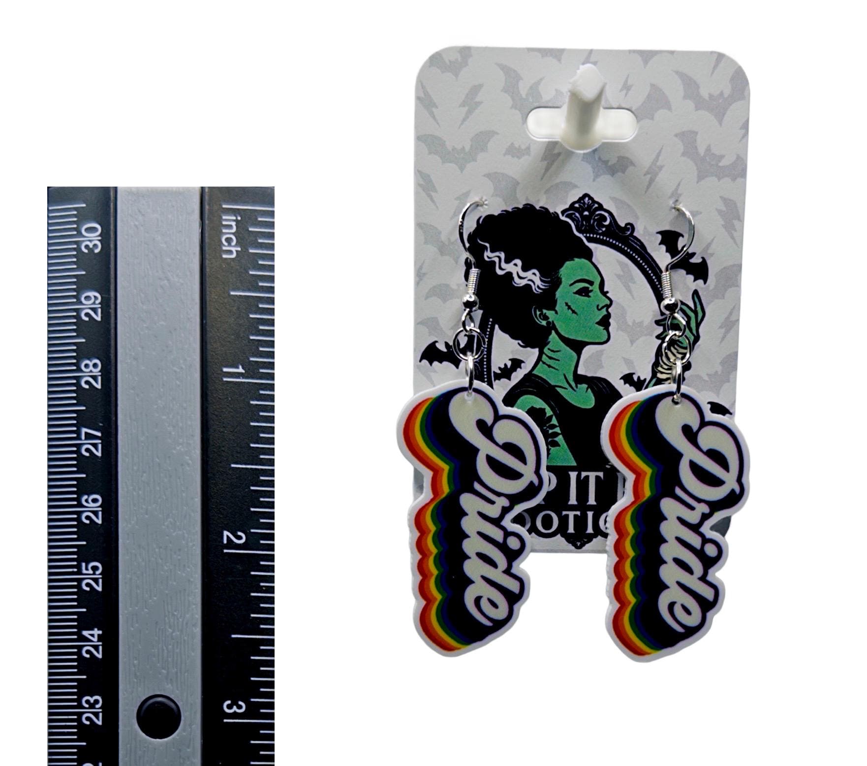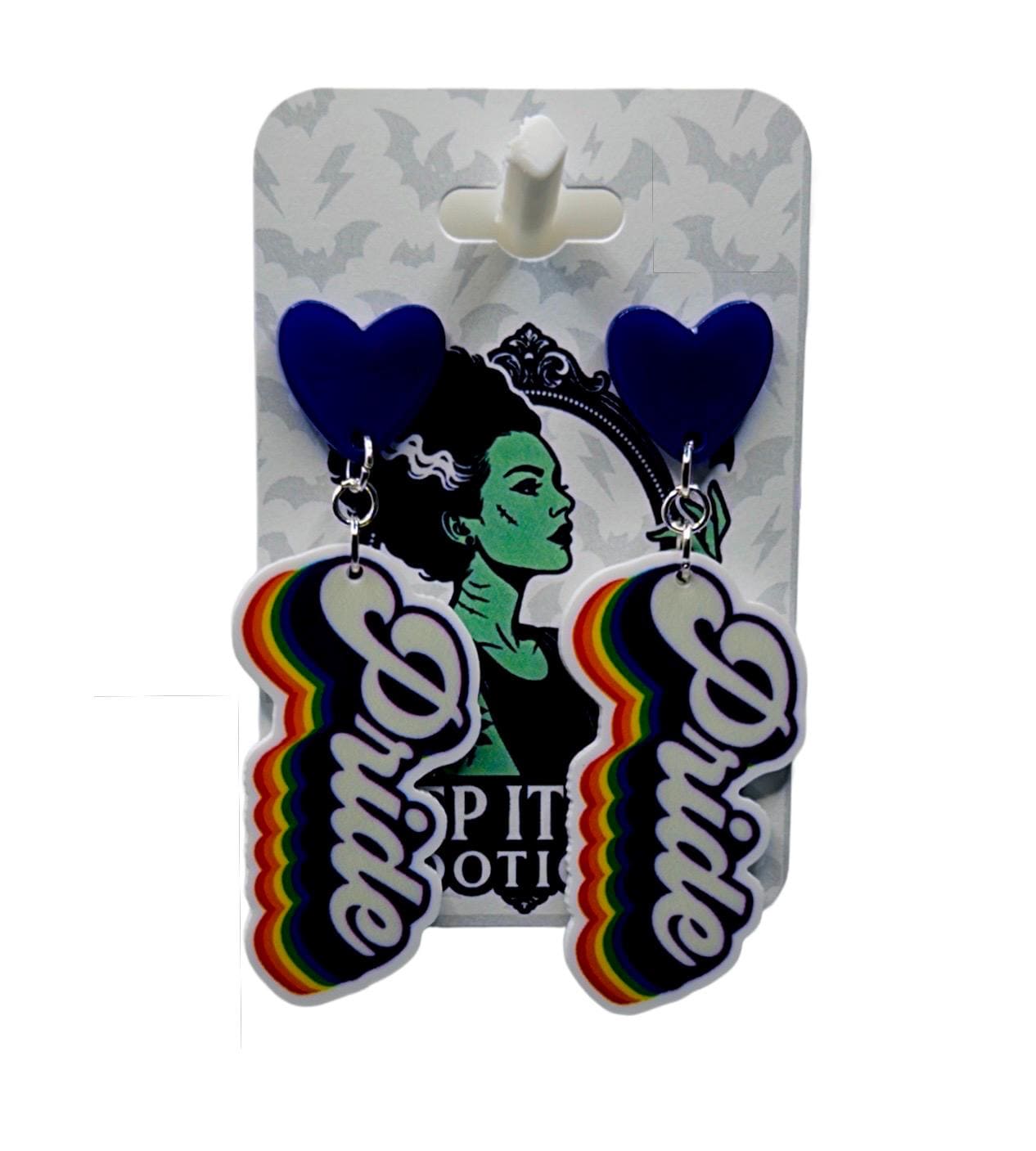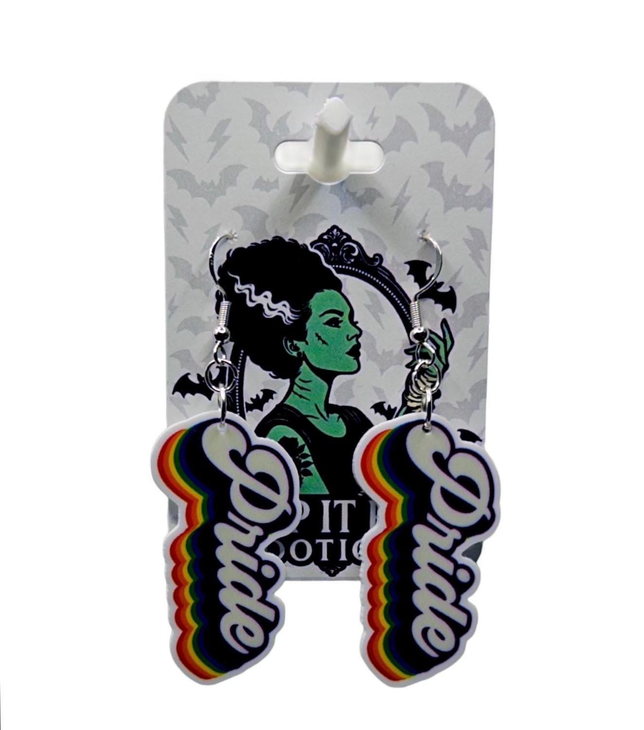 A bold little reminder you can wear loud and proud. These rainbow-edged script drops bring big feel-good energy with a playful pop of color that hits just right—perfect for everyday wear or when you want your accessories to say it for you.