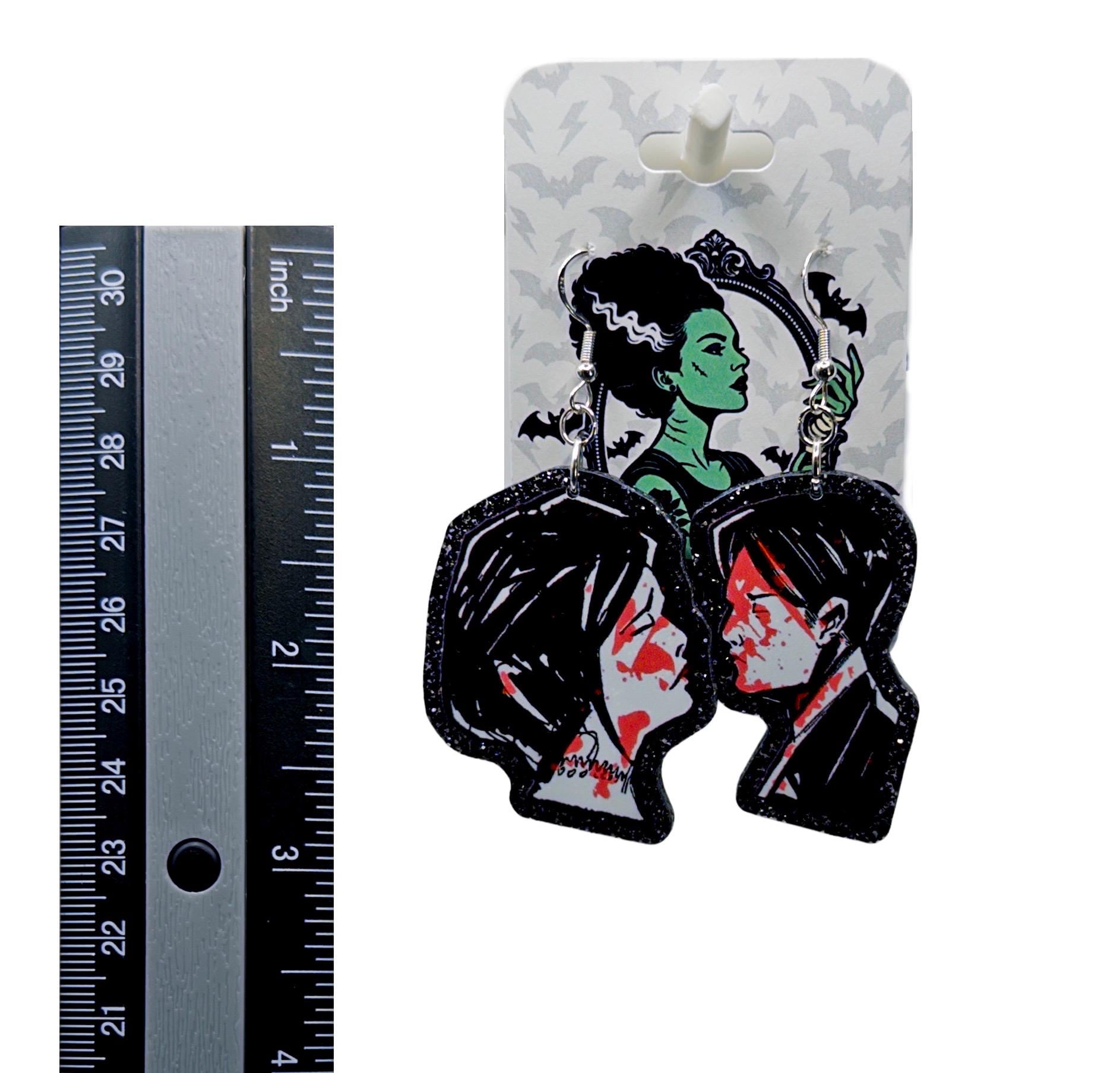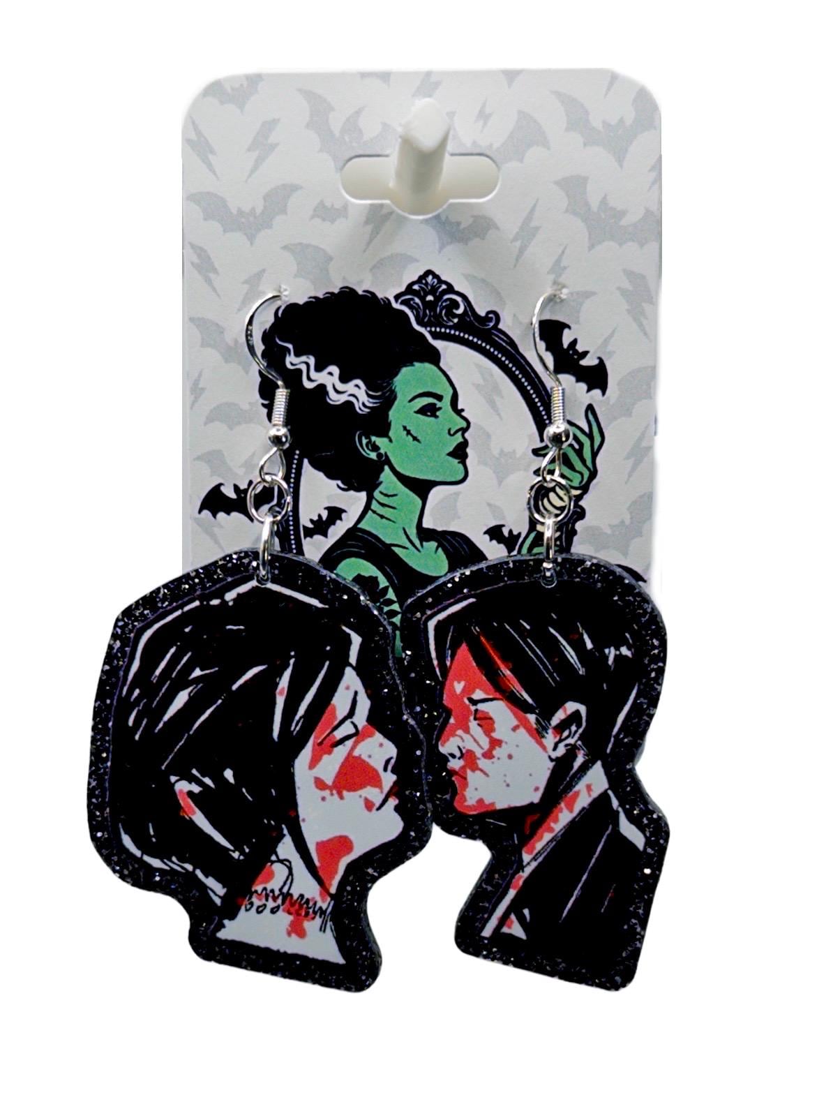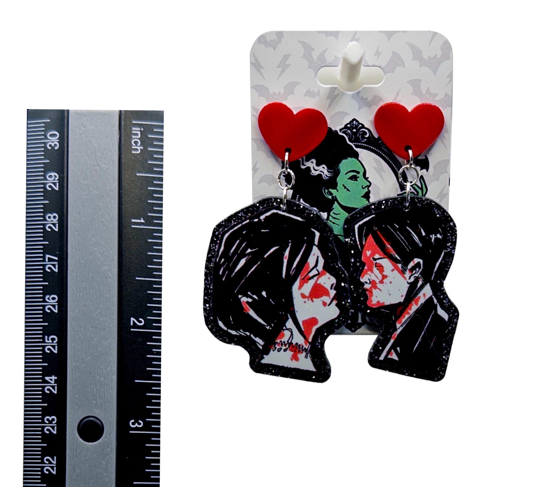 A little dark, a little romantic, and absolutely unapologetic. These statement earrings lean into dramatic love energy with a bold illustrated vibe that feels straight out of a midnight movie scene. Made to turn heads, spark conversation, and live rent-free in your favorite outfit rotation.