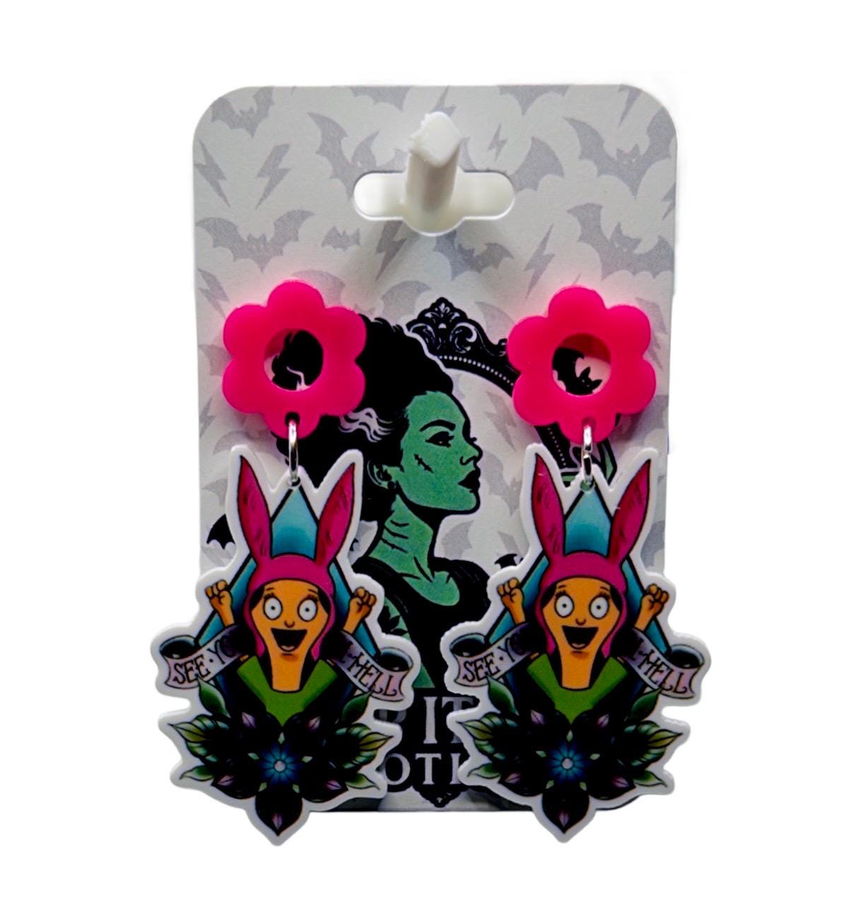 Pure chaotic good energy for fans of animated burger joints, loud laughs, and unapologetic weirdness. These earrings bring bold color, expressive attitude, and a wink to a certain pink-eared icon without ever spelling it out. Perfect for animation lovers, alt babes, and anyone who thrives on controlled chaos.