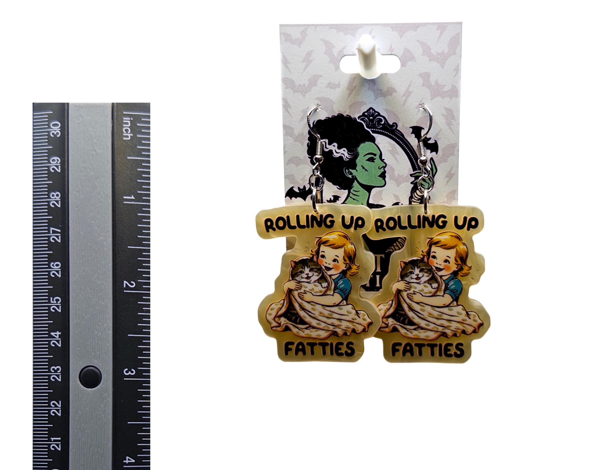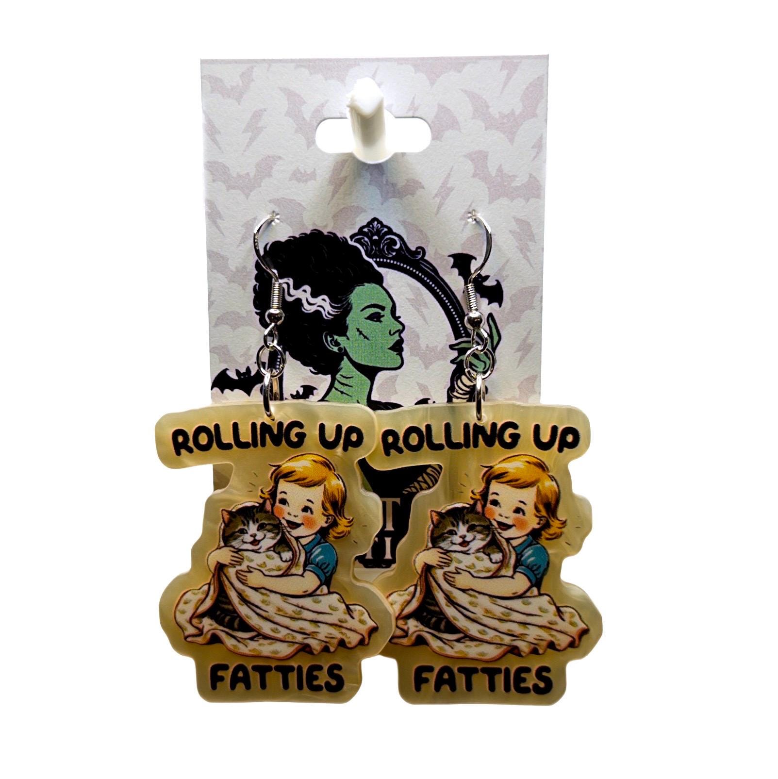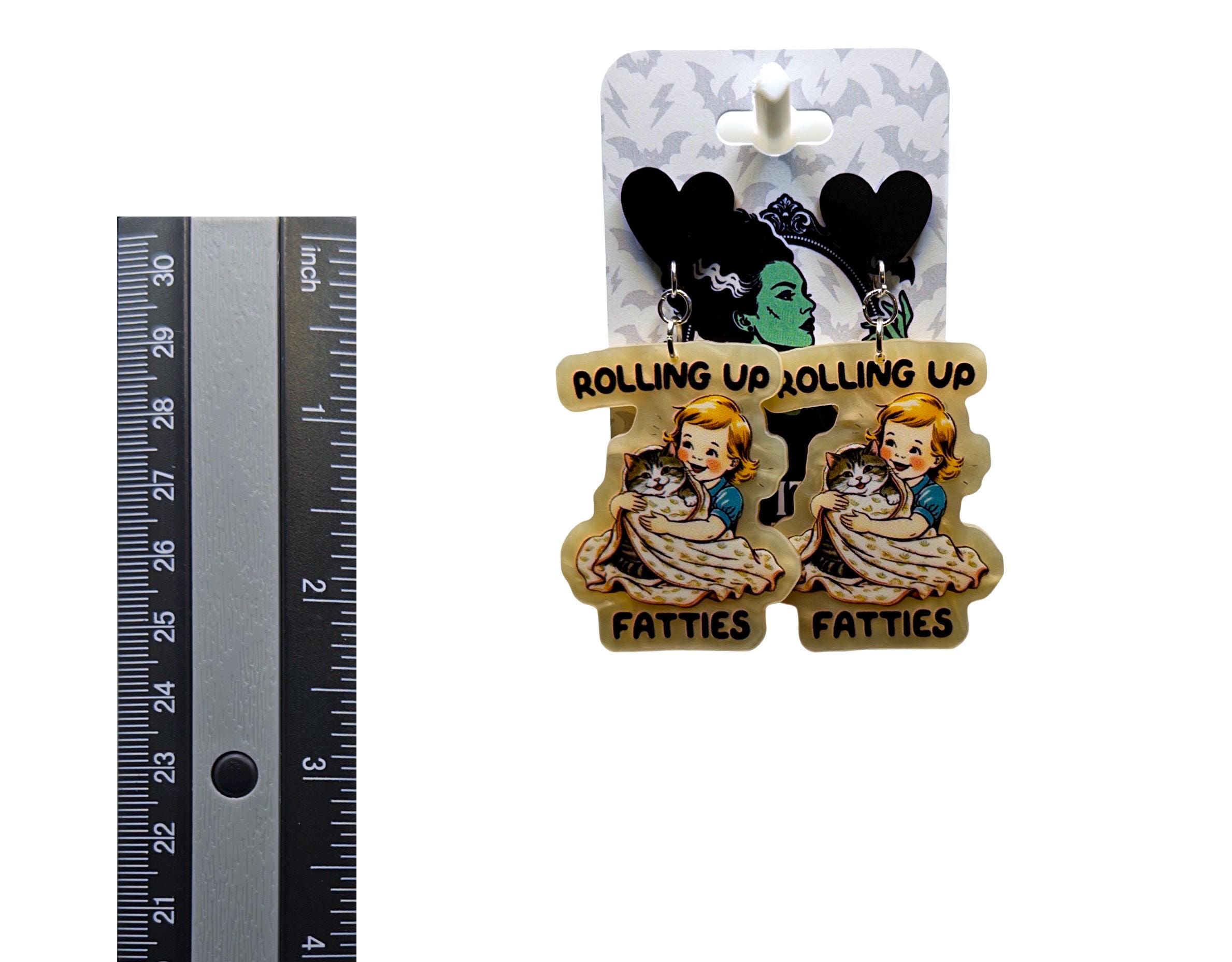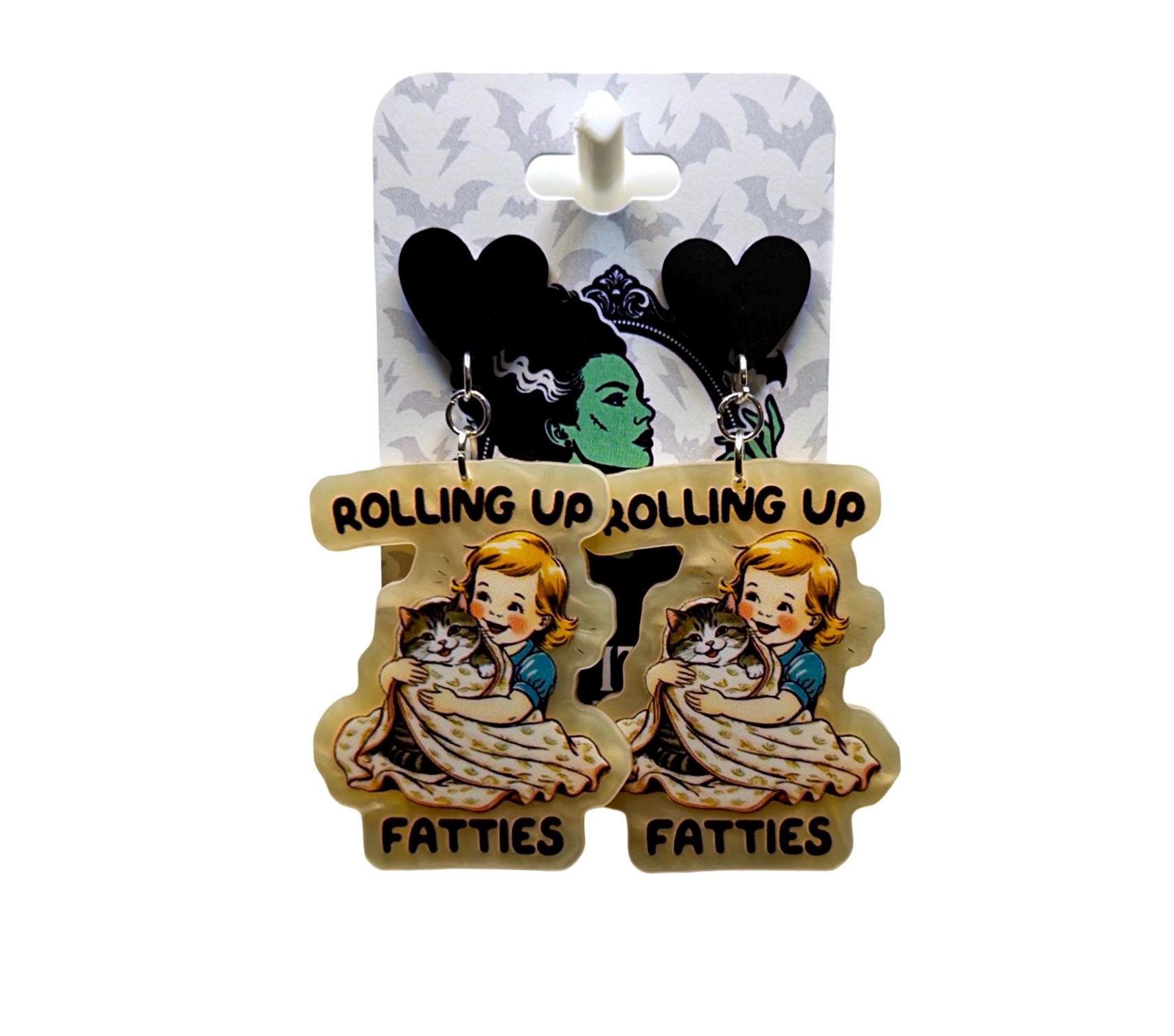 These retro-inspired statement earrings take a classic vintage illustration and flip it into something playful and a little rebellious. Featuring a cozy child-and-cat design paired with bold lettering, they’re perfect for those who love mixing cute aesthetics with humor and attitude.