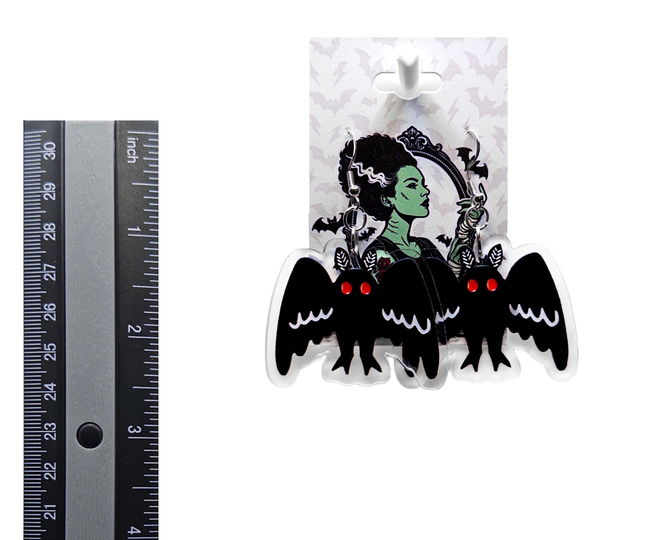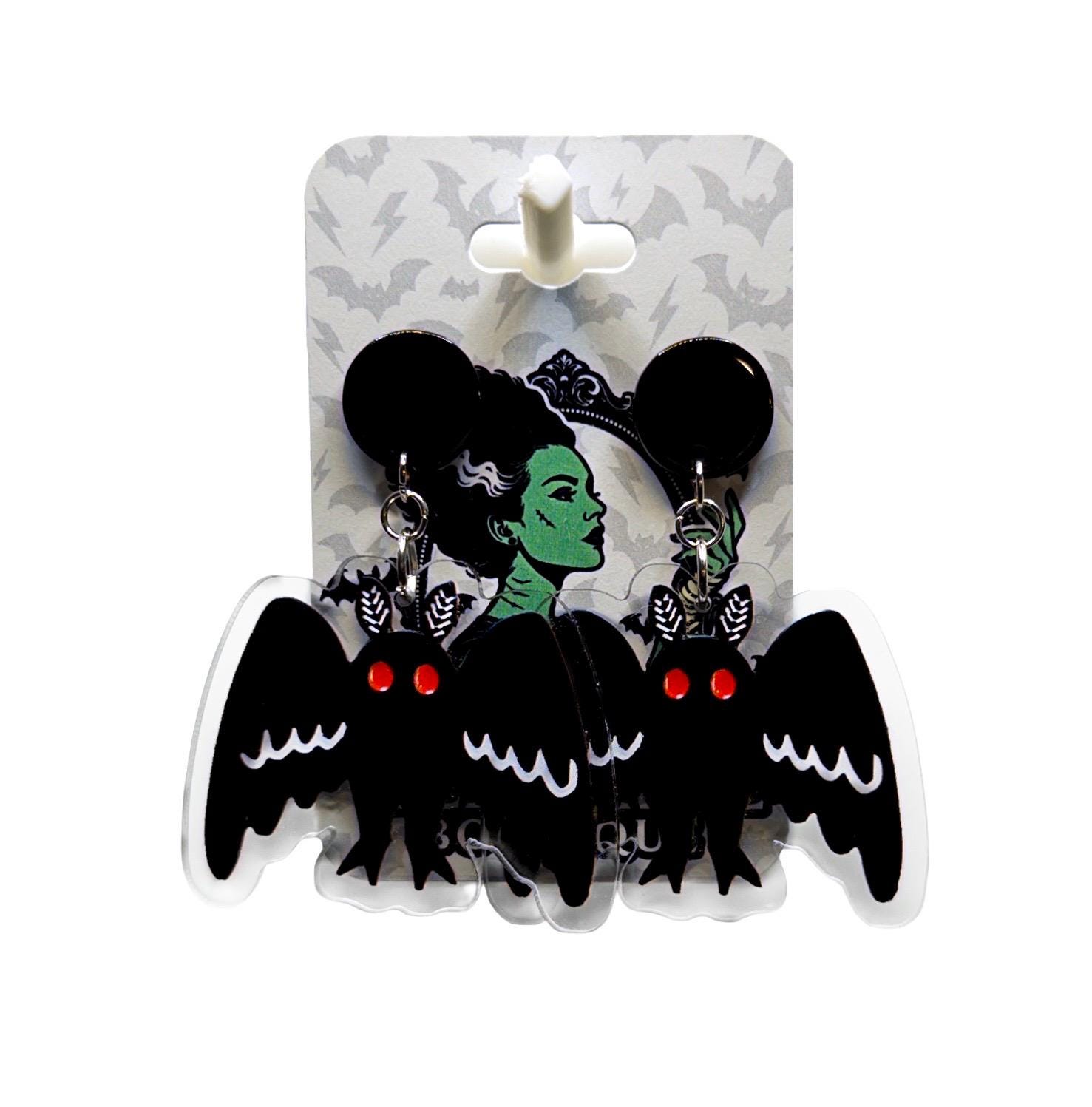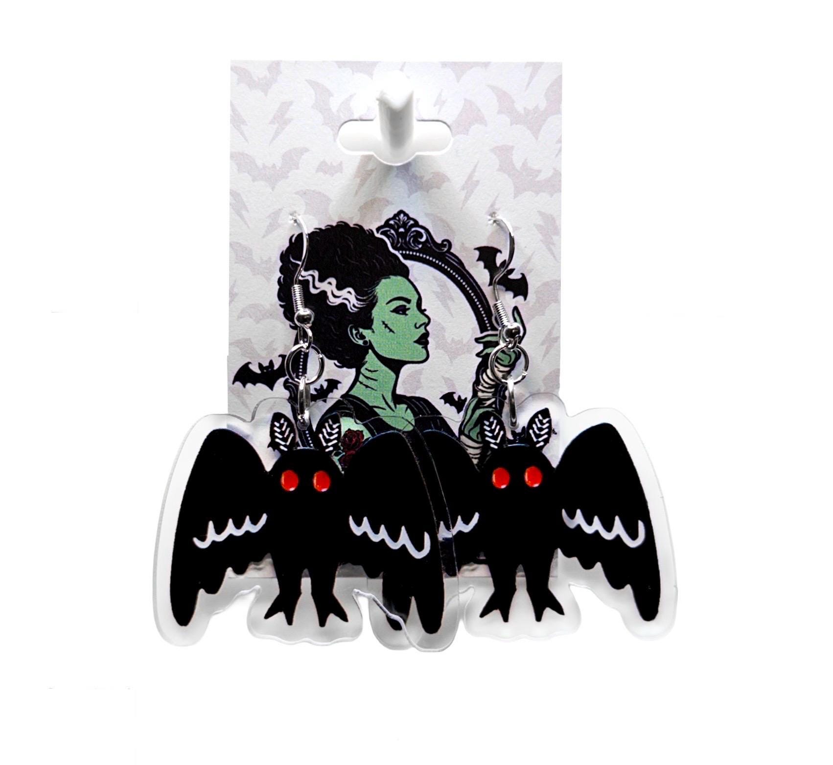 These eerie statement earrings feature bold black winged creatures with glowing red eyes, giving major gothic meets playful Halloween energy. Whether you choose classic black studs or simple hooks, these are the perfect finishing touch for your spooky season (or year-round creepy vibe).