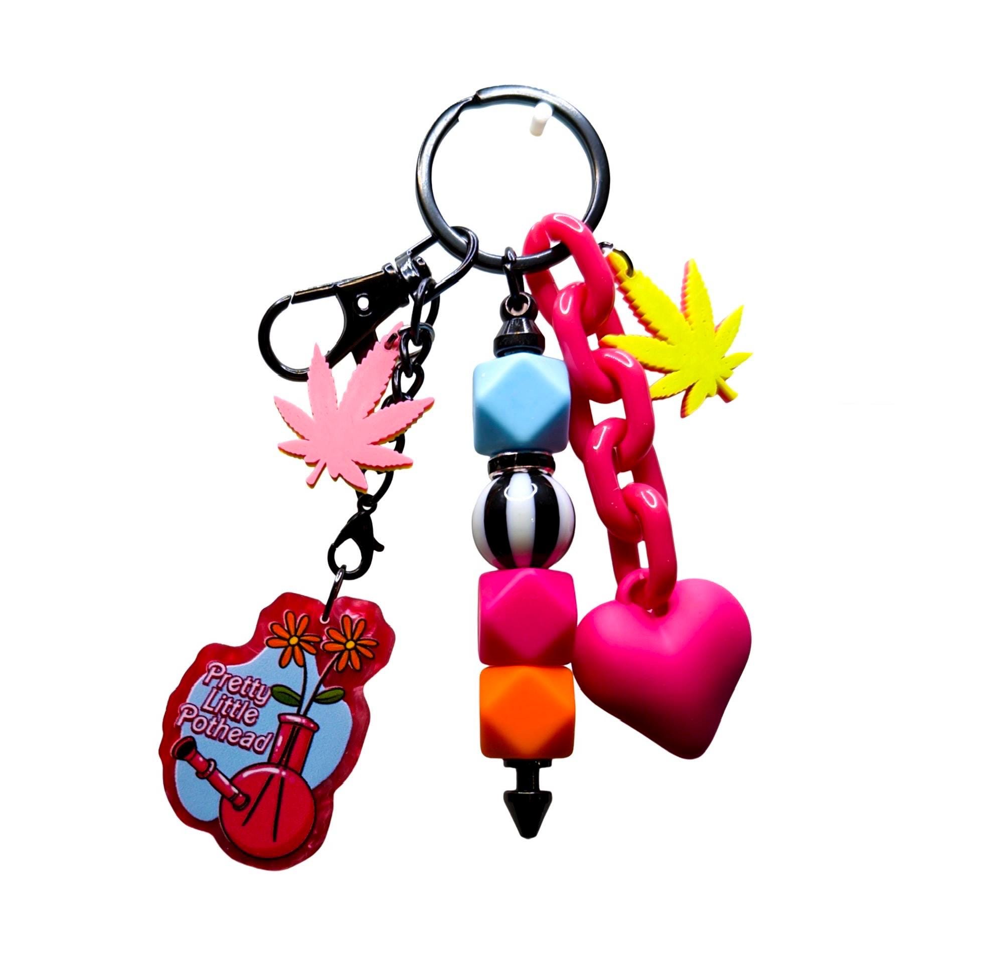 Girly Pothead Bag Charm, Stoner Keychain, Funny Keychains