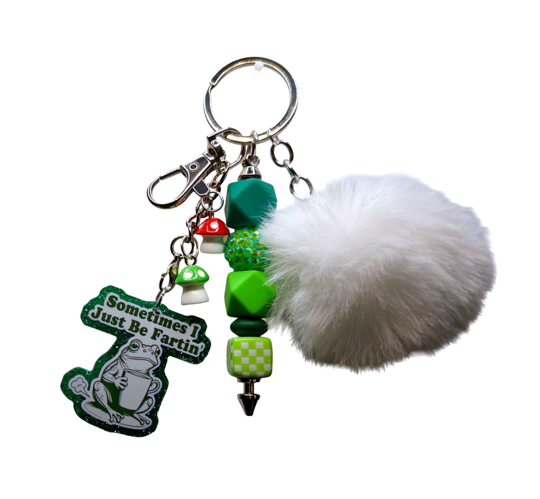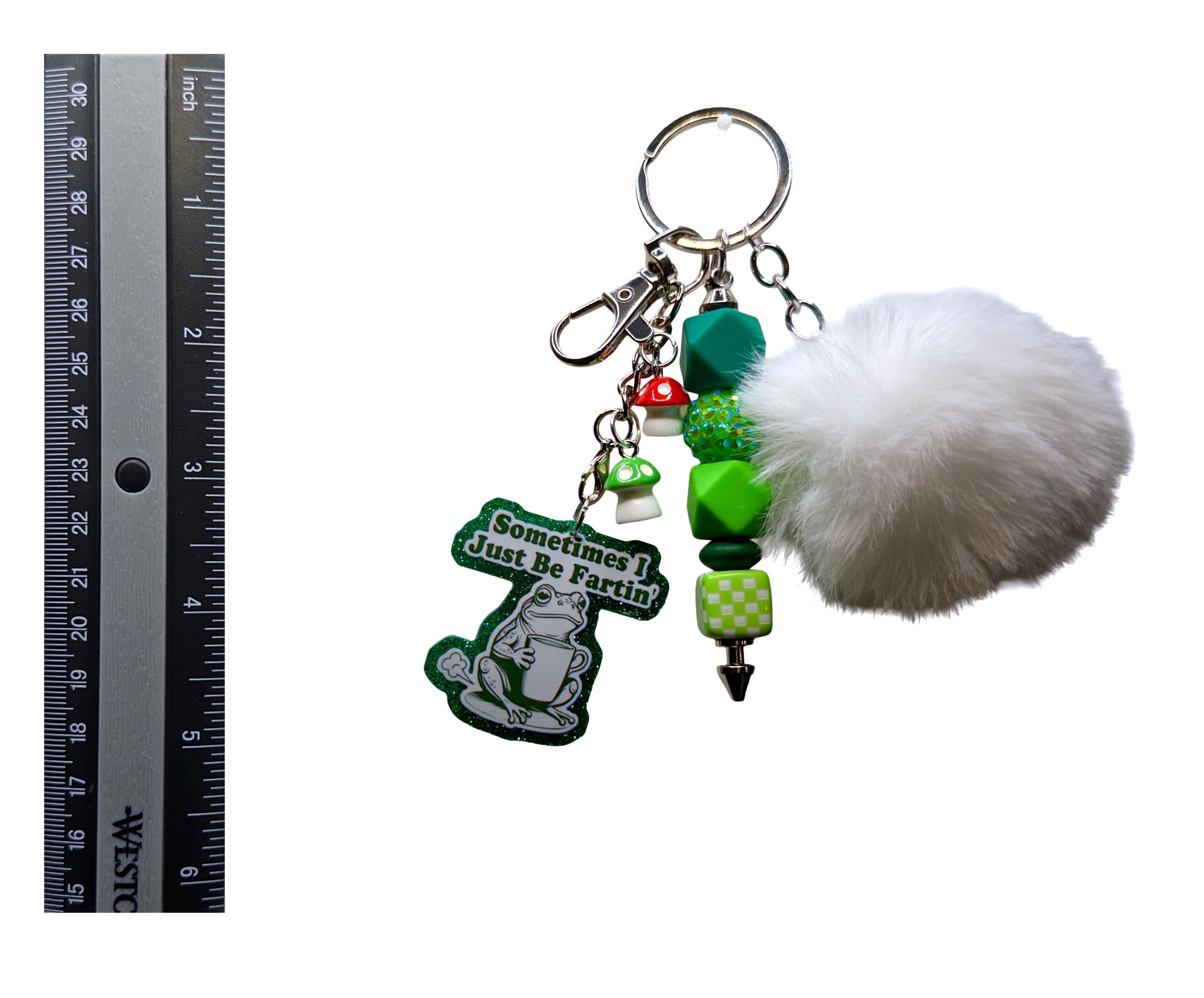 This chaotic little keychain is made for anyone who appreciates weird humor, frog energy, and not taking life too seriously. Featuring a glittery frog charm, bright green accents, and a fluffy pom detail, it’s the perfect mix of ridiculous and adorable.