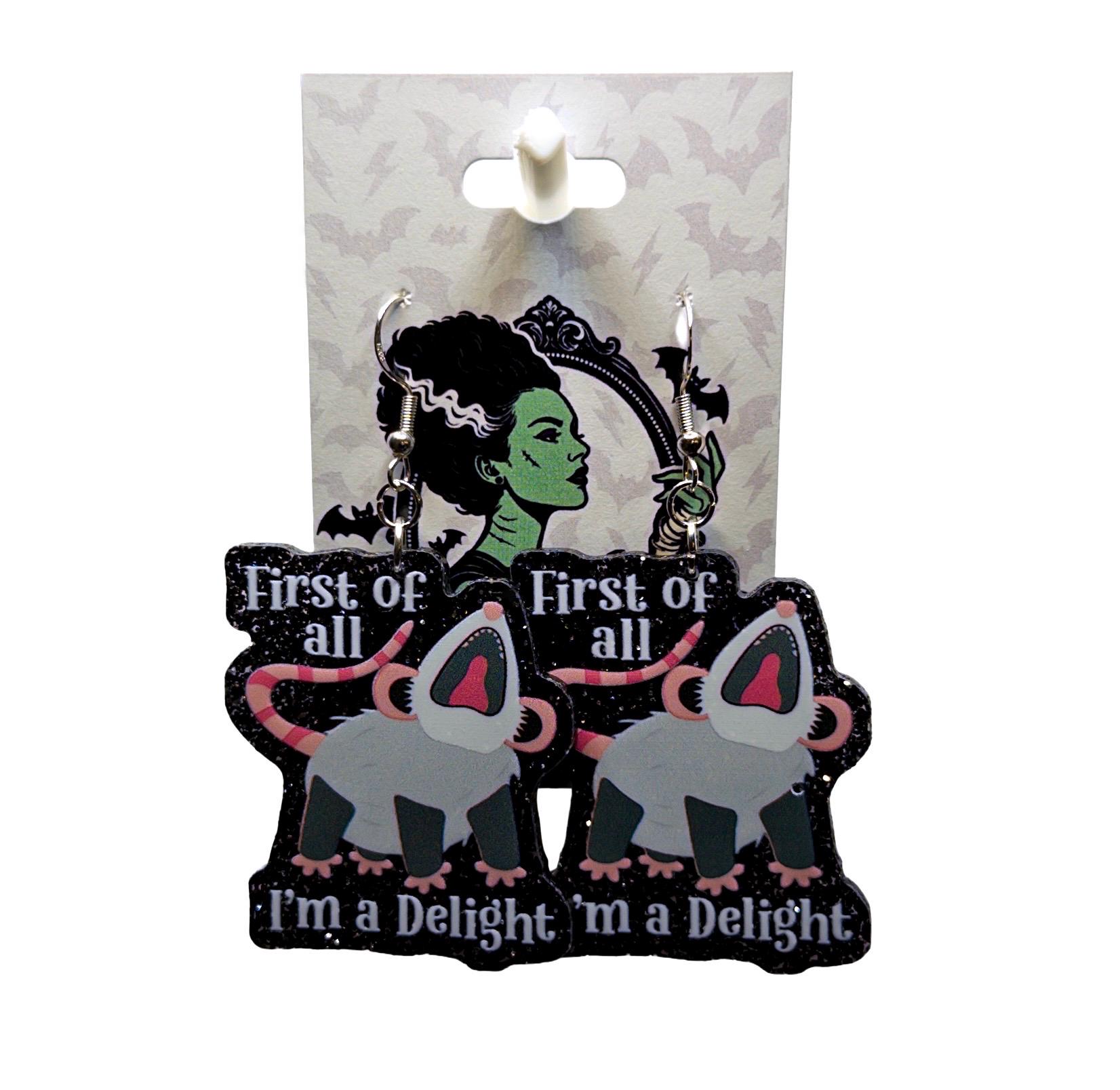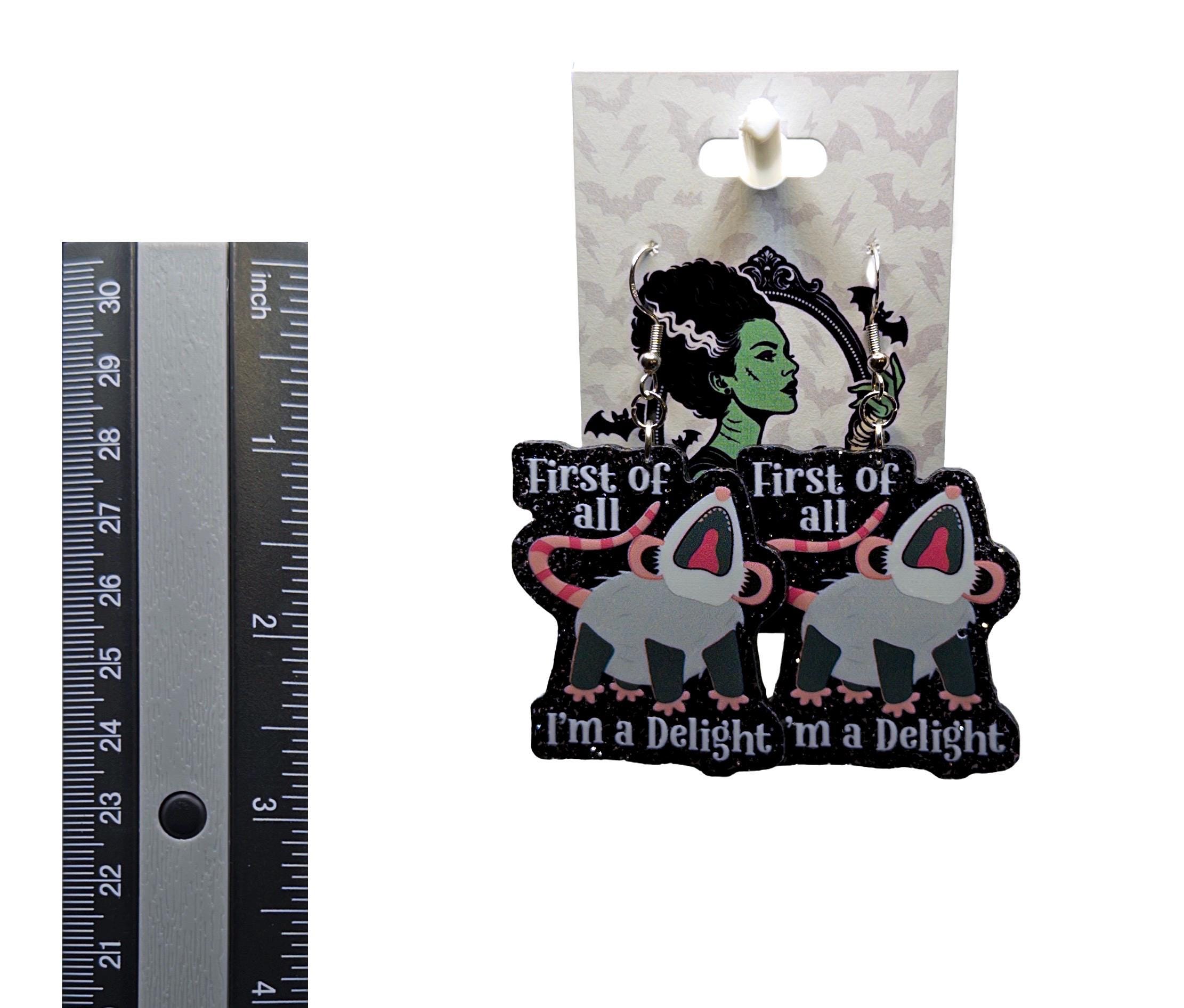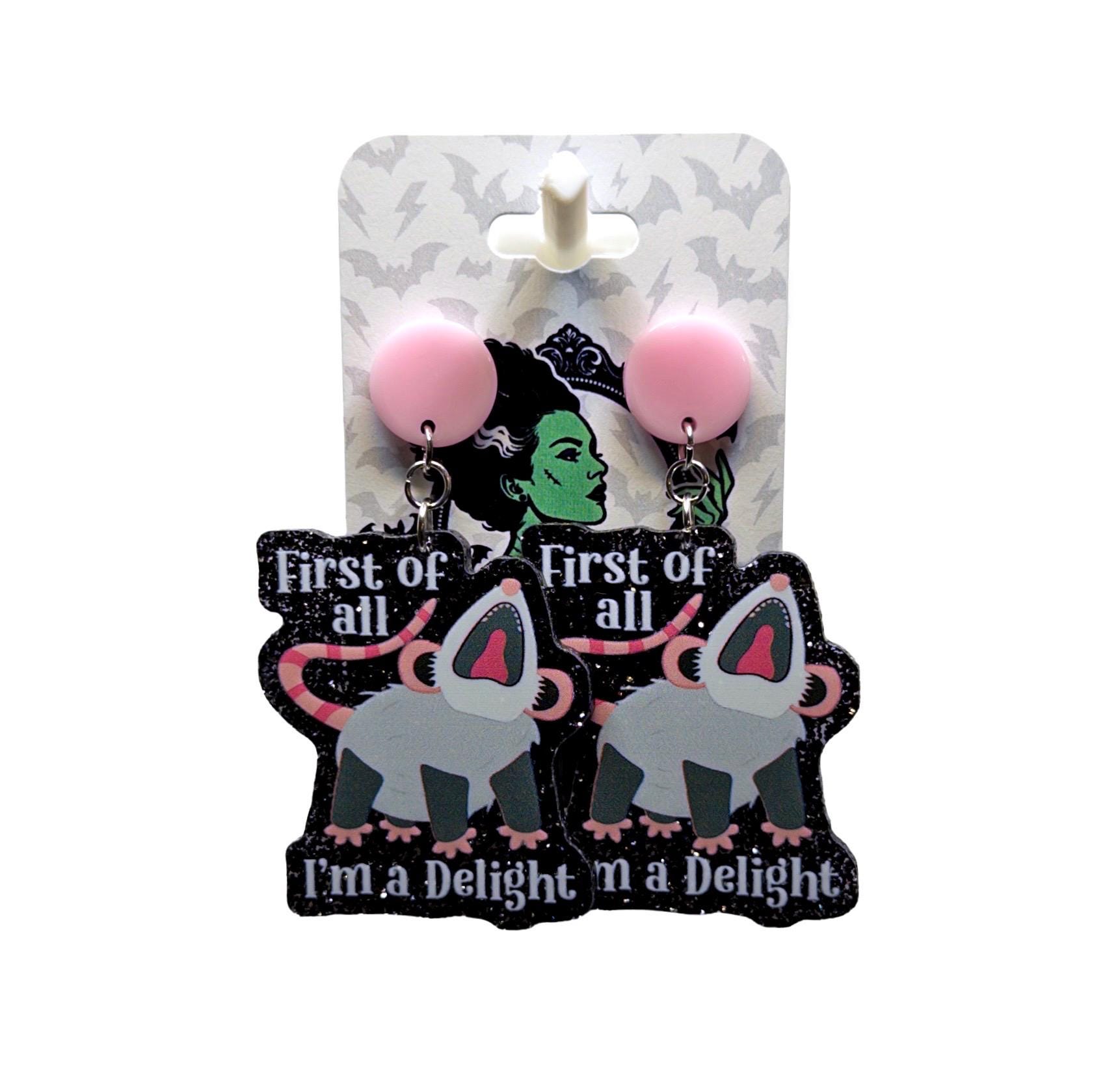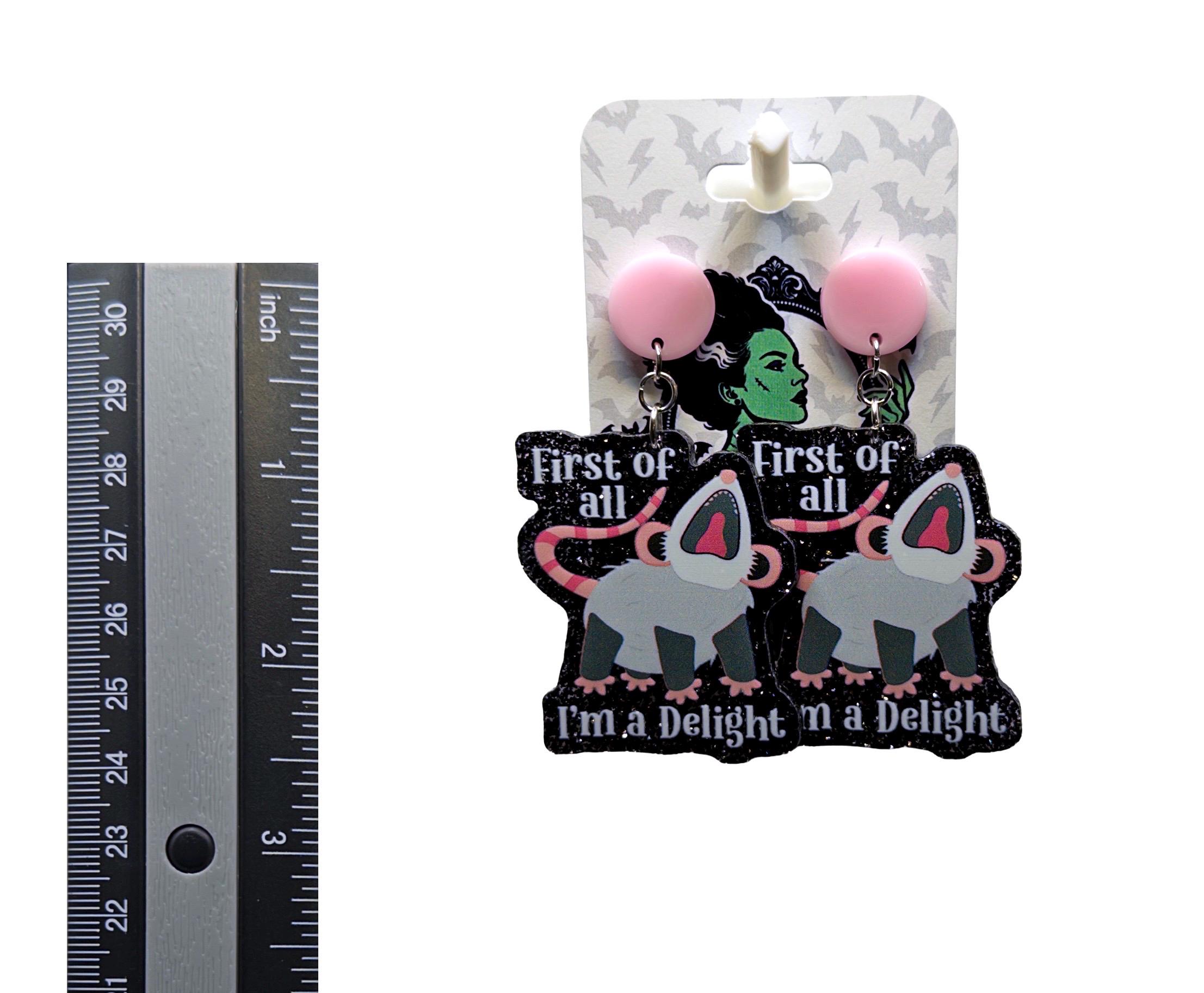 These “First of all, I’m a Delight” opossum earrings are the perfect mix of sass and sweetness. Featuring an adorable little opossum with a bold, funny statement, these earrings are made for anyone who knows they’re a whole vibe.
